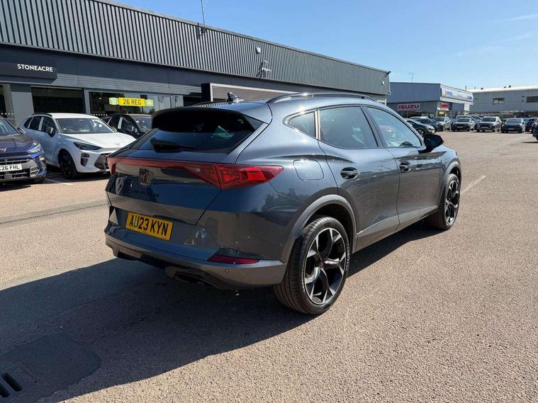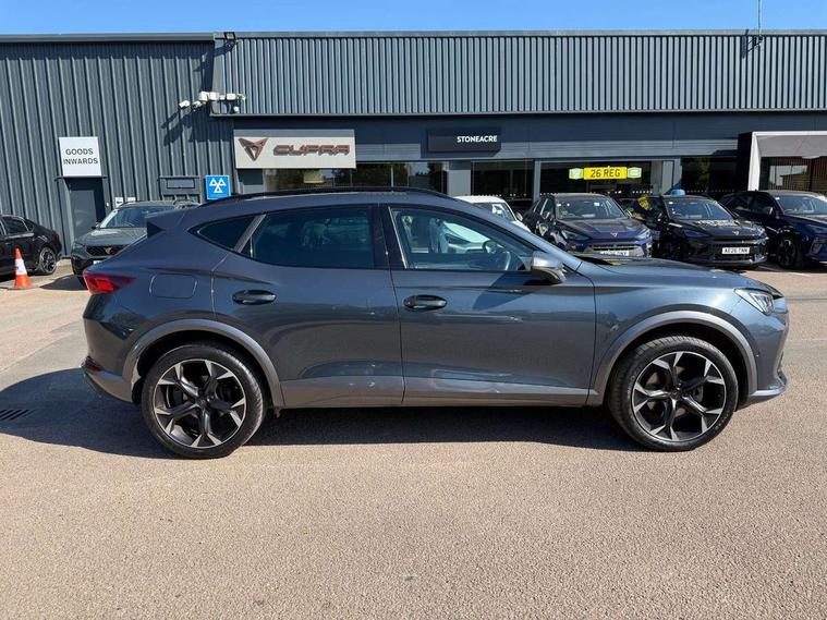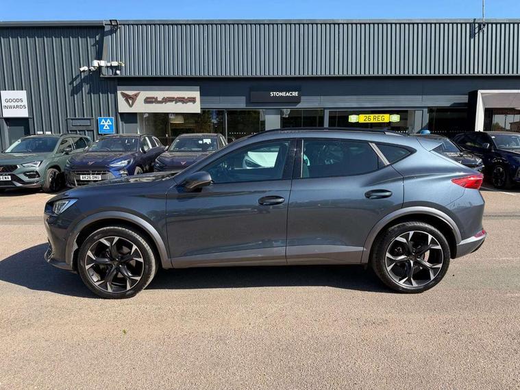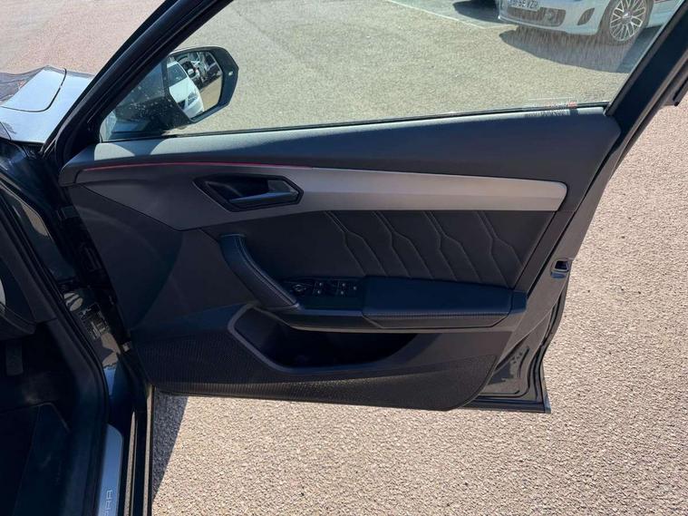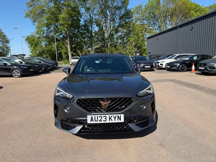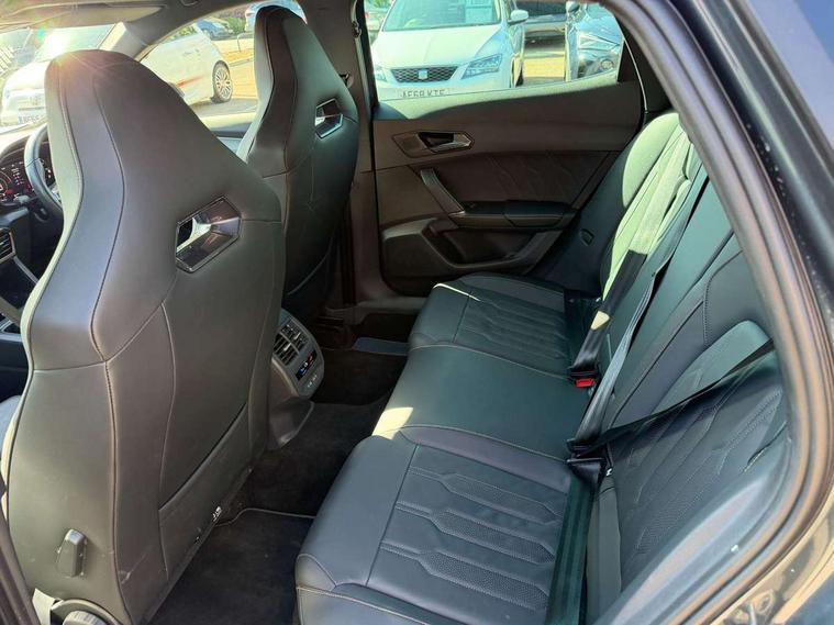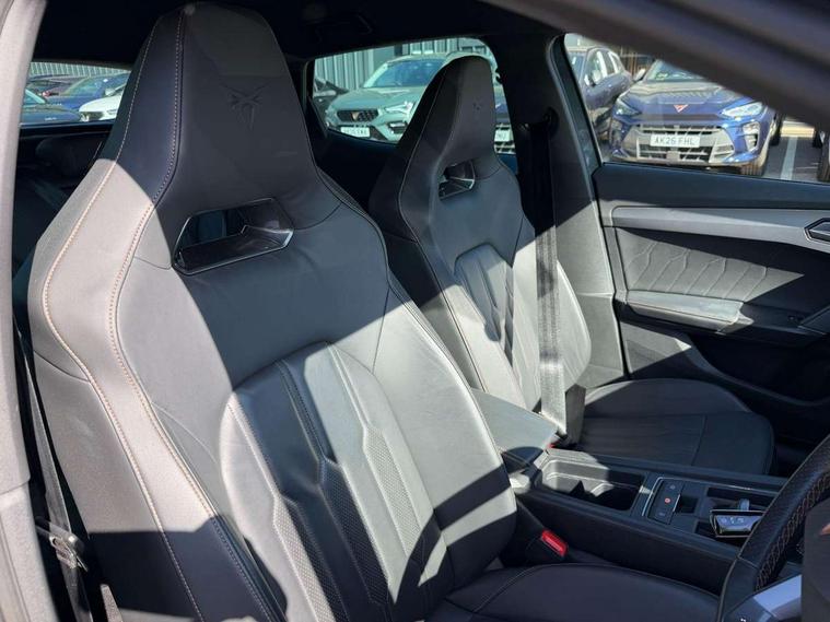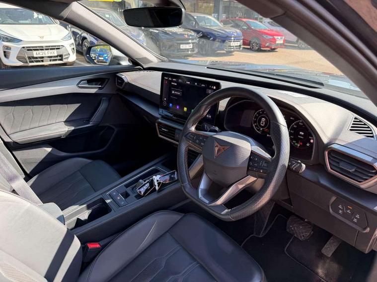 Digital cockpit and configurable dashboard, Driver alert system, Driving profile selection, Forward collision warning with automatic braking, Lane assist, Navigation system with 12'' Touchscreen Display, Park assist (inc front/rear parking sensors), PAS, Predictive adaptive cruise control with speed limiter, Rear view camera, RPM, trip computer, outside temp gauge, instrument light brightness, low fuel warning light, lights on reminder, gearshift indicator, Service interval indicator, Start/stop system with regenerative braking, Voice control system, Wireless apple carplay, Wireless phone charger, Electronic locking differential and dynamic traction support, Standard suspension, 2 front and 2 rear USB type C sockets, Auxiliary input socket, DAB radio, Auto dimming rear view mirror, Body colour door handles, Body coloured bumpers, Dark grey wing mirror, Daytime running light with automatic headlight control and coming home feature, Dynamic headlight range control, Electric front/rear windows, Electrically adjustable heated and folding door mirrors with memory function, Front fog lamps with cornering function, Gloss black roof rails and window surrounds, LED Headlights, LED Taillights with dynamic indicator, Rain sensing wipers, Rear diffuser with black simulated exhaust pipes, Rear side wing doors, Rear wash/wipe, Third brake light, Tinted rear windows, Welcome lights, 12v power supply in centre console, 12V socket, 12v socket in loadspace, 2 front and 2 rear reading lights, 230V socket, 3 seat bench in 2nd row, 60/40 split rear bench seat with armrest and mechanical seat release, Black headlining, Dust/pollen filter, Front and rear head restraints, Front centre armrest, Height/reach adjust steering wheel, Illuminated interior front door sills, Illuminated sunvisor with mirror, Isofix, Leather multi function heated steering wheel with gear shift paddles, Luggage tie-down hooks, Single front passenger seat, Three zone climate control with control panel in rear, Variable luggage/load compartment floor, Wraparound lighting, Genuine Nappa leather Pack - Cupra, 3 point seatbelts on all rear seats, ABS, Brake control system - ESC and brake booster, Child proof door locks, Driver and front passenger airbags with front passenger airbag de-activation, Electronic parking brake, Front and rear disc brakes, Front side curtain airbags, Hill hold control, Public e-call, Seat belt reminder for front and rear seats, Tyre pressure monitoring system, Anti theft alarm system, Keyless entry and start system (KESSY), Locking wheel bolts, Copper and aluminium interior detailing, 19" 'Exclusive' machined sport matte black and silver alloy wheels,