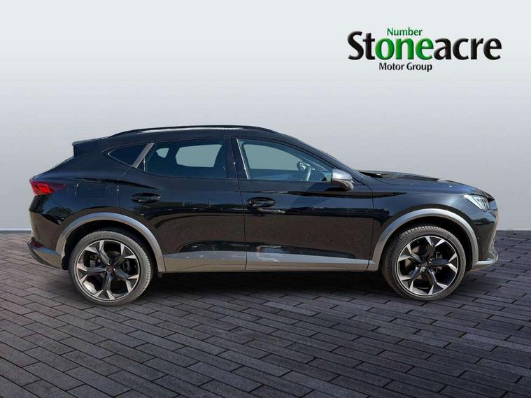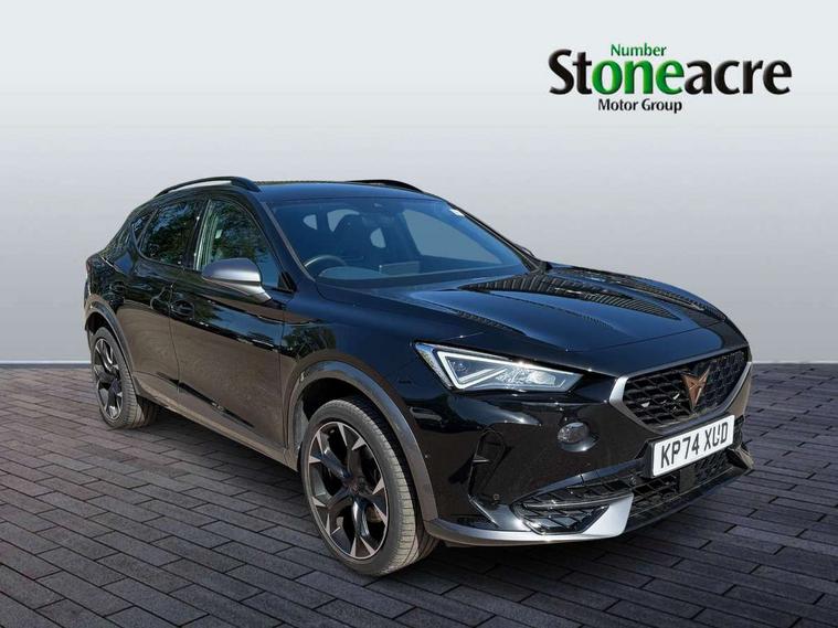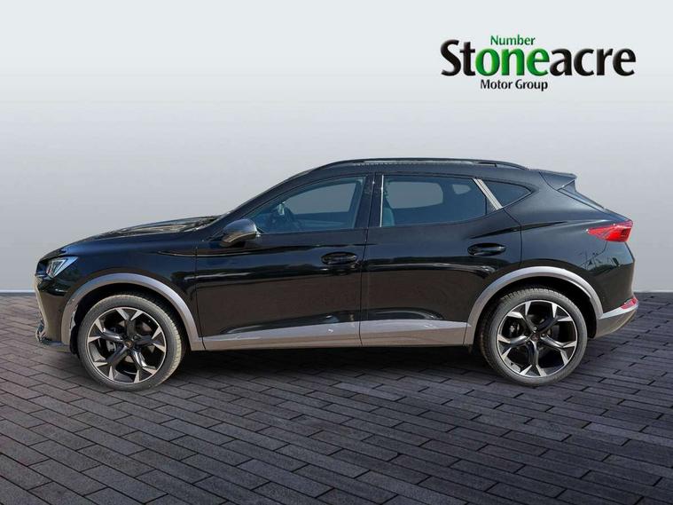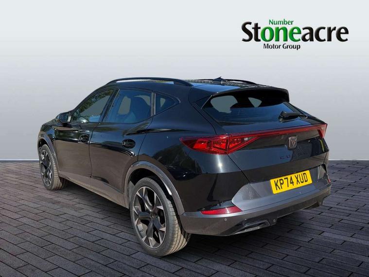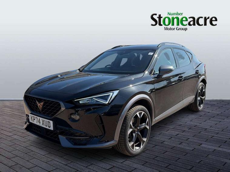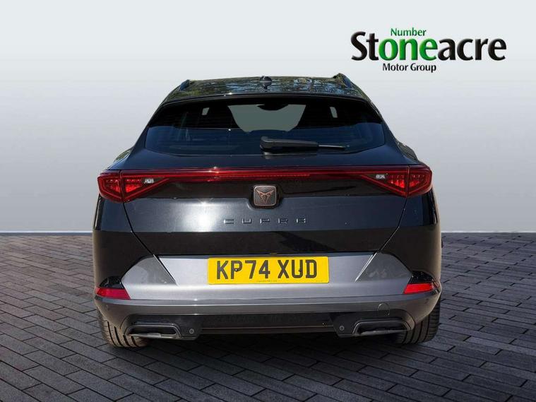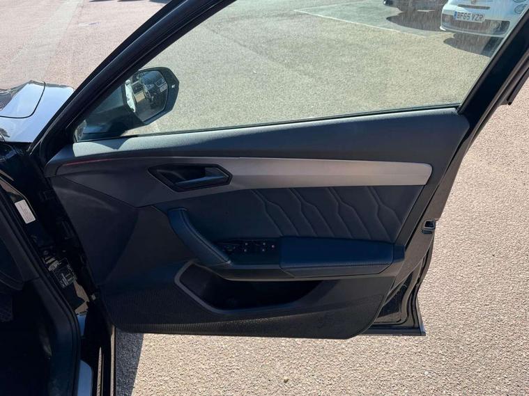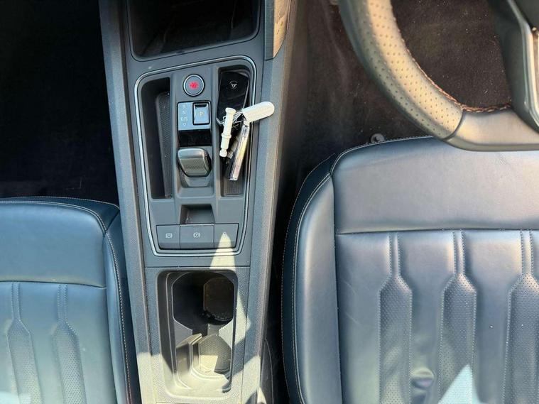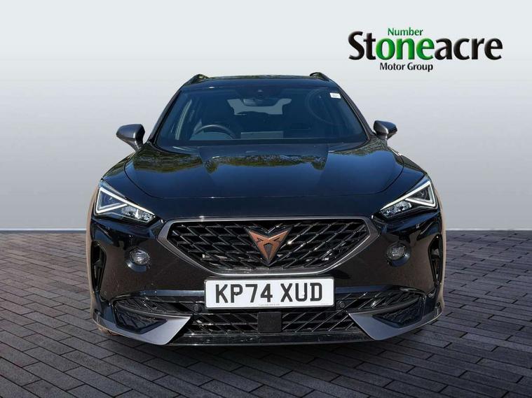 Digital cockpit and configurable dashboard, Driver alert system, Driving profile selection, Forward collision warning with automatic braking, Lane assist, Navigation system with 12'' Touchscreen Display, Park assist (inc front/rear parking sensors), PAS, Predictive adaptive cruise control with speed limiter, Rear view camera, RPM, trip computer, outside temp gauge, instrument light brightness, low fuel warning light, lights on reminder, gearshift indicator, Service interval indicator, Start/stop system with regenerative braking, Voice control system, Wired Android Auto, Wireless apple carplay, Wireless phone charger, Electronic locking differential and dynamic traction support, Standard suspension, 2 front and 2 rear USB type C sockets, Auxiliary input socket, DAB radio, Auto dimming rear view mirror, Body colour door handles, Body coloured bumpers, Dark grey wing mirror, Daytime running light with automatic headlight control and coming home feature, Dynamic headlight range control, Electric front/rear windows, Electrically adjustable heated and folding door mirrors with memory function, Front fog lamps with cornering function, Gloss black roof rails and window surrounds, LED Headlights, LED Taillights with dynamic indicator, Rain sensing wipers, Rear diffuser with black simulated exhaust pipes, Rear side wing doors, Rear wash/wipe, Third brake light, Tinted rear windows, Welcome lights, 12v power supply in centre console, 12V socket, 12v socket in loadspace, 2 front and 2 rear reading lights, 230V socket, 3 seat bench in 2nd row, 60/40 split rear bench seat with armrest and mechanical seat release, Black headlining, Dust/pollen filter, Front and rear head restraints, Front centre armrest, Height/reach adjust steering wheel, Illuminated interior front door sills, Illuminated sunvisor with mirror, Isofix, Leather multi function heated steering wheel with gear shift paddles, Luggage tie-down hooks, Single front passenger seat, Three zone climate control with control panel in rear, Variable luggage/load compartment floor, Wraparound lighting, Genuine Nappa leather Pack - Cupra, 3 point seatbelts on all rear seats, ABS, Brake control system - ESC and brake booster, Child proof door locks, Driver and front passenger airbags with front passenger airbag de-activation, Electronic parking brake, Front and rear disc brakes, Front side curtain airbags, Hill hold control, Public e-call, Seat belt reminder for front and rear seats, Tyre pressure monitoring system, Anti theft alarm system, Keyless entry and start system (KESSY), Locking wheel bolts, Copper and aluminium interior detailing, 19" 'Exclusive' machined sport matte black and silver alloy wheels,