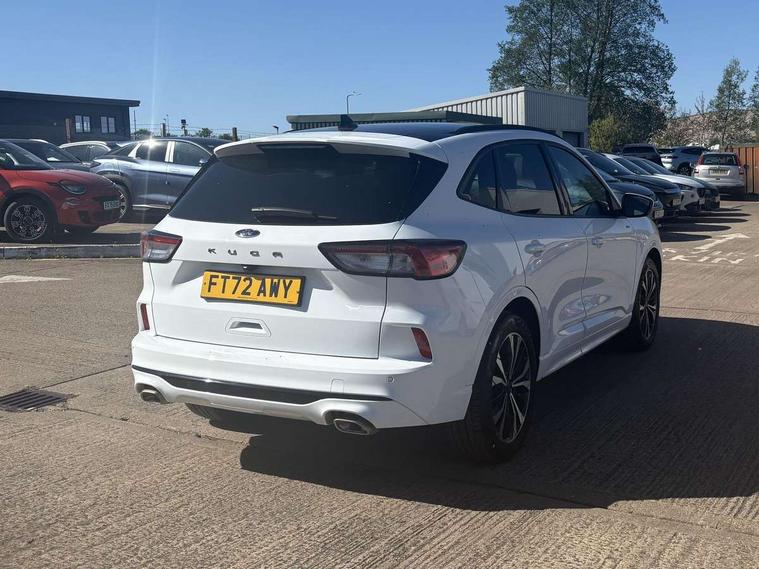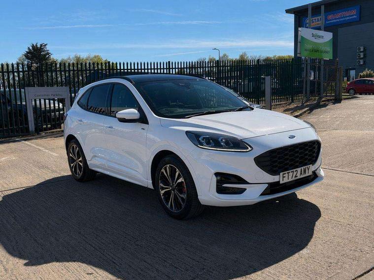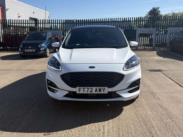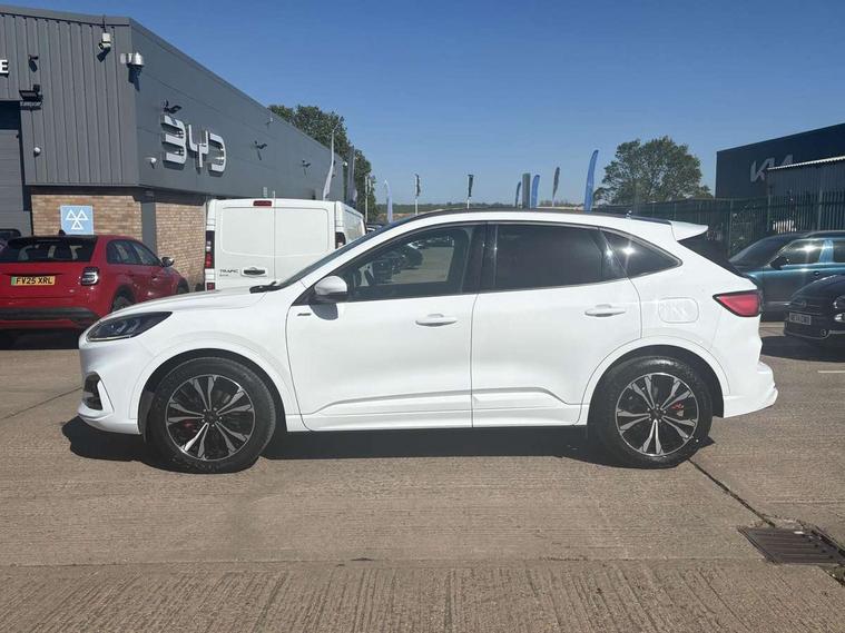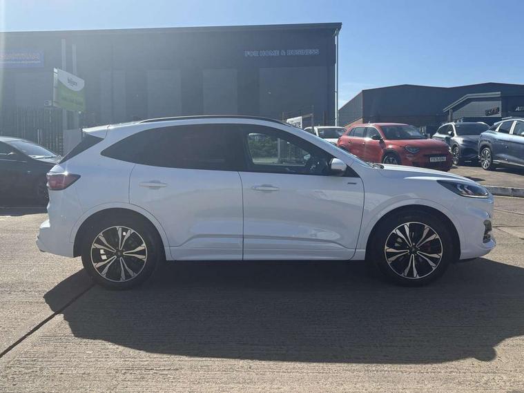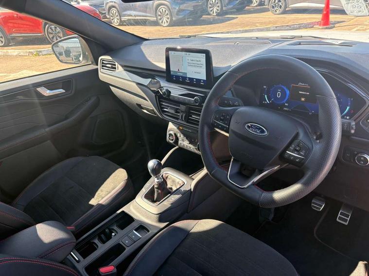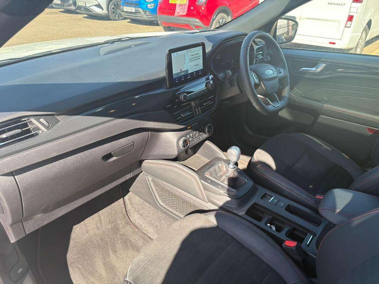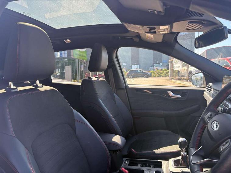 12.3" digital colour instrument cluster, Ford easy fuel, Ford SYNC 3 with 8" TFT LCD touchscreen, App Link, andriod auto/apple carPlay, emergency assistance and navigation with Ford pass connect, Front and rear parking sensors, Hands free power tailgate, Lane keeping aid with lane departure warning, Power assist steering, Rear view camera, Selectable drive modes, Service interval indicator, Sports suspension, Twist beam rear suspension, B&O premium audio system with 10 speakers and subwoofer, 2 USB ports, DAB radio/CD, Auto headlamps with high and low beam, Black roof rails, Day/night rear view mirror, Front LED fog lamps, Large rear spoiler, LED daytime running lights, LED rear lights, Power folding heated door mirrors with puddle lights, Power front/rear windows with global close, Power opening panoramic roof, Privacy glass, Quickclear heated windscreen, Rear side wing doors, Rear wiper, ST Line body styling kit with unique front and rear fascia and bumper, rear painted diffuser, front painted skid plates, dark mesh upper grille, ST Line front scuff plates, Third brake light, Twin exhausts, 10 way power adjustable drivers seat, 2nd row sliding seats with 60:40 split, 8 way manual passenger seat including lumbar support and height adjust, Alloy pedals, Centre console with electronic parking brake, Dark headlining and pillars, Electronic automatic temperature control (EATC), Flat bottomed leather steering wheel in sensico with red stitching, Front and rear head restraints, Heated passenger and driver seats, Heated rear seats, Heated steering wheel, Partial premium touch sensico leather upholstery with black cloth inserts and red stitching, Rear charging point, Single front passenger seat, Sports seats, ST Line front and rear floor mats, ST Line gear knob, 3x3 point rear seatbelts, Airbags - front driver/passenger, front and rear curtain, Drivers knee airbag, Electronic stability control (ESC) and ABS, Ford MyKey Gen 2 safety system, Manual child proof rear door locks, Post collision braking, Pre collision assist with autonomous emergency braking, Rear seat Occupancy alert, Red brake calipers, Tyre pressure monitoring system, Engine immobiliser, Keyless entry and Ford power start button (Keyless start), Locking wheel nuts, Remote powered central double locking doors, Thatcham category 1 alarm,
