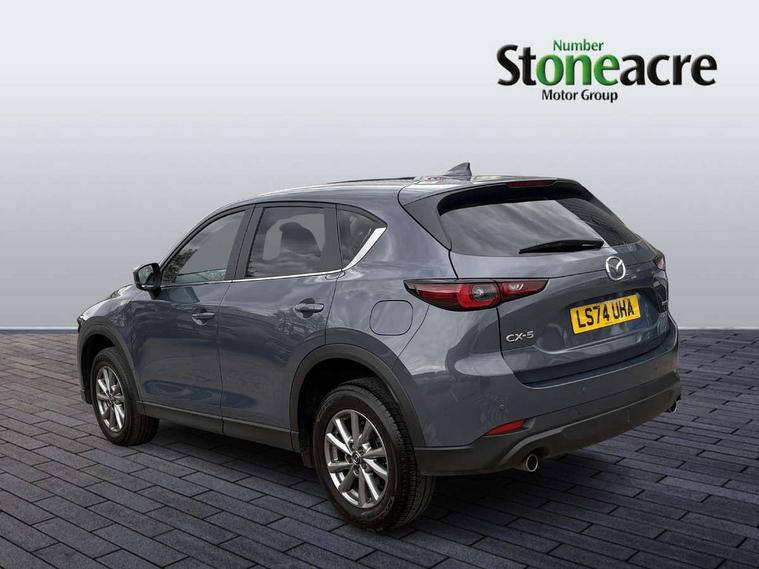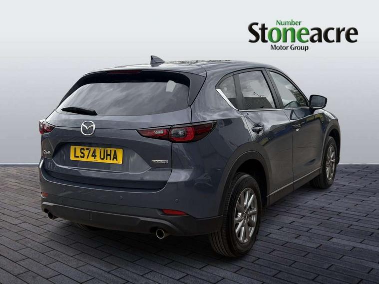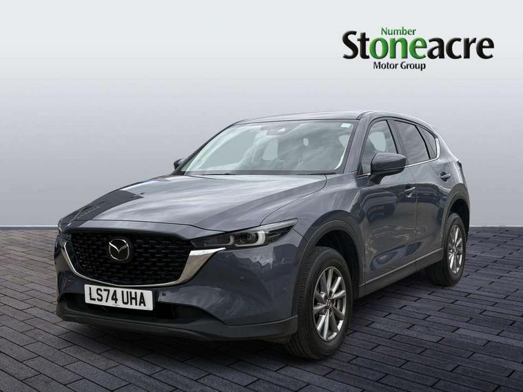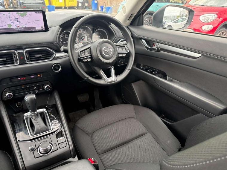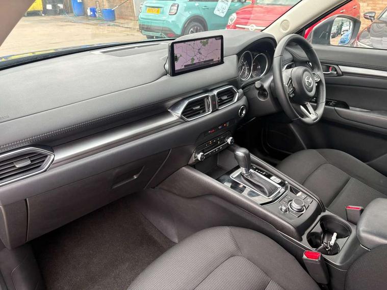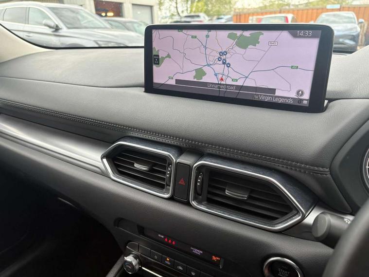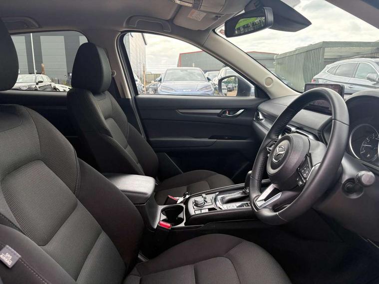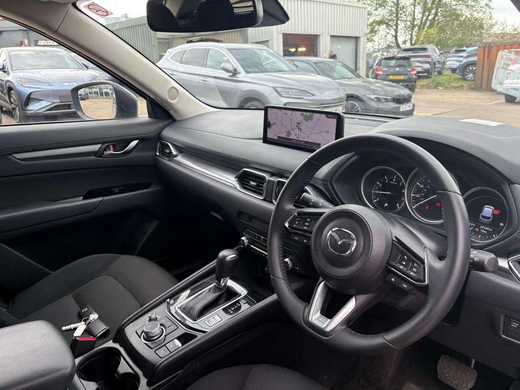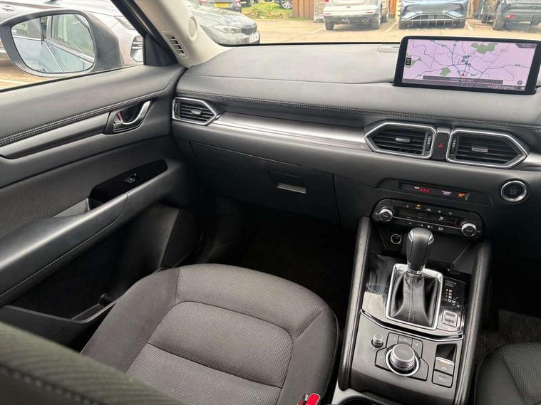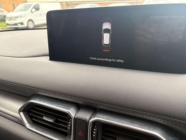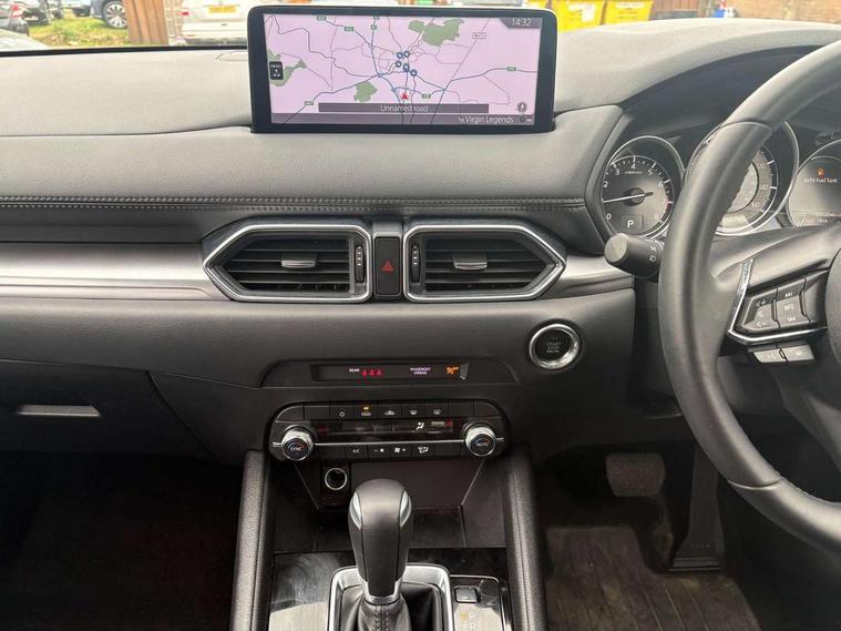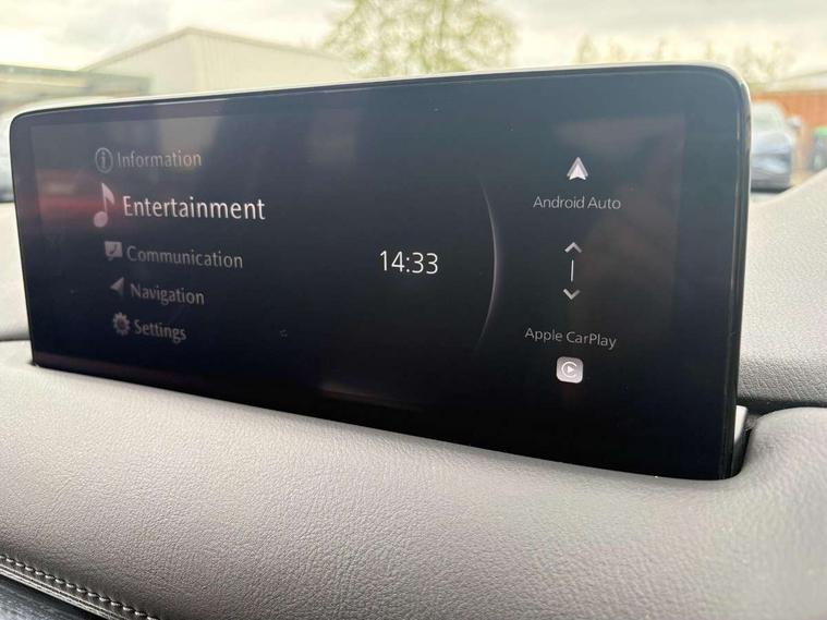 10.25" display with Mazda Connect infotainment, Advanced blind spot monitoring, Bluetooth connectivity with voice control, Collision prevention assist, Connected services, Cruising Traffic Support, Drive mode selector, Electric power steering, Emergency stop signalling system, Engine start/stop button, Forward collision warning, Front and rear parking sensors, High meter TFT display, Integrated navigation system, Intelligent speed assist, Lane departure warning system, Lane keep assist, Radar cruise control with Stop and Go, Rear cross traffic alert, Service indicator, Trip computer, Wireless apple car play/android Auto, Cylinder Deactivation, i-stop, 6 speakers, AM/FM radio, Bluetooth audio streaming, DAB Digital radio, Multimedia Commander including separate volume dial, Steering wheel mounted audio controls, Adaptive front lighting system, Auto dimming rear view mirror, Automatic headlights, Body colour door mirrors, Body colour roof spoiler, Body coloured front and rear black lower bumper mouldings, Cloth with gunmetal inlay door trim panel, Coming/leaving home lighting function, Door mirror integrated indicators, Dual chrome tailpipes, Electric front/rear windows with one touch auto up/down, Front grille in gloss black finish with chrome signature wing, Gunmetal inlay dashboard panel, High beam assist, Intermittent rear wash/wipe, LED auto levelling, LED daytime running lights, LED front fog lights, LED Headlights, LED third brake light, Power folding and heated door mirrors, Privacy glass (rear side windows only), Rain sensing front wipers, Rear side wing doors, Satin black B and C pillars, Satin black side mouldings, Scuff plates, Shark fin antenna, Signature LED rear combination lights, Variable intermittent front wash/wipe, 12v electrical power outlet, 3 seat bench in 2nd row, 40:20:40 Karakuri fold-flat seat system, Cargo room flat floor board with waterproof undertray, Driver seat lumbar adjustment, Driver seat manual slide, recline and height adjust, Driver, Front passenger and two rear grab handles with coat hooks, Driver/passenger front seatback pockets, Driver/passenger sunvisors + illuminated vanity mirrors (drivers with ticket holder), Dual zone climate control, Folding centre armrest with 2 cup holders, Front and rear door pockets, Front centre storage with two cupholders, Front passenger seat manual slide, recline and height adjust, Height adjustable passenger seat, Humidity sensor, Illuminated glovebox, Interior dome light with integral spotlight, ISOFIX child seat anchorage points attached on outer rear seats, Karakuri tonneau cover, Leather wrapped steering wheel and gear knob, Light roof lining, Luggage compartment LED lighting, Luggage compartment power outlet, Premium cloth upholstery, Rear air vents, Rear headrests, Rear seat recline, Roof mounted sunglasses holder, Single front passenger seat, Three height adjustable head restraints, Tilt/height adjustable steering wheel, USB Connectivity (2x front Type-C, 2x rear Type-B), White interior LED illumination lighting, 3 point front seatbelts with pre-tensioners, 3 rear 3 point seatbelts, ABS, Advanced Smart City Brake Support - SCBS, Child locks on rear doors, Driver and front passenger side airbags, DSTC-Dynamic Stability and Traction Control, Dual front airbags, Electronic brake force distribution, Electronic parking brake with auto hold, ESP, Front and rear curtain airbags, Front passenger airbag deactivation, G-Vectoring control, Hill hold assist, Seatbelt reminder front and rear, Single stage passenger airbags, Smart brake support with forward obstruction warning, Tyre pressure monitoring system, Automatic door locking when moving off, Deadlock, Immobiliser, Power door locks, Remote central locking, Thatcham Cat.1 alarm, 17" Silver alloy wheels, Tyre repair kit,