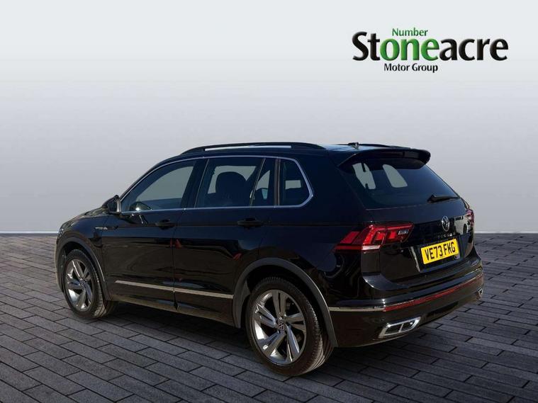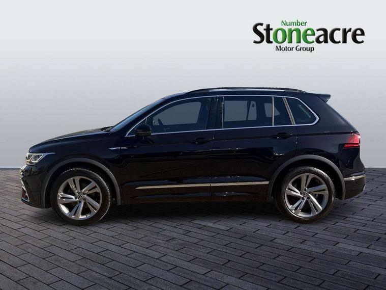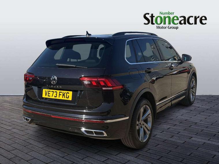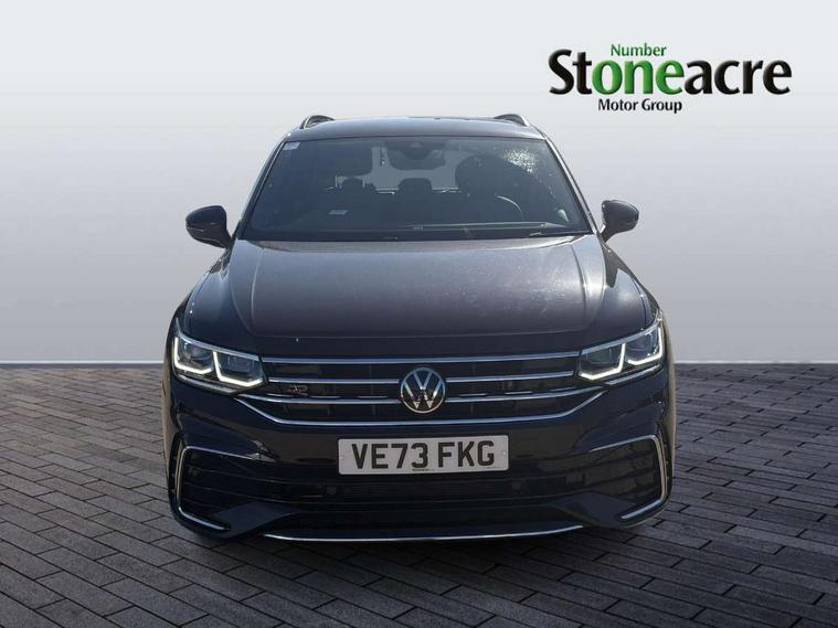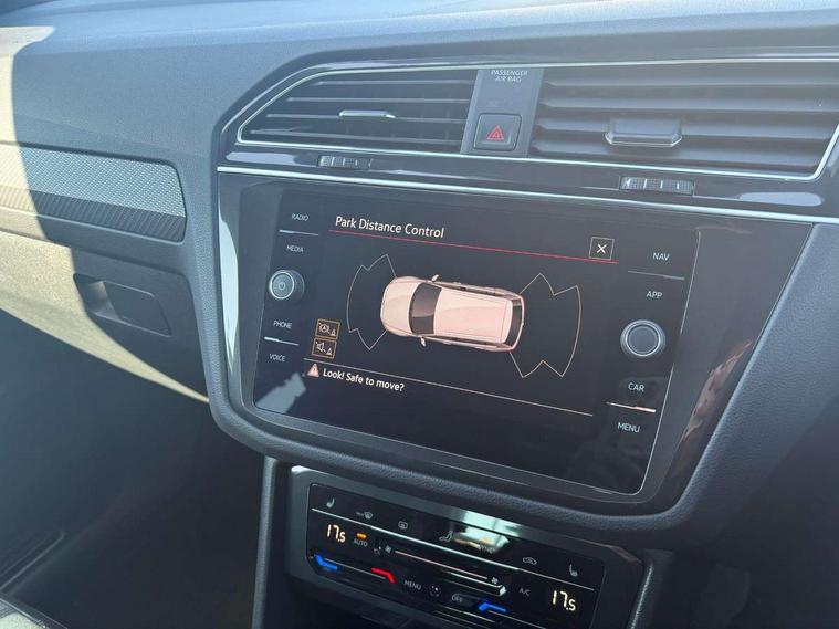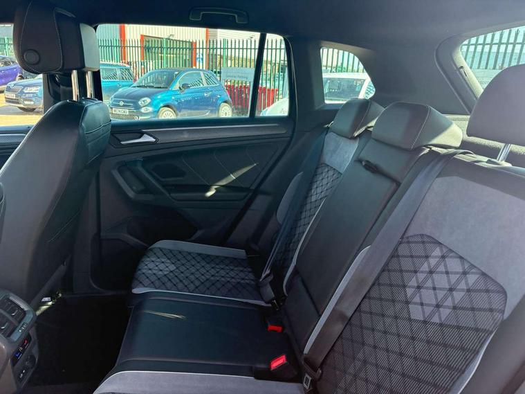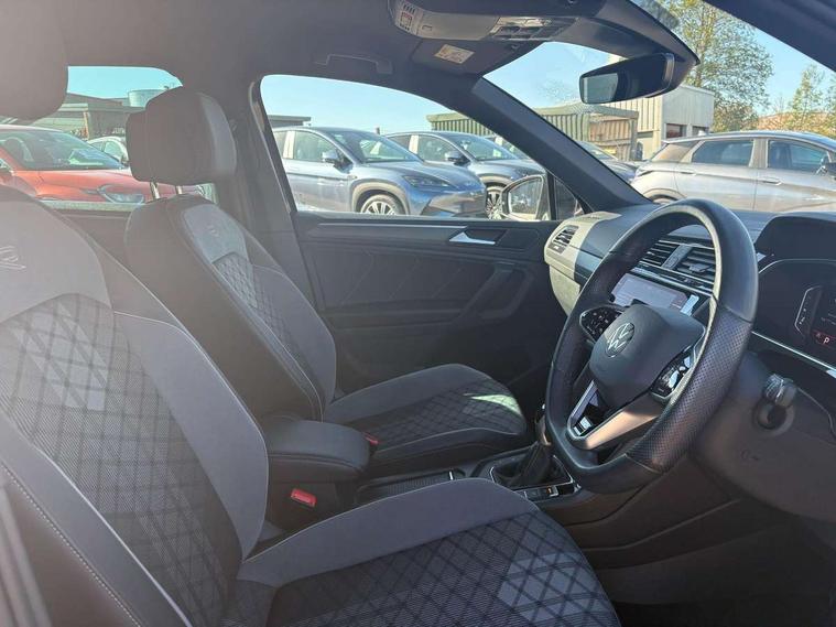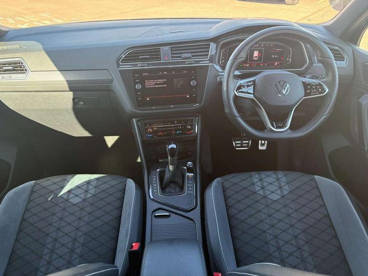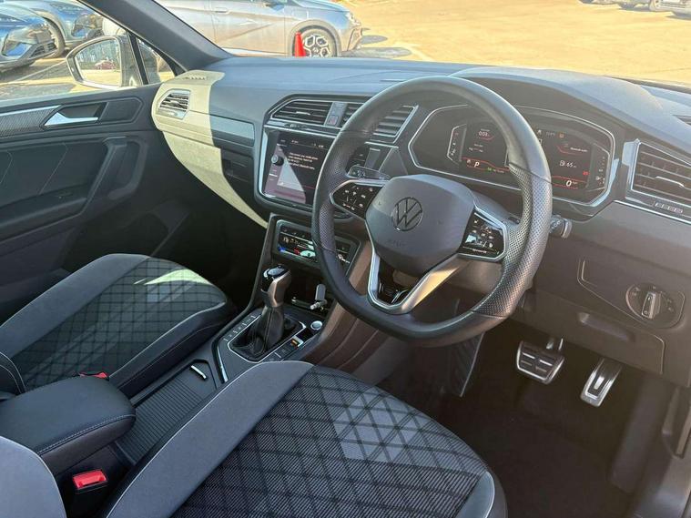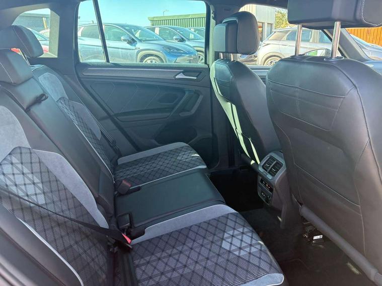 Adaptive cruise control ACC stop and go including speed limiter, App-Connect incl. App-Connect Wireless for Apple CarPlay and Android Auto, Bluetooth phone integration system, Comfort drive travel assist, Digital cockpit pro, Driver alert system, Driver profile selection, Dynamic road sign display, eCall emergency call system, Electromechanical speed sensitive power steering, Emergency assist, Front and rear parking distance sensors, Instrument cluster mph speedometer Great Britain, Lane keeping system Lane Assist, Lights on warning, Multifunction front facing camera, Outside temperature display, Premium multifunction display with multi colour display, Rev counter, Service interval indicator, Speed limit display, Start/stop system with regenerative braking, Trip computer, Warning sound and light for doors and tailgate open, Battery regeneration during braking, Digital radio reception DAB+, Diversity antenna for FM reception, Radio, Auto dimming interior rear view mirror, Automatic headlight control system, Body colored bumpers in R-Line style, Body colored exterior mirror housings, Body colour door handles, Chrome moldings on the side windows, Coming/leaving home lighting function, Dynamic headlight range control, Front and rear electric windows, Heated rear window, High level 3rd brake light, Laminated safety glass windshield, heat and sound insulating, LED rear combination lamps, LED rear number plate lights, License plate carrier in front and rear, Poor weather light and cornering light, Privacy glass for rear side windows and rear window, R Line body kit, R Line side sills, Rain sensor, Rear exhaust tailpipe, Rear fog lamp, Rear side wing doors, Rear spoiler in R style, Rear windscreen washer and wiper with interval delay, Side and rear windows in heat insulating glass, Trailer Stability Programme, Unique R Line badging, Windscreen wipers/ intermittent wipe + 4 position delay, 12V outlet in center console rear and in luggage compartment, 12V outlet in front and tray, 2 LED front reading lights, 2 LED rear reading lights, 3 bench rear seats in 2nd row, 3 rear headrests, Air Care Climatronic 3 zone automatic climate control with enhanced air filter and controls in the rear, Backrest release for left front seat, Black headlining, Brushed stainless steel pedals and footrest, Carpet mats in front and rear with decorative stitching in Gray, Climate control unit rear with touch function, Door and side trim panel in foam film, insert in leatherette, Front footwell illumination, Front scuff plates in aluminum with R-Line logo, Front seats head restraints (x-adjustment), Height/reach adjust steering wheel, Isofix Preparation 2 Rear child seats, Leather gear knob, Rear bench seat asymetrically split folding, longitudinally movable and folding with load-through hatch and center armrest, Remote unlocking for rear seat backrest, Single front passenger seat, Sun visors with illuminated vanity mirrors, Tool kit, Driver assistance pack plus - Tiguan DSG, 3 point seat belt for centre rear seats, 3 point seat belts with seat belt pretensioners for the outer rear seats, Curtain airbags for front and rear passengers, Driver/Front Passenger airbags, Drivers knee airbag, Electronic parking brake with auto hold, Electronic Stability Control with driver steering recommendation, ABS, ASR, EDL, EDTC and trailer stabilization, Front assist with autonomous emergency braking (for Adaptive Cruise Control ACC up to 130 mph), Front disc brakes, Front passenger airbag deactivation, Front side airbags, Height adjustable front 3 point seatbelts + pretensioners, Manual child proof rear door locks, Pedestrian monitoring system, Proactive passenger protection system in combination with front assist, Rear disc brakes, Two tone horn, Warning sound and light for front seat belts if unfastened, Warning triangle, Anti theft alarm system with interior monitoring, backup horn and towing protection, Anti theft wheel bolts, Electronic engine immobiliser, Chrome elements on the mirror switch power window switches and door pulls, Decorative inserts Carbon Gray for dashboard and front door trim panels, Interior door handle in matte chrome,