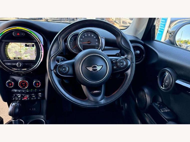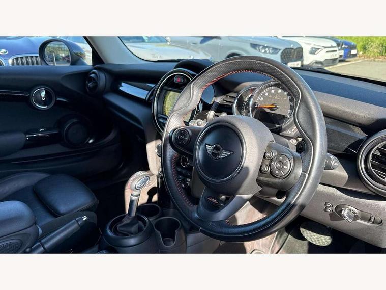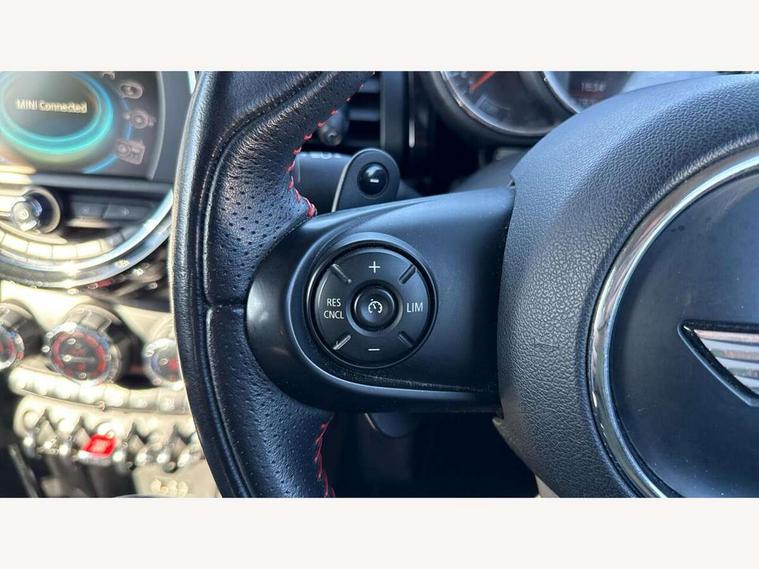 Acoustic seat-belt warning, Brake fluid level warning light, Brake pad wear indicator warning light, DTC - Dynamic traction control, Exterior temperature gauge, Intelligent emergency call, MINI TeleServices, Oil level indicator, On board computer, Push button starter, Service interval indicator, Servotronic PAS, Electronic differential lock, Performance Control, Auxiliary input socket, DAB digital radio module, 2 speed wipers+intermittent wipe, Anti dazzle mirror, Anti trapping/one touch open close front windows, Body colour scoop integrated into engine- compartment lid, Body coloured bumpers, Chrome bezels around rear lights and headlights, Chrome door handles, Chrome plated fuel cap, Chrome plated trim on bottom edge of window, Chrome strip on lower grille, Electric front windows, Electrically adjustable door mirrors, Flared wheel arches, Follow me home headlights, Green tinted heat insulating glass, Heated door mirrors/heated windscreen washers, Heated rear window with auto timer, High gloss black tailgate, Honeycomb radiator grille, Rear wiper, Twin chromed exhaust pipes, White indicator lights, 2 rear head restraints, 4 boot load lashing points, 4 way manually adjustable passenger seat with height, reach, tilt, backrest and headrest, 6-way manually adjustable driver's seat, Active carbon filter, Air recirculation system, Auxiliary socket in centre console storage compartment, Centre console storage, Driver's seat height adjuster, Driver/passenger sunvisors, Easy entry seats, Front and rear cupholders, Front head restraints, Front interior light, Front passenger grab handle, Front seat backrest storage nets, Front sports seats, Gear/selector and handbrake in artificial leather, Internal chrome door handles, Isofix child seat preparation, Luggage compartment lighting, Multifunction steering wheel, Reach + rake adjustable steering column, Rear grab handles, Rear storage trays, Split folding rear seats, Storage compartments in doors, Toolkit in luggage compartment, 3 point seatbelts, ABS/EBD, ASC+T, Cornering brake control (CBC), Crash Sensor - activates hazard/interior lighting + unlocks doors, Driver and passenger airbags, Driver/front passenger side airbags, DSC - Dynamic Stability Control, Fuel cut off safety device, Head airbags, Hill start assist, Manual passenger airbag deactivation function, Seatbelt pretensioners, Tyre pressure warning, Ventilated front disc brakes, Drive away door locking, Locking wheel bolts, Remote central locking/doors+fuel cap+tailgate, Second remote key, Thatcham category 1 alarm + immobiliser,