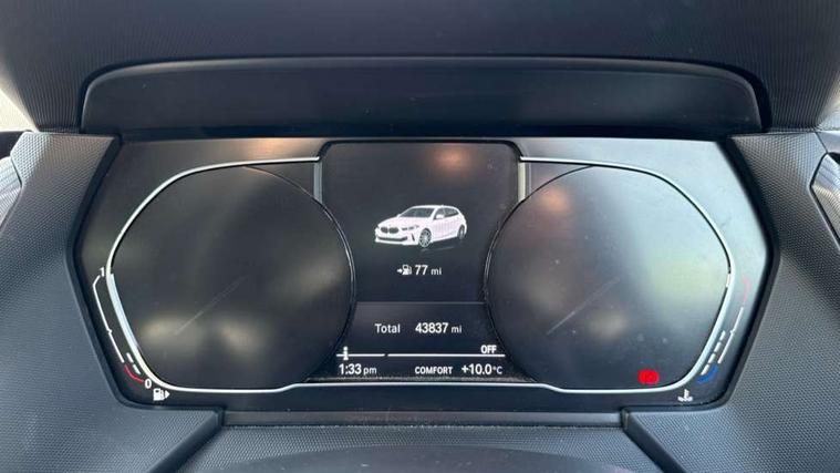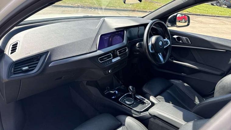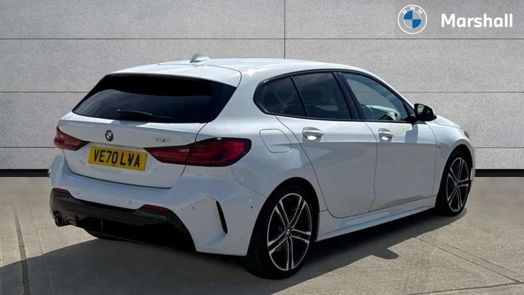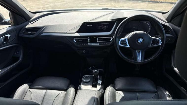 Active guard plus, Attentiveness assist, BMW Online services, BMW Teleservices, Check Control warning system for monitoring of lights and door/luggage compartment open warning, Connected eDrive Services, Eco pro mode, Electric power steering with Servotronic steering optimised at all speed ranges, Integrated owners handbook, Oil sensor for level and grade, On board computer, Optimum shift indicator, Personal Profile, Pull away assistant, Speed limiter, Aluminium lightweight construction, Anti roll bar front and rear, Balancer shaft, Double VANOS, Drive Performance Control, Electronic differential lock, High precision injection, M sports suspension + self levelling, Petrol Particulate Filter, VALVETRONIC engine management, Bluetooth audio streaming, DAB Digital radio, Auto dimming rear view mirror, Automatic headlight beam throw control, Body colour door handles, Body colour mirror caps, Chrome 'M' logo side designation, Chrome exhaust tailpipe in single, round (Exhaust tailpipe, stainless steel - single, round), Chrome kidney grille frame with Satin Aluminium struts, Direction indicator side lights in exterior mirrors, Electric folding and anti dazzle exterior mirrors, Fading support, Follow me home headlights, Front and rear electric windows with open and close fingertip control, anti trap facility and comfort closing, Front door sill finishers in black plastic with BMW designation, Green tinted heat protection glazing, Heated, electrically adjustable exterior mirror aspheric on driver side, convex on passenger side, High gloss shadow line exterior trim, High gloss shadowline window frame, Recess cover mirror frames and B/C pillar embelisher trim, High level third brake light, LED daytime running lights, LED eyebrow turn indicators, LED front fog lights, Lightweight engineering, Matt black air guide grilles, Model designation on right side of tailgate, Nearside reverse light in rear light cluster, Preparation for high beam assistant, Rain sensor including auto headlights activation, Rear fog lights, Rear window wiper, Shark fin antenna, Visible VIN plate, Welcome lighting, Windscreen wipers with integrated washing jets, 12V power socket in centre console, 2 cupholders in front centre console, 3 rear seat head restraints, 3 spoke M sports design leather steering wheel finished in nappa leather with specific M badge, Anthracite headlining, Anthracite Velour floor mats, Child seat ISOFIX attachment for two outer rear seats and front passenger seat with anchorage points, Conditioned based service, Dakota leather upholstery with perforation and contrast stitching, Driver and front passenger seat heating, Driver side folding compartment in instrument panel, Folding rear clothes hook, Folding rear seats, Four grab handles integrated in roof lining, Front and rear door pockets, Front and rear side armrest integrated into door trim, Front Armrest foldable with integrated storage compartment, Front sports seats with electric side bolster adjustment, Glove compartment, Height adjustable front head restraints, Manual adjust steering wheel, Multi-function controls for steering wheel, Rear seat backrest with manual 60:40 split folding with 3 top tether clips integrated on rear of seat panels, Storage compartment in centre console, Sun visors with vanity mirrors and insert tab, Two zone automatic air conditioning, Connected pack professional - 1 Series, Extended Lighting pack - 1 Series, Extended storage pack - 1 Series, Interior lights pack - 1 Series, Luggage compartment pack - 1 Series, M Sport exterior styling aerodynamics pack - 1 Series, 2 tone horn, 3 point seatbelts on all seats, front pyrotechnic belt tensioners, stopper and belt force limiters, rear coded belt buckles, Airbags - Front driver and passenger, front and rear head, front side, curtain head protection, Anti lock braking system (ABS) with brake assist, BMW emergency call, Brake drying, Braking readiness, Crash sensor activating central locking release, hazard warning lights, fuel cut off, interior lighting + activation of safety battery terminal clamp, Driver and front passenger seat belt security check, Dynamic stability control + (DSC+), Dynamic Traction Control - DTC, Electrically operated hand brake, Front and rear disc brakes, Front passenger manual airbag deactivation, Rear child proof door locks, Seatbelt warning, Side impact protection, Tyre pressure monitoring system, Warning triangle and first aid kit, Automatic drive away locking facility, Central locking switch for all doors, fuel filler cap and luggage compartment, Deadlocking function system to all doors, Locking wheel bolts, Remote control with integrated key with High-gloss Black inlay and M designation and 1 button for open/ close lock, window, open luggage compartment, Start/stop button with comfort go keyless engine start and auto start stop deactivation button, Thatcham Cat.1 alarm and immobiliser, Contrast stitching on instrument panel, Reduced rolling resistance tyres,