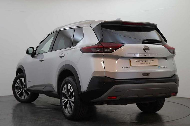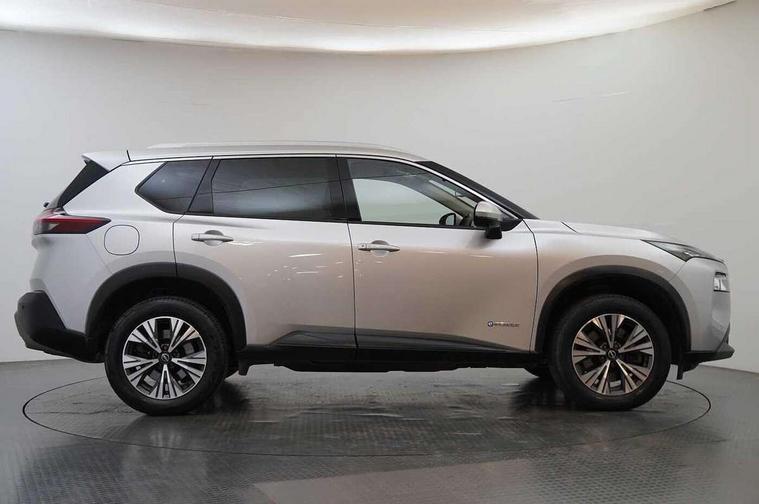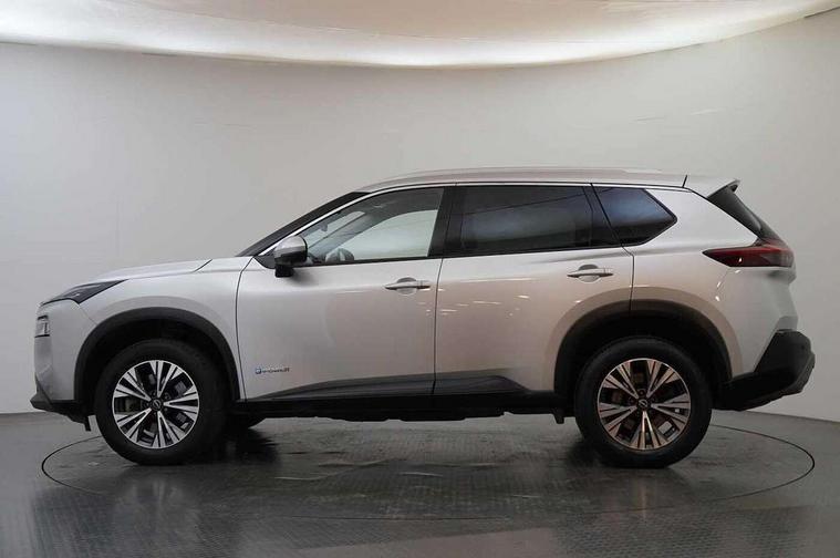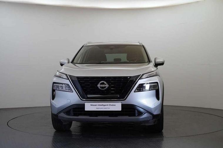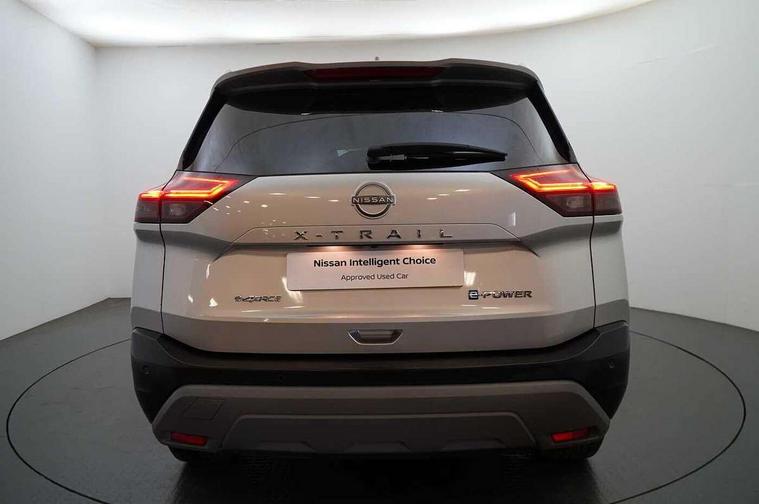 Android auto/Apple CarPlay (Wired), Blind spot warning, Drive modes (sport, normal, eco, snow, off-road), e-Pedal step, Electric speed sensitive power steering, Emergency and breakdown call, Front and rear parking sensors, Full Digital 12.3" TFT Digital Combimeter, Google maps services - search, weather, 3D maps and Google street view, Idle stop/start system, Intelligent around view monitor, Intelligent Cruise control (ICC), Intelligent driver alert system, Intelligent forward collision warning, Intelligent lane departure warning, Intelligent lane intervention, Intelligent lane keep assist, Maximum speed limiter, Moving object detection, Nissan connect 12.3 inch touchscreen infotainment system, Nissan connect nav with TomTom traffic, Push button starter, Rear cross traffic alert, Rear view camera, Remote control services - door locks, lights, horn and car locator, Telematics - notifications and connectivity services, TomTom live traffic services, Traffic sign recognition with legal speed adjustment, Trip computer, Virtual personal assistant and firmware over the air capability, Wireless apple carplay, 6 speakers, AM/FM audio system with DAB, Bluetooth audio streaming, Front USB connections (Type-A and Type-C), Rear USB charging only ports (Type-A and Type-C), 3rd brake light, Auto dimming rear view mirror, Auto rear wiper when reversing, Body colour mirror caps, Body coloured door handles, Bodyside mouldings, Chrome side window finisher, e-4ORCE badging, e-POWER badging, Electric auto folding door mirrors, Electrically adjustable and heated door mirrors, Follow me home headlights, Headlights auto levelling system, High beam assist, Intelligent auto headlights, LED daytime running lights, LED Headlights, LED rear lights, One touch front and rear electric windows with remote opening and closing, Partially body coloured bumpers, Rain sensing wipers, Rear privacy glass, Rear reversing light (bulb lighting), Rear roof spoiler, Rear side wing doors, Rear styling plate, Shark fin antenna, Splash free wipers, Super UV and infrared cut glass, Three blink turn signal, 12v power socket in dashboard and luggage, 3 bench rear seats in 2nd row, 3 rear headrests, 60/40 split folding rear seat bench, Butteryfly console, Chrome interior door handles, Cloth monoform upholstery, Driver and front passenger sunvisors with illuminated vanity mirrors, Driver seat back pocket, Dual zone automatic climate control with pollen filter, Front centre console and armrest, Front cupholders, Front door with bottle holders, Height adjustable driver's seat, Height adjustable front headrests, Height adjustable passenger seat, Leather shift knob, Leather steering wheel, Luggage board system, Luggage space lighting, Multifunction steering wheel, Passenger seat back pocket, Rear armrest with 2 cupholders, Rear door bottle holders, Single front passenger seat, Tilt/telescopic adjustable steering wheel, Two rear isofix child seat anchorage points with top tether, 3x3 point rear seatbelt pretensioners + load limiters, ABS with EBD and brake assist, Active brake limited slip, Auto hold function, Child locks on rear doors, Curtain and front side, far side airbags, Driver and passenger airbags, Driver, passenger and 2nd row rear seat belt reminder, Electronic parking brake, Front seatbelt pretensioners + load limiters, Height adjustable front seatbelts, Hill start assist, Intelligent blind spot intervention, Intelligent front emergency braking with pedestrian, cyclist recognition and junction assist, Intelligent rear automatic braking, Tyre pressure monitoring system, Vehicle dynamic control, Engine immobiliser, Intelligent Key, Remote central door locking with deadlocking, Thatcham Cat.1 alarm, 18" Diamond cut alloy wheels, Tyre puncture repair kit,