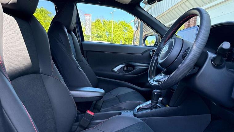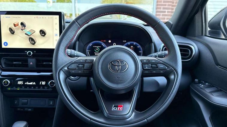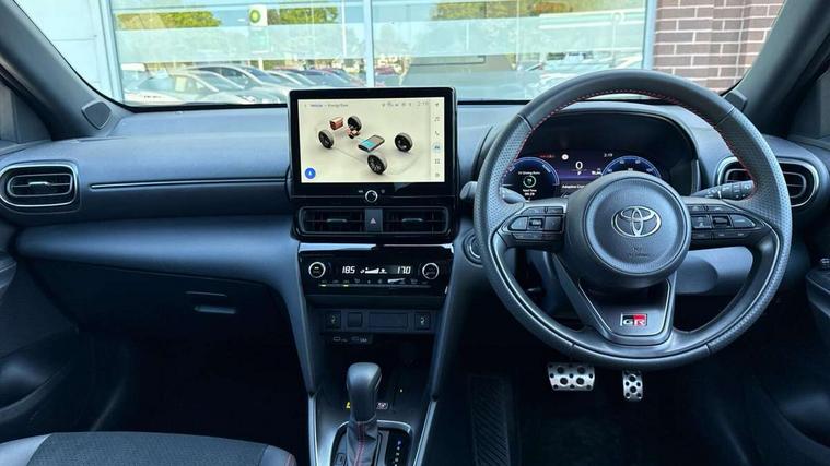 10.5" Multimedia display screen, 10.5" Toyota smart connect+ with navi multimedia system with wireless Smartphone integration incl Apple CarPlay, 12.3" Multi information display screen, Adaptive cruise control, multi info switches on steering wheel, Adjustable speed limiter, Bluetooth connectivity, Color multi-information display, Digital speedometer, Digital tachometer, Drive mode selector, Driver attention alert system, eCall emergency system, Electric power steering, Emergency driving stop system, Full range intelligent adaptive cruise control, Hybrid system indicator, Intersection turn assist, Key reminder warning, Lane trace assist, My T Connected services, Pre-collision system enhanced with emergency steering assist, Reversing camera, Road sign assist - RSA, Static guide lines on reversing camera, Tailgate, Telephone switch on steering wheel, Wireless Mobile Phone Charger, Steering assisted vehicle stability control, 6 speakers, DAB Digital radio, Front USB Type-C connector, Front USB-C device charger, Acoustic windscreen glass, Anti-jam protection on power windows, Auto dimming rear view mirror, Auto high beam [AHB] with on/off switch, Auto intermittent windscreen wipers, Automatic headlights, Automatic headlights cut-off, Automatically retractable door mirrors, Black door moulding, Black lower front grille, Black protection moulding on side doors, Black rear bumper with diffuser, Black rear under run, Black roof rails, Black wheel arch mouldings, Body colour door handles, Body colour front bumper, Electric adjustable heated door mirrors, Follow me home headlights, Front and rear electric windows with auto up/down function, Gloss black upper front grille, GR Sport meshed lower front grille, GR Sport meshed upper front grille, GR sport scuff plates, Headlight cut off reminder, Indicators integrated on door mirrors, Intermittent rear wiper, LED 3rd brake light, LED daytime running lights guide, LED front fog lights, LED front light guide, LED Indicators, LED projector headlights, LED rear lights with sequential indicators, Manual headlight levelling, Noise reduction layer on windscreen, Pre wiring for towing hook, Privacy glass, Rain sensor, Rear roof spoiler, Rear side wing doors, Rear window defogger, Shark fin antenna, 12v power outlet - front, 12V power point in boot, 2x Rear coat hooks, 3 seat bench in 2nd row, 3 Spoke GR Sport leather steering wheel, 40/60 split deckboard, 40:20:40 split folding rear bench seat, Adjustable rear headrests, Adjustable speed limiter switch on steering wheel, Black roof lining, Boot light, Driver and front passenger personal lights, Driver and front passenger Whiplash injury Lesseing seats, Driver and passenger seatback pockets, Dual zone automatic air conditioning, Fabric door trim, Front console box, Front cup holders, Front door pockets, Front head restraints, Front sport seats, Front/rear assist grips, Gear shift indicator, GR sport floor mats, Heated driver and passenger seats, Height adjustable driver's seat, Height adjustable front passenger seat, Hooks for luggage holding belts, ISOFIX child restraint system, Lane departure alert switch on steering control, Leather gearshift, LED centre room light, Light on driver and passenger sun visor, Manual telescopic and tilting steering wheel, Mirror on driver and passenger sun visor, Nanoe-X air purifier, Pollen air filter, Power adjustable lumbar support on driver seat, Rear cup holders, Rear door pockets, Rear head restraints, Remote air-conditioning system, Single compartment glovebox, Single front passenger seat, Soft tonneau cover, Storage box under boot floor, Ultra suede cloth upholstery, Voice recognition switch on steering wheel, White ambient lighting in centre console, White ambient lighting in footwell, White ambient lighting on front doors, 3x3 point rear seat belts, ABS+EBD+Brake assist, Driver and passenger central airbags, Driver and passenger front airbags, Driver and passenger side airbags, Electronic parking brake, Emergency brake light system (EBS), Front seat belt reminder, Hill start assist control (HAC), Passenger airbag on/off switch, Pre-collision system with pedestrian and cyclist detection, Rear door child safety locks, Rear passenger side airbags, Rear seat belt reminder, Traction control, Tyre pressure warning system, Immobiliser, Intrusion alarm, Keyless smart entry with push button start, Power door locks, Power passenger window lock, Remote door lock, Tyre repair kit,