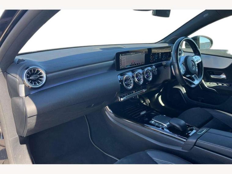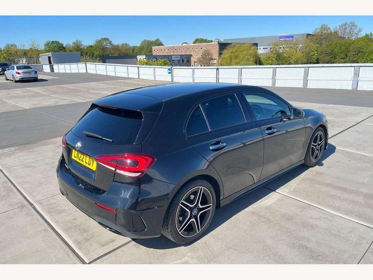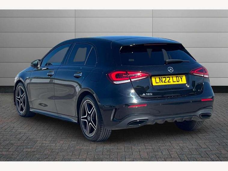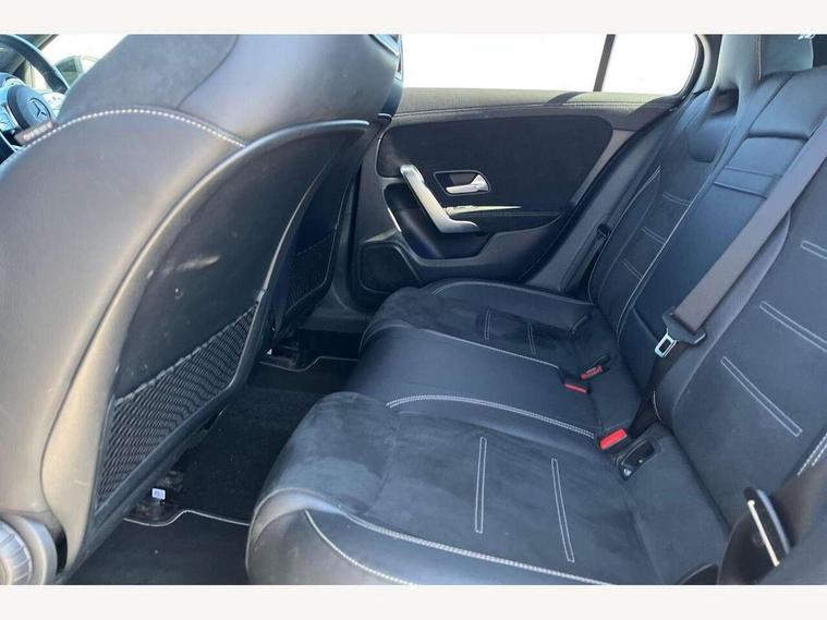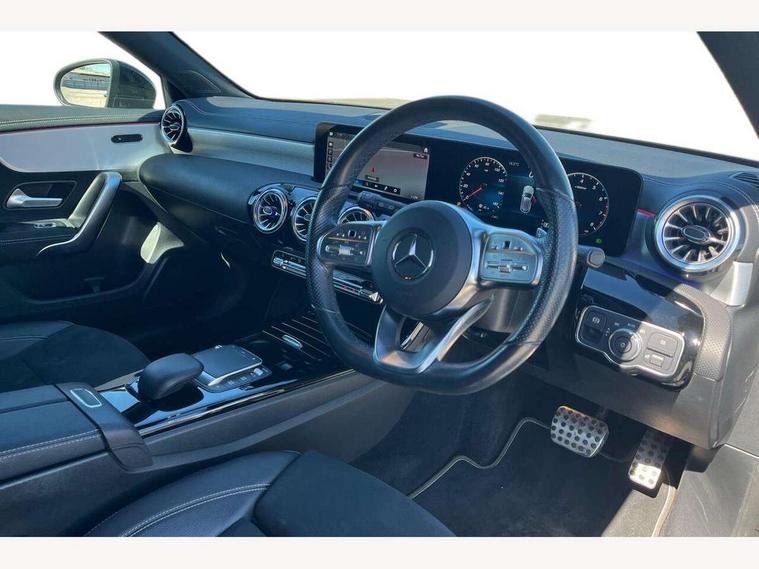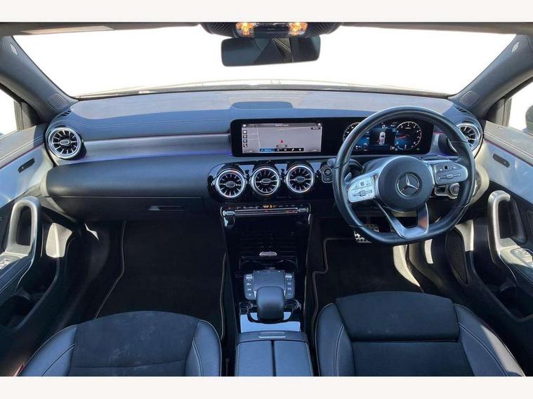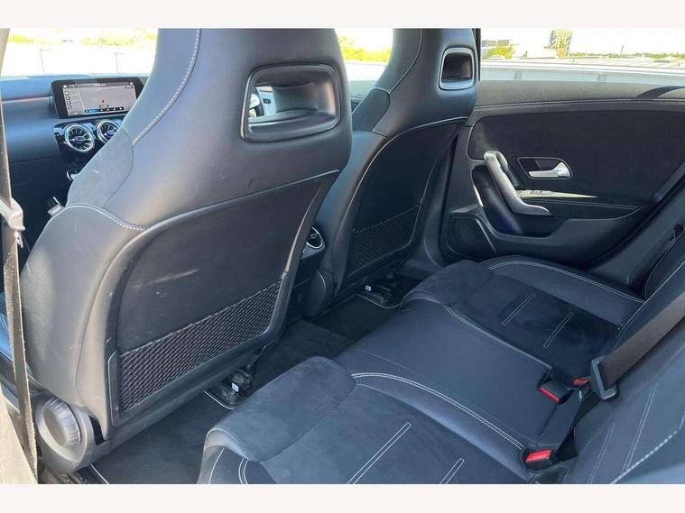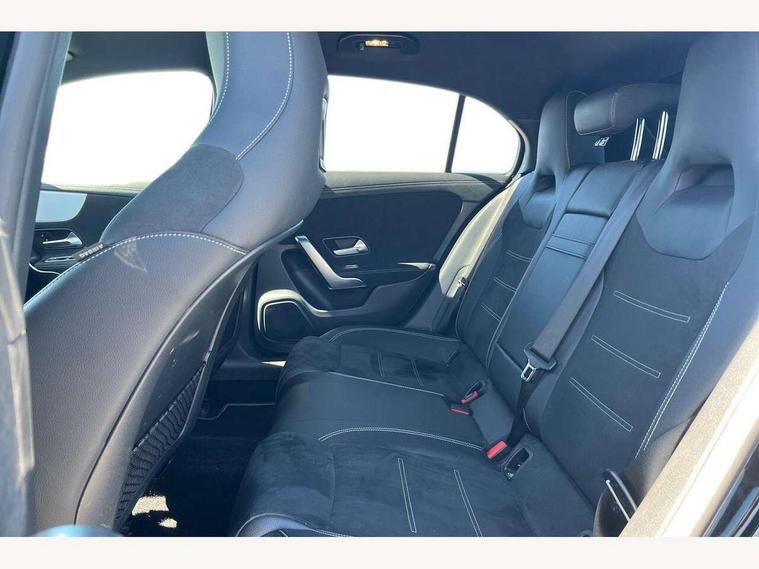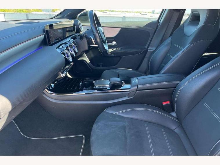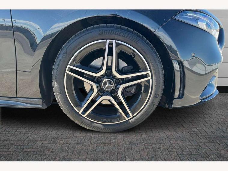 10.25" Digital instrument cluster display screen, 10.25" media display, 180 degree rear view camera with parking guidelines, Active parking assist with visual and audible warning of detected obstacles, Attention assist, Brake pad wear indicator warning light, Car wash mode, Cruise control + speed limiter, Direct steering, Dual bluetooth interfaces, DYNAMIC SELECT with a choice of driving modes (ECO, Comfort, Sport and Individual), ECO start/stop function, Fluid level warning indicator for fuel, oil, coolant and washer fluid, Hard-disk navigation, Hey Mercedes Voice activation, Lamp failure indicator, Lane keeping system, Mercedes me connect including emergency call system, accident recovery, breakdown and maintenance management, Mercedes me remote services, Outside temperature gauge, Owners manual in English, Pre-installation for private car sharing, Preinstallation for Mercedes Benz link, Service indicator (ASSYST), Smartphone integration with Apple CarPlay and Android auto, Speed sensitive power steering, Trip computer, Ultrasonic sensors positioned in the front and rear bumpers, Lowered comfort suspension, Rear axle torsion beam, 10 speakers, 2 USB ports (type C) in rear stowage compartment and one in front of center console, DAB Digital radio, MBUX multimedia system with DAB digital radio and touchpad including satellite navigation, Mercedes-Benz sound system - 100W, 4 Electric Front and Rear windows, Adaptive brake lights, AMG bodystyling - Front apron with splitter in chrome, rear apron with chrome trim and chrome visible trim elements in tailpipe, Automatic headlights, Black weather strip, Body colour bumpers, Body colour door handles, Body colour side skirt, Body coloured door mirrors, Electric adjustable and heated door mirrors with integrated LED side indicators, Exclusive diamond radiator grille, Exhaust system - Twin visible tailpipes in polished stainless steel, Headlamp assist automatic headlamp activation, Heated glass rear windscreen + timer control, High gloss black beltline, LED High level third brake light, LED high performance headlamps with integrated LED daytime running lights, LED tail lamp, Privacy glass, Radio aerial, Rain sensing windscreen wipers with two sensitivity settings, Rear fog lights, Rear side wing doors, Rear wiper, Window line trim strip in high gloss black, 3 seat bench in 2nd row, 3 Spoke flat bottom leather multi function steering wheel with perforated leather in grip area, 40:20:40 split folding rear seats, Artico man-made leather/Microfibre Dinamica upholstery with contrast stitching in light grey, Auto Mercedes-Benz child seat recognition sensor, Black air vents with surround in silver chrome, Black roof lining, Brushed stainless steel sports pedals with rubber studs, Controller on centre console with chrome surround, Floor mats with black top stitching and embroidered edition logo and piping in light grey, Front centre armrest with storage compartment, Front seat backs luggage nets, Front seat cushion length adjustment, Galvanished gear shift paddles on steering wheel, Heated front seats, Height/reach adjustable steering column, Illuminated front door sills with changeable cover, Interior lighting - 64 colour Ambient lighting, Interior mirror with reading lamps in black and frameless, Manual height adjustable front seats, Rear armrest with 2 cupholders, Rear head restraints, Seat occupancy sensor for front passenger seat, Single front passenger seat, Sports seats with integrated headrests, Stowage compartment in centre console with retractable cover, Sunvisors with illuminated vanity mirrors, Touchpad on center console, Twin front cupholders, Two zone thermotronic luxury automatic climate control, Light and sight pack - A Class, Mirror package - A Class, Night pack - A Class Saloon/Hatchback, Seat comfort pack - A Class, 3 rear 3 point seatbelts, ABS with Brake Assist, Active bonnet, Active brake assist includes forward collision warning system with autonomous braking, Adaptive brake assist with hold function and hill start assist, Childproof locks manually operated for rear doors and electrically operated for rear power windows, Crash responsive emergency lighting, Driver and passenger head and side airbags, Drivers knee airbag, Dual stage driver/passenger airbags, Electronic parking brake, ESP curve dynamic assist, ESP with ASR, Front and rear seatbelt reminder, Front brake callipers with Mercedes Benz lettering, ISOFIX and top tether child seat fixing points in two outer rear seats, Tyre pressure monitoring system, Warning triangle and first aid kit, Window airbags, Alarm system/interior protection/immobiliser, Keyless entry lock/unlock, Keyless Go, Remote central locking and crash sensor with emergency opening function, Urban guard vehicle protection system with immobiliser and interior protection, Black seatbelts, Matrix look light longitudinal grain aluminium trim element, 18" AMG 5 twin spoke light alloy wheels aerodynamically optimised painted in black with highsheen finish, Summer tyres, Tirefit sealant kit,