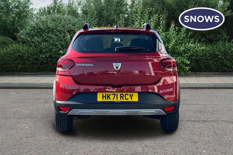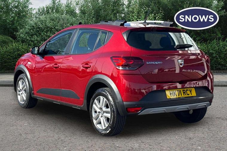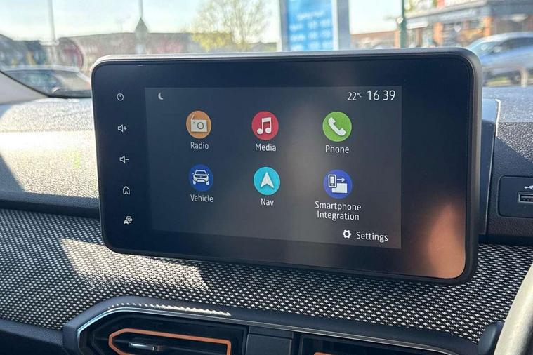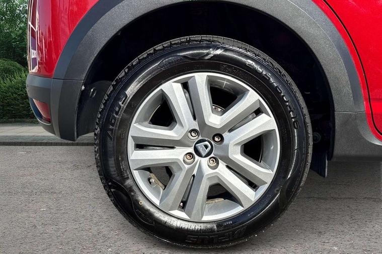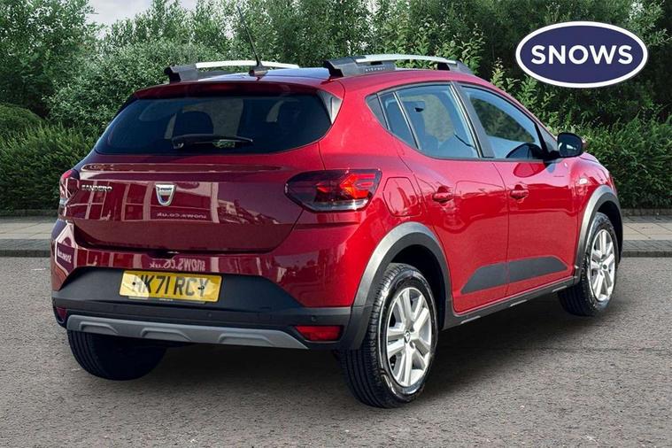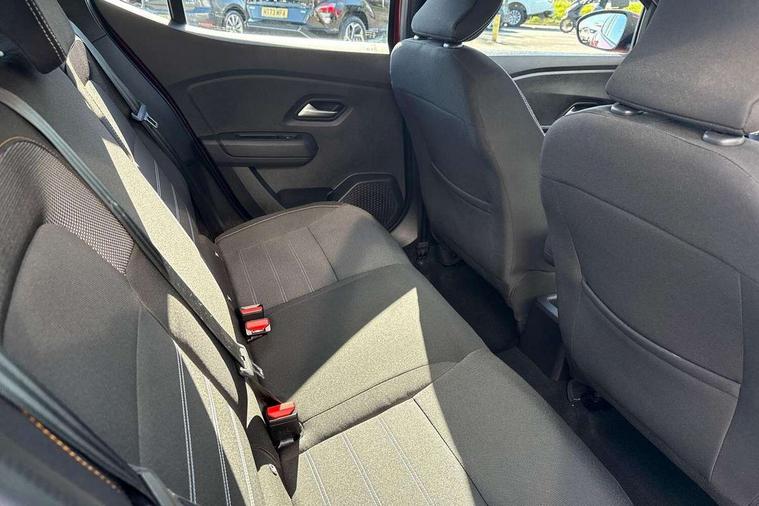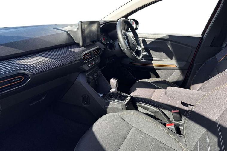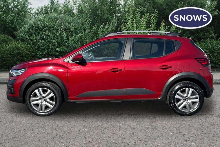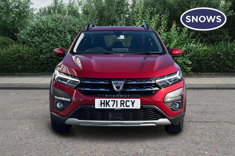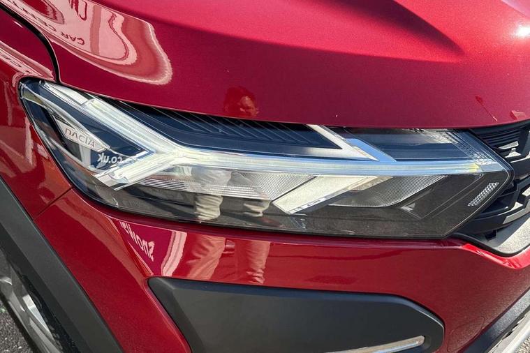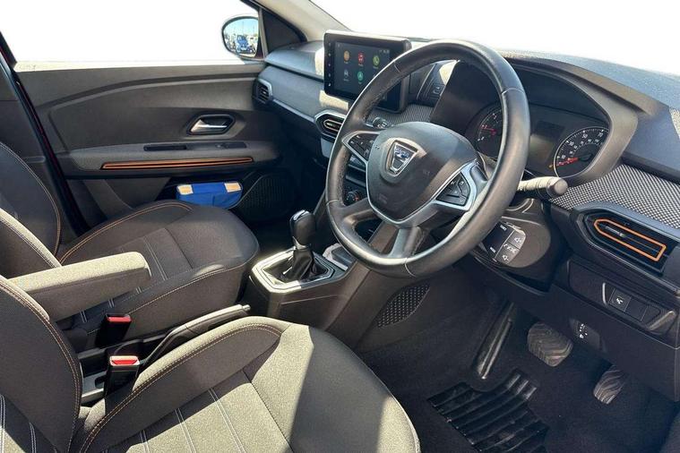 3.5" TFT instrument panel with on-board computer, Cruise control with speed limiter, eCall emergency call system, Eco mode, Electric power assisted steering, Rear parking sensors, Rev counter, Reversing camera, Stop/start system, 8" Media display - DAB radio, smartphone replication, bluetooth, 4 speakers, Apple CarPlay and Android Auto, USB connection for data transfer and charging, USB socket, 3 speed windscreen wipers, Auto lighting, Automatic wipers, Body colour door handles, Body colour door mirrors, Body coloured bumpers, Chrome longitudinal roof bars, Chrome radiator grille, Electrically adjustable and heated door mirrors, Front fog lights, Heated rear window, High level third brake light, LED automatic daytime running lights, LED Y-shape Dacia signature lighting, Modular roof bars, One touch electric front windows, Rear electric windows, Rear wash/wipe, Stepway inscription on radiator grille and roof bars, Tinted windows, 1/3 to 2/3 split folding rear seats, 12 volt front socket, 12 volt rear socket, 3 height adjustable rear headrests, Driver + passenger vanity mirrors, Fabric upholstery, Fixed smartphone holder on dashboard, Front armrest, Height adjustable driver seat, Height adjustable front headrests, Height/depth adjustable steering wheel, Isofix points for child seats in both outer rear seats, Manual air conditioning, Satin chrome interior door handles, Satin Chrome/Copper orange air vents, Soft feel steering wheel, Steering wheel controls, 3x3 point rear seatbelts, ABS and Emergency brake assist, Automatic emergency braking system, Child locks on rear doors, Door open warning, Driver airbag, ESC (Electronic Stability Control), ESP + Hill Start Assist, Front curtain airbags, Front seatbelt pretensioners, Front side airbags, Height adjustable front seatbelts, Passenger airbag, Seatbelt reminder for driver and front passenger, Tyre pressure monitor, Automatic central locking, Immobiliser, Keyless entry, Remote central locking, Decopart on instrument panel and door with textile, 16" Flex wheels with full wheel cap,