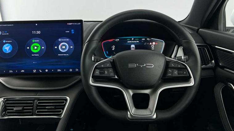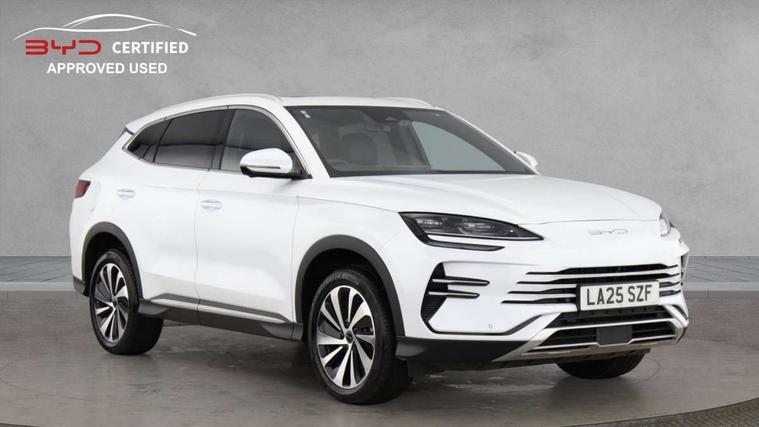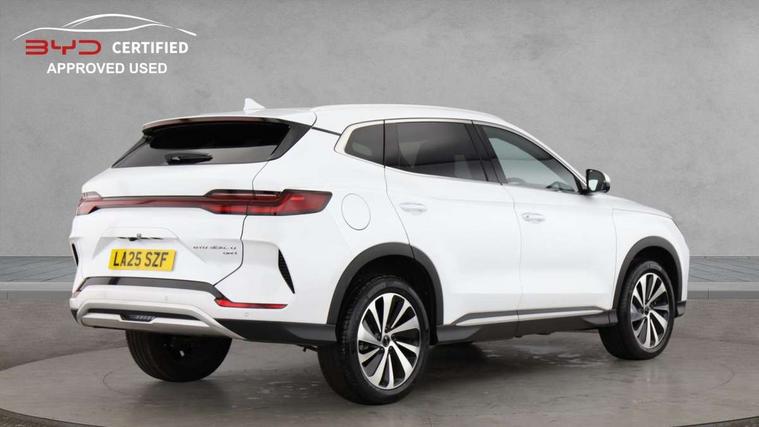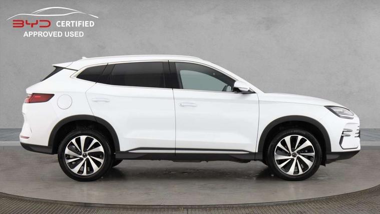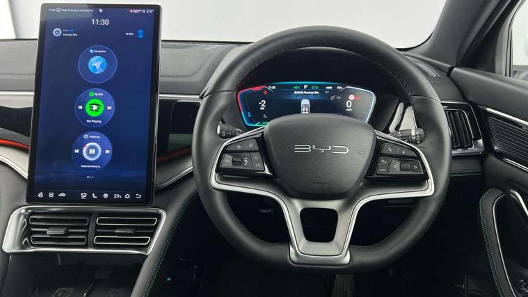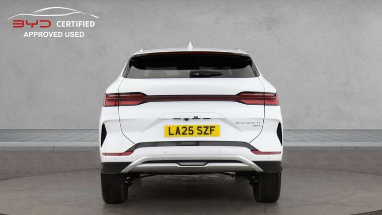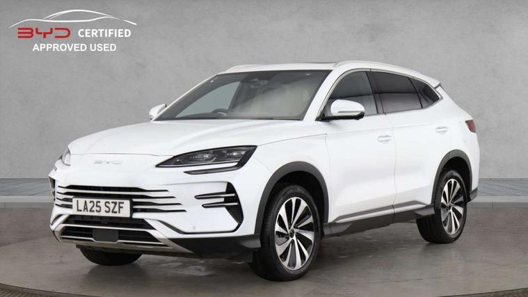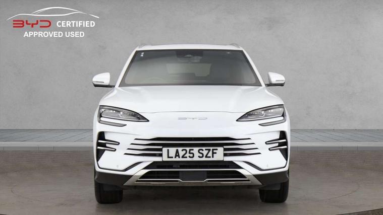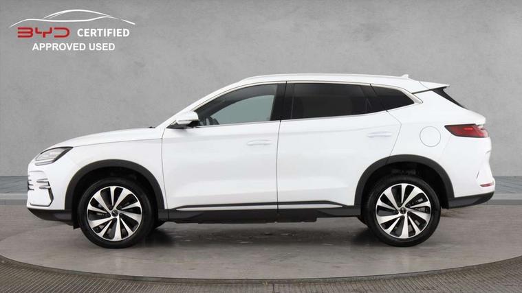 12.3" TFT full LCD instrument panel, 360 camera, Adaptive Cruise Control (ACC) and Intelligent Cruise Control (ICC), Automatic vehicle hold, Blind spot detection, BYD voice control assistant "Hi, BYD", Controller Deceleration Parking (CDP), Drive mode select (Eco, normal, sport, snow), e-Call (emergency call), Electric tailgate release, Emergency Lane Keeping Assist (ELKA), Forward collision warning, Front and rear parking sensors, Front cross traffic alert and front cross traffic brake, Head up Display, Indirect driver fatigue management, Intelligent Speed Limit Control (ISLC), Keyless system entry and start, Lane change assist, Lane Departure Assistant (LDA) and Lane Departure Warning (LDW), Lane departure prevention, PAS, Predictive collision warning, Rear collision warning, Rear cross traffic alert and rear cross traffic brake, Rollover Control System (RMI), Smartphone wireless charging, 2 x 15W, Traffic sign recognition (TSR), Vehicle-to-Load (V2L) function, 11kW on board charger, Mode 3 Type 2 charging cable (3 phase), V2L (Vehicle to load) power strip - Type F, 15.6" Electrically rotatable touchscreen, FM/DAB+ radio, Front USB ports, 1 x 18W Type C, 1 x 60W Type C, Infinity sound system with 10 speakers, Rear USB ports, 2 x 18W Type C, Aluminium roof rails, Auto dimming interior rear view mirror, Auto headlamps (on/off), Dynamic welcome lights, Electric folding and heated door mirrors, Emergency tow hook, Exterior mirror footlights, Follow me home headlights (The headlights turned on in advance and delayed off function), Front windscreen, UV protection, thermal insulation and sound proofing, High beam assist, LED 3rd brake light, LED daytime running lights, LED Headlights, LED taillights, One touch electric front/rear windows with pinch protection, Panoramic sunroof with anti-pinch sensor and electrically adjustable sunshade, Rain sensor windscreen wipers, Rear fog lights, Rear side wing doors, Rear window and rear windscreen with tinted glass, Rear wiper, 12V power outlet, 3 seat bench in 2nd row, 8 way electrically adjustable drivers seat, Adjustable rear headrests, Boot parcel shelf, Driver and passenger sunvisors with illuminated vanity mirrors, Driver seat memory function, Front centre armrest with 2 cupholders, Front LED reading lights, Front passenger seat with 4-way electric adjustment, Front seat footlights, Heat pump, Heated front seats, Heated steering wheel, Integrated headrest in front seats, ISOFIX and i-Size for front passenger and outer rear seats, LED front door lights, Nylon floor mats, PM2.5 air filter, PM2.5 air purification system, Rear air vents, Rear armrest with 2 cupholders, Rear side LED reading lights, Rhythm-reactive multi-colour ambient lighting, Single front passenger seat, Split folding rear seats - 40/60, Vegan leather multifunction steering wheel, Vegan leather upholstery, Ventilated front seats, 3x3 point rear seatbelts, ABS/EBD, Automatic emergency braking system, Brake override system (BOS), Child presence detection, Comfort stop, Door open warning, Driver airbag, Electric parking brake, Force limiting pre-tensioned front seat belts, Front centre airbag, Front passenger airbag, Front passenger airbag deactivation, Front side airbags, Hill descent control, Hill hold control, Hydraulic Brake Assist (HBA), Hydraulic brake boost, Mechanical child safety lock, Rear middle seat force limiting seat belt, Rear seat belt pretensioners, Reflective vest, Side curtain airbags, Traction control system (TCS), Tyre pressure monitoring system (TPMS), Vehicle Dynamics Control System (VDC), Warning triangle, 2 x Smart keys, Anti theft alarm system, Automatic door locking, 19" Bi-colour alloy wheels, Tyre nut covers remover, Tyre repair kit,