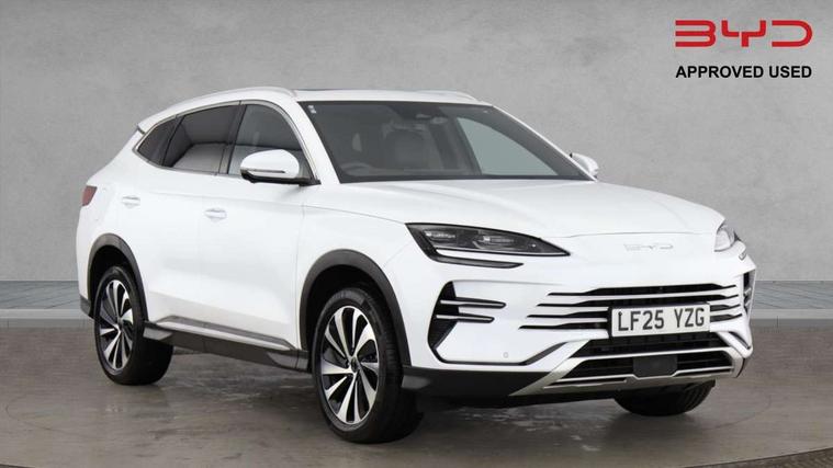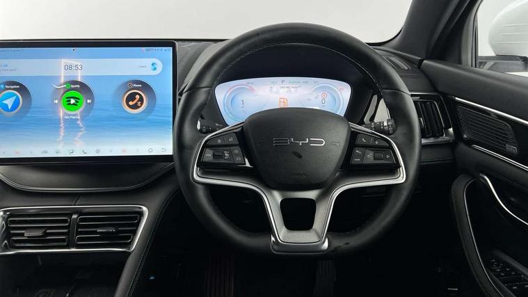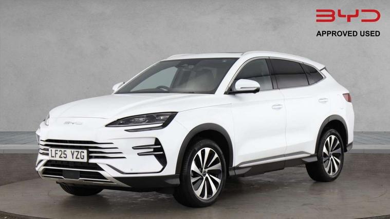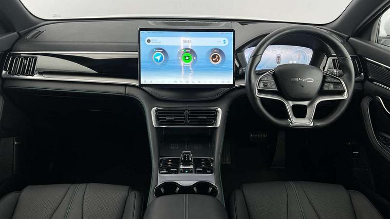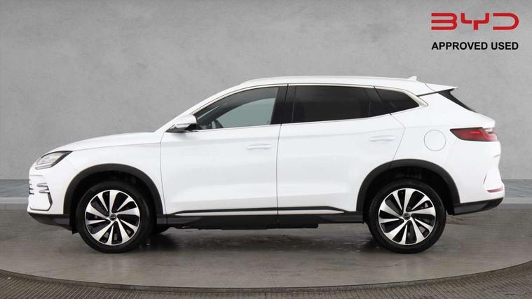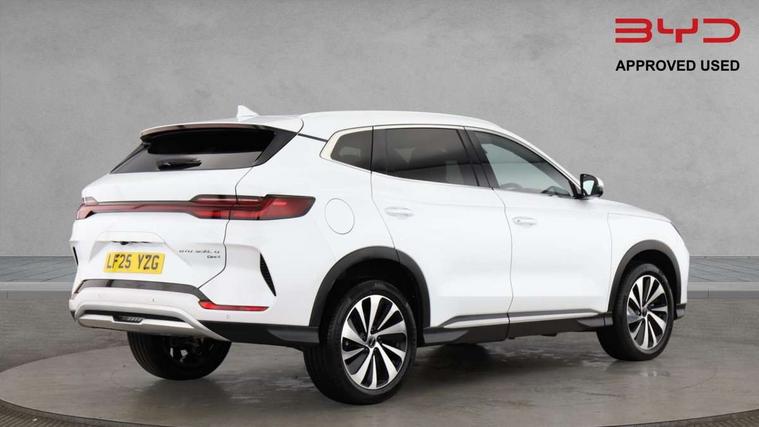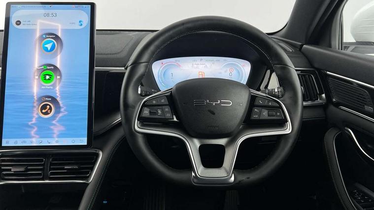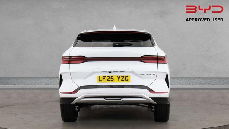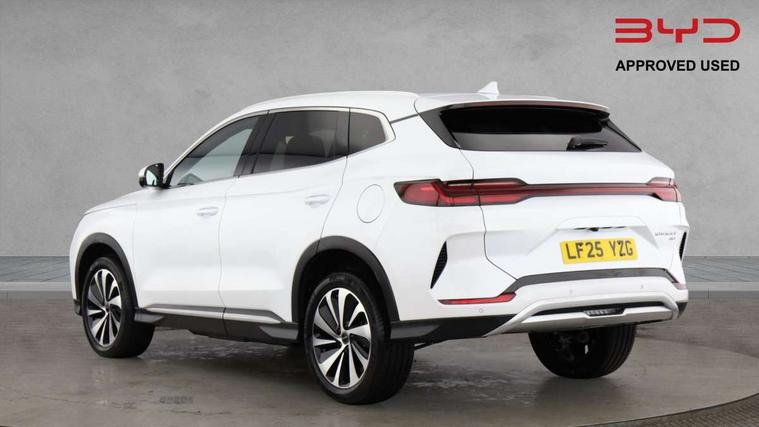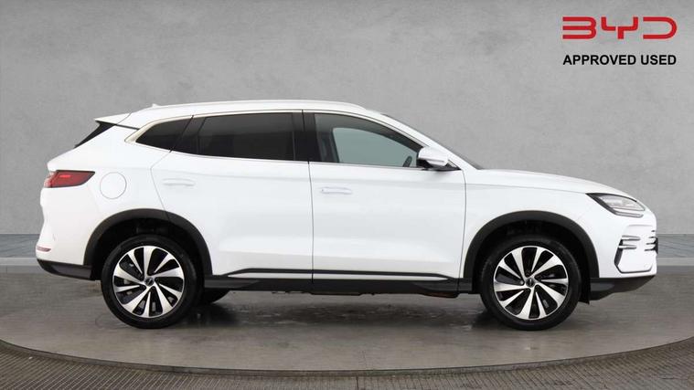 12.3" TFT full LCD instrument panel, 360 camera, Adaptive Cruise Control (ACC) and Intelligent Cruise Control (ICC), Automatic vehicle hold, Blind spot detection, BYD voice control assistant "Hi, BYD", Controller Deceleration Parking (CDP), Drive mode select (Eco, normal, sport, snow), e-Call (emergency call), Electric tailgate release, Emergency Lane Keeping Assist (ELKA), Forward collision warning, Front and rear parking sensors, Front cross traffic alert and front cross traffic brake, Head up Display, Indirect driver fatigue management, Intelligent Speed Limit Control (ISLC), Keyless system entry and start, Lane change assist, Lane Departure Assistant (LDA) and Lane Departure Warning (LDW), Lane departure prevention, PAS, Predictive collision warning, Rear collision warning, Rear cross traffic alert and rear cross traffic brake, Rollover Control System (RMI), Smartphone wireless charging, 2 x 15W, Traffic sign recognition (TSR), Vehicle-to-Load (V2L) function, 11kW on board charger, Mode 3 Type 2 charging cable (3 phase), V2L (Vehicle to load) power strip - Type F, 15.6" Electrically rotatable touchscreen, FM/DAB+ radio, Front USB ports, 1 x 18W Type C, 1 x 60W Type C, Infinity sound system with 10 speakers, Rear USB ports, 2 x 18W Type C, Aluminium roof rails, Auto dimming interior rear view mirror, Auto headlamps (on/off), Dynamic welcome lights, Electric folding and heated door mirrors, Emergency tow hook, Exterior mirror footlights, Follow me home headlights (The headlights turned on in advance and delayed off function), Front windscreen, UV protection, thermal insulation and sound proofing, High beam assist, LED 3rd brake light, LED daytime running lights, LED Headlights, LED taillights, One touch electric front/rear windows with pinch protection, Panoramic sunroof with anti-pinch sensor and electrically adjustable sunshade, Rain sensor windscreen wipers, Rear fog lights, Rear side wing doors, Rear window and rear windscreen with tinted glass, Rear wiper, 12V power outlet, 3 seat bench in 2nd row, 8 way electrically adjustable drivers seat, Adjustable rear headrests, Boot parcel shelf, Driver and passenger sunvisors with illuminated vanity mirrors, Driver seat memory function, Front centre armrest with 2 cupholders, Front LED reading lights, Front passenger seat with 4-way electric adjustment, Front seat footlights, Heat pump, Heated front seats, Heated steering wheel, Integrated headrest in front seats, ISOFIX and i-Size for front passenger and outer rear seats, LED front door lights, Nylon floor mats, PM2.5 air filter, PM2.5 air purification system, Rear air vents, Rear armrest with 2 cupholders, Rear side LED reading lights, Rhythm-reactive multi-colour ambient lighting, Single front passenger seat, Split folding rear seats - 40/60, Vegan leather multifunction steering wheel, Vegan leather upholstery, Ventilated front seats, 3x3 point rear seatbelts, ABS/EBD, Automatic emergency braking system, Brake override system (BOS), Child presence detection, Comfort stop, Door open warning, Driver airbag, Electric parking brake, Force limiting pre-tensioned front seat belts, Front centre airbag, Front passenger airbag, Front passenger airbag deactivation, Front side airbags, Hill descent control, Hill hold control, Hydraulic Brake Assist (HBA), Hydraulic brake boost, Mechanical child safety lock, Rear middle seat force limiting seat belt, Rear seat belt pretensioners, Reflective vest, Side curtain airbags, Traction control system (TCS), Tyre pressure monitoring system (TPMS), Vehicle Dynamics Control System (VDC), Warning triangle, 2 x Smart keys, Anti theft alarm system, Automatic door locking, 19" Bi-colour alloy wheels, Tyre nut covers remover, Tyre repair kit,