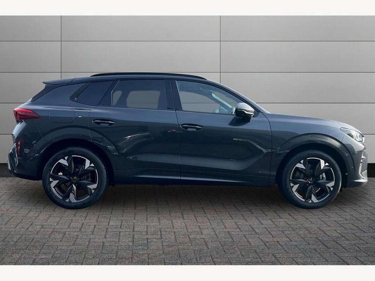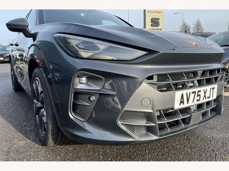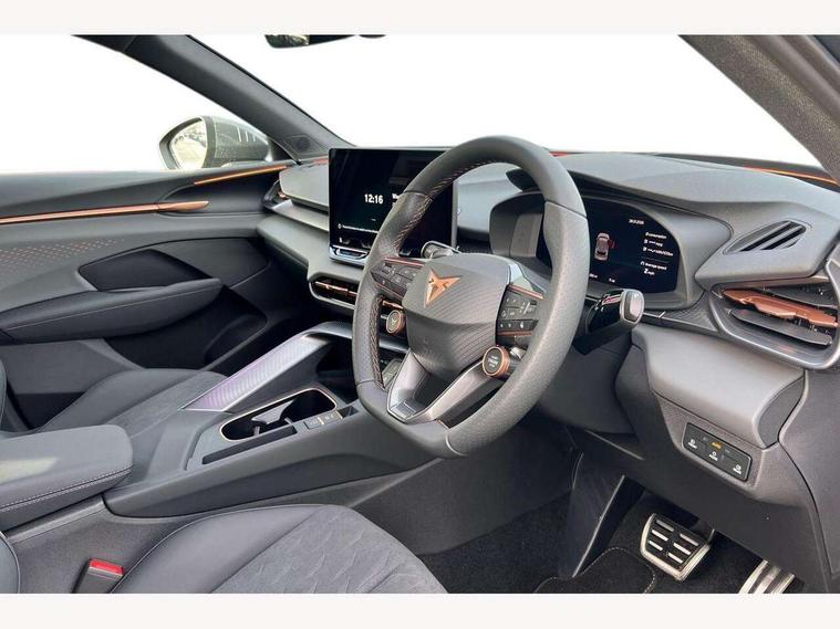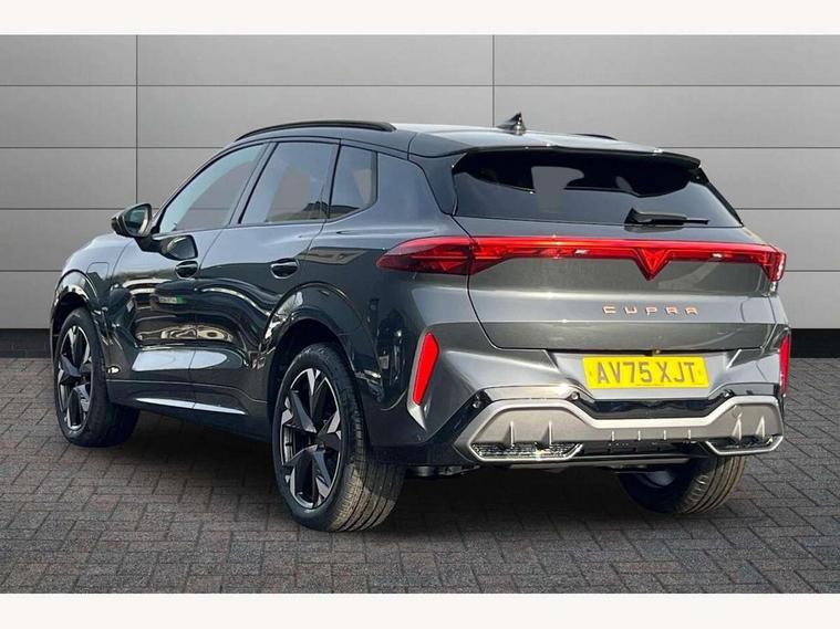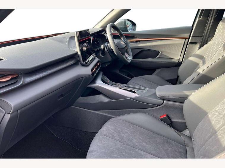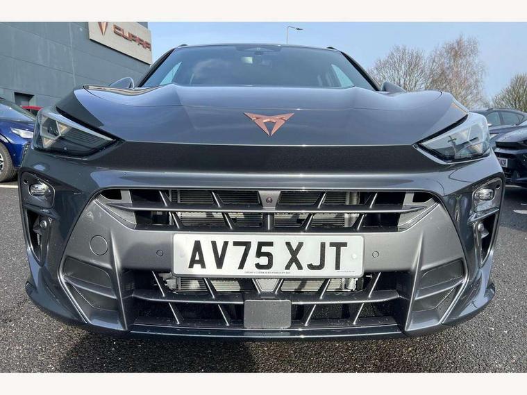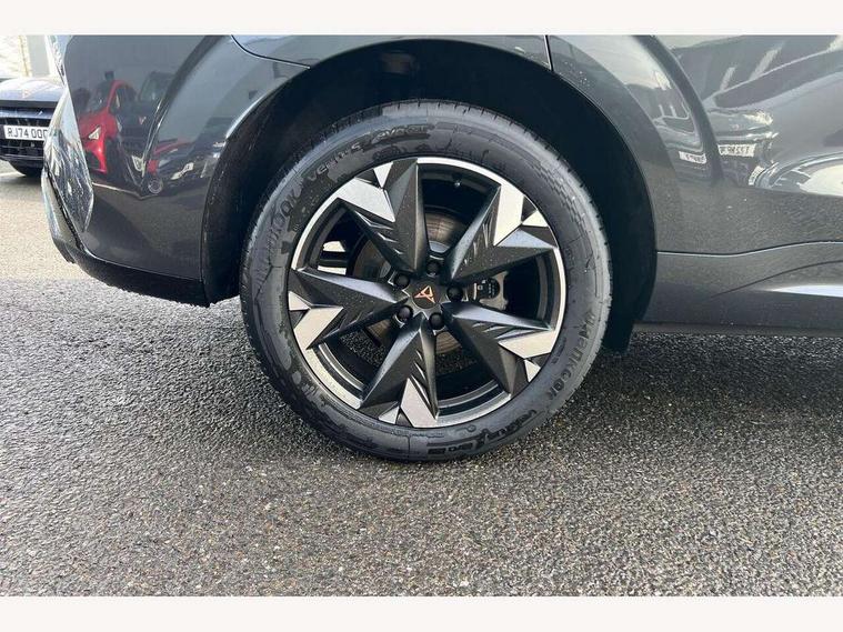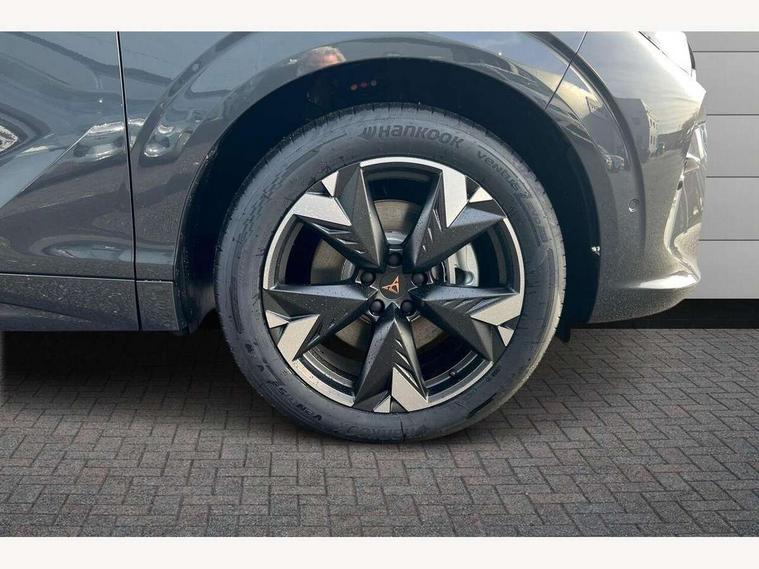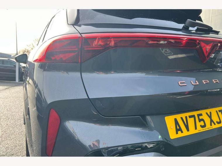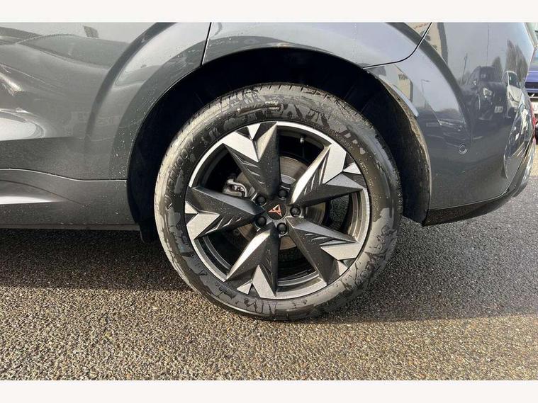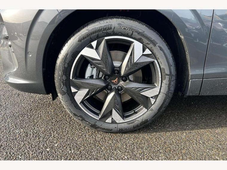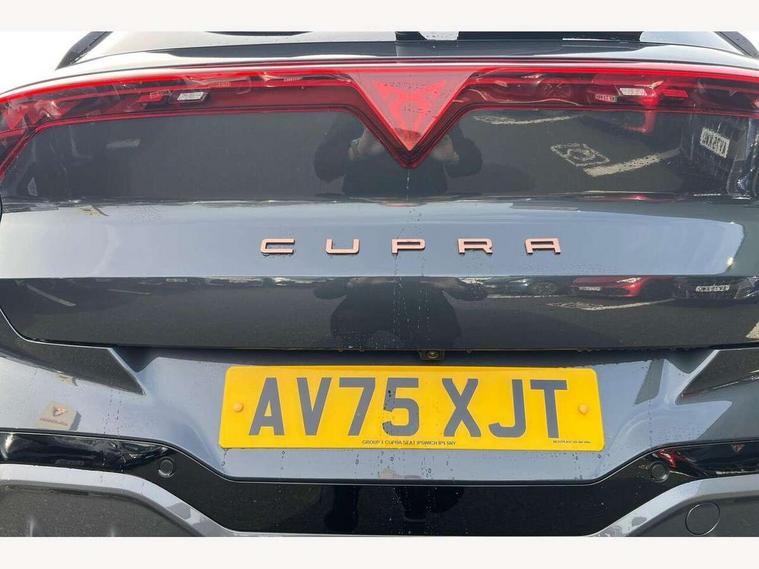 10.25" digital cockpit and configurable dashboard, Adaptive cruise control with follow-to-stop and speed limiter, Advanced driver alert system, Advanced lane assist with semi-automatic vehicle control in a medical emergency and traffic jam assist, Driving profile selection and conventional shock absorber, Dynamic road sign display, E-call, Electric tailgate with virtual pedal, Emergency steering support with turn assist, Front and rear parking sensors, Front assist (Forward collision warning with automatic braking) with multifunction camera and front cross traffic assist, Head up Display, Intelligent park assist, Media system with Nav - 12.9" touch display, voice control, full link phone (wired/wireless), DAB and Steering wheel mounted controls, Rear traffic assist, Side and exit assist, Speed sensitive power steering, Start/stop system with regenerative braking, Top view camera (front camera, rear camera, 2 side cameras), Wireless phone charger, 10 amp mode 2 charging cable, 16 amp mode 3 charging cable, CUPRA sport suspension, Auto dimming rear view mirror, Black roof rails, CUPRA 3D rear lights with ceremony & swiping indicator and illuminated logo, Dark tinted rear windows, Daytime running lights with automatic headlight control and Coming and Leaving home function, Door mirrors with memory function and lowing function on passenger mirror, Dynamic headlight range control, Electric front/rear windows, Electrically adjustable, heated and folding door mirrors, Front fog lamps with cornering function, Heat reflecting windscreen, High beam assist, LED headlamps with signature "CUPRA LED", Rain sensing wipers, Rear fog light on one side, back up light on both sides, Rear side wing doors, Rear wash/wipe, Third brake light, Welcome lights (within exterior mirror housing), 3 seat bench in 2nd row, Black roof lining, Cupra sports pedals, Dinamica cloth upholstery, Driver seat memory function, Electrically adjustable front seats including lumbar support, Four x USB Type C ports (2 in front and 2 in rear), Front and rear head restraints, Front and rear reading lights X 4, Front centre armrest, Heated front seats, Heated leather wrapped multi function sports steering wheel with tiptronic, Illuminated interior front door sills, Isofix, Operating voltage 12V, Single front passenger seat, Smart wraparound interior lighting, Sunvisors with illuminated mirror, Three zone climate control with control panel in rear, Unsplit rear seat bench, split folding backrest, with centre armrest, Variable luggage/load compartment floor, 3 point seatbelts in front with pretensioner and electric height adjustment, 3 point seatbelts on all rear seats, Brake control system - ESC and brake booster, Child proof door locks, Driver and front passenger airbags, Electronic parking brake, Front and rear disc brakes, Front interaction airbag, Front passenger airbag deactivation switch, Front side airbags with curtain airbags, Pre-crash front and rear seat belt tensioner, window closure and hazard lights, Tyre pressure monitoring system, Visual and acoustic seat belt reminder, electric contact in front and rear, Anti theft alarm, Keyless locking and starting system keyless advanced with safelock, Locking wheel bolts, Black decorative trims, Chrome interior detailing, 19" Spectrum exclusive machine alloy wheels, Breakdown kit, Tool kit,