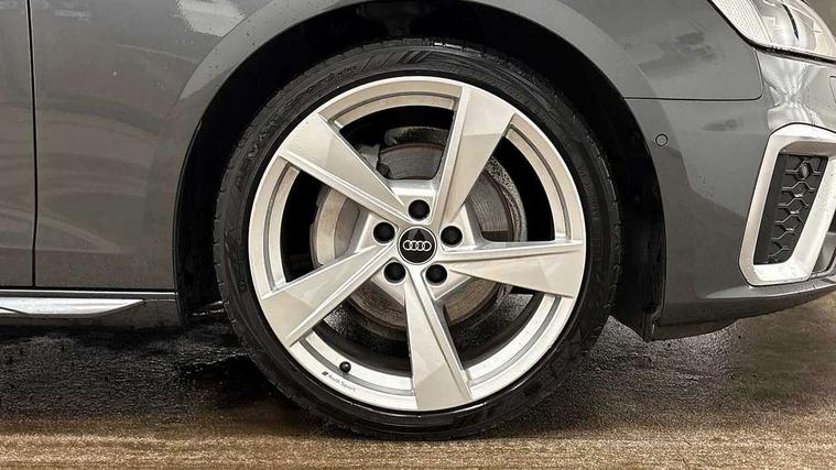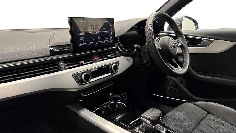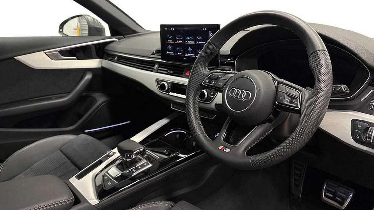 Audi connect safety and service (e-call), Audi drive select, Audi smartphone interface, Audi virtual cockpit, Automatic start-stop system with coasting functionality and efficiency programme, Bluetooth interface, Camera based traffic sign recognition, Electromechanical power steering, Email, calendar and text messages displayed via MMI, Front and rear parking sensors, Lane departure warning, MMI Navigation plus with MMI touch includes 10.1" high resolution colour MMI display, 3D map, Power operated tailgate, Rear view camera, Voice control system, 54 litre fuel tank, Sports suspension lowered by 23mm, 2 USB charging ports, 8 passive loudspeakers, DAB digital radio reception, Aluminium roof rails, Auto dimming rear view mirror, Body colour door handles, Body colour front spoiler lip, Body colour side sill trim, Body coloured door mirrors, Electric adjustable/heated/folding door mirrors with auto dimming, Grained matt black side air inlets with matt aluminium silver inlay, High beam assistant, Honeycomb structure radiator grille in grained matt black, LED headlights with LED rear lights + dynamic rear indicators + headlight adjustment and high beam, turning light + LED daytime running lights, LED third brake light, Matt aluminium silver tailpipe trim, Privacy glass, Rain and light sensors, Rear side wing doors, Rear wiper, S Line badges on the front wings, S line front and rear bumpers with side skirts, S Line rear diffuser in matt anthracite black with trim strip in matt aluminium silver, S Line roof edge spoiler, Variable intermittent front wash/wipe, Windscreen with acoustic glazing, 3 spoke high multi-function sports leather steering wheel grips in perforated leather with S badging including paddle shift, 4 way electric lumbar support for driver and front passenger, 40/20/40 split folding 3 rear seat bench in 3 parts with rear centre armrest, Black carpets, Black cloth headlining, Black perforated leather gearknob, Contrast stitching on seats, steering wheel and gear lever gaiter, Deluxe 3 zone electronic climate control, Electric load area cover, Front and rear head restraints, Front centre armrest, Heated front seats, Illuminated door sill trims with S logo, ISOFIX child seat mounting and top tether, Manual seat adjustment, Single front passenger seat, Stainless steel pedals and foot rest, High gloss package - A4, LED Interior light pack - A4/S4, 3 rear seatbelts, 6 airbags - Driver, front passenger, curtain and side windows, Attention and drowsiness assist, Electronic Stabilisation Control (ESC) including ABS, ASR and EDL, Hill hold assist, Multi collision brake assist, Pop-up bonnet for pedestrian protection, Pre sense city, Rear door child safety locks, Seatbelt monitoring, Warning triangle and first aid kit, Anti theft alarm, Anti theft wheel bolts, Central locking, Keyless Go, Matt brushed aluminium inlays, Tool kit, Tyre repair kit,