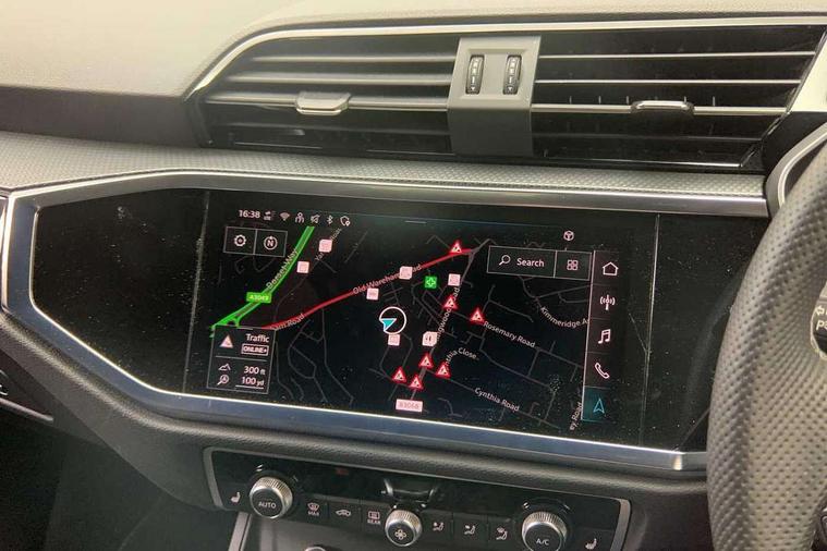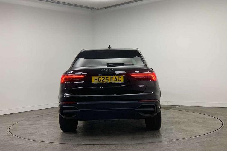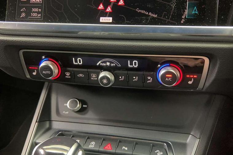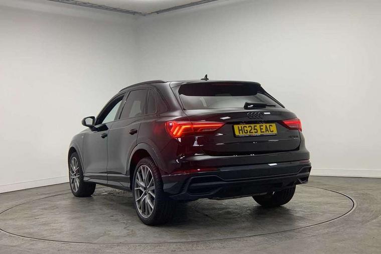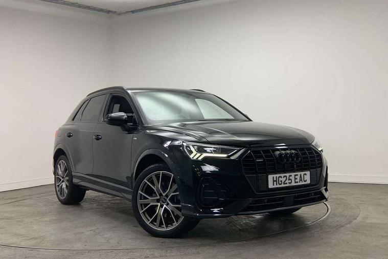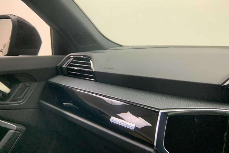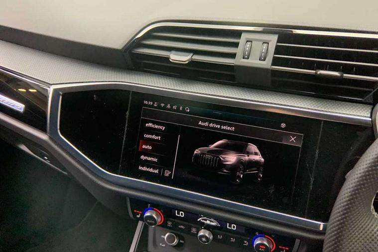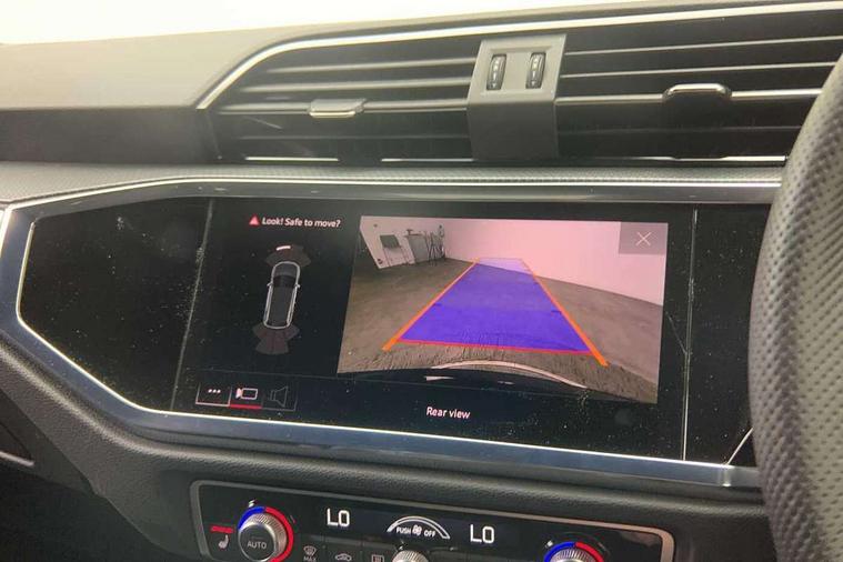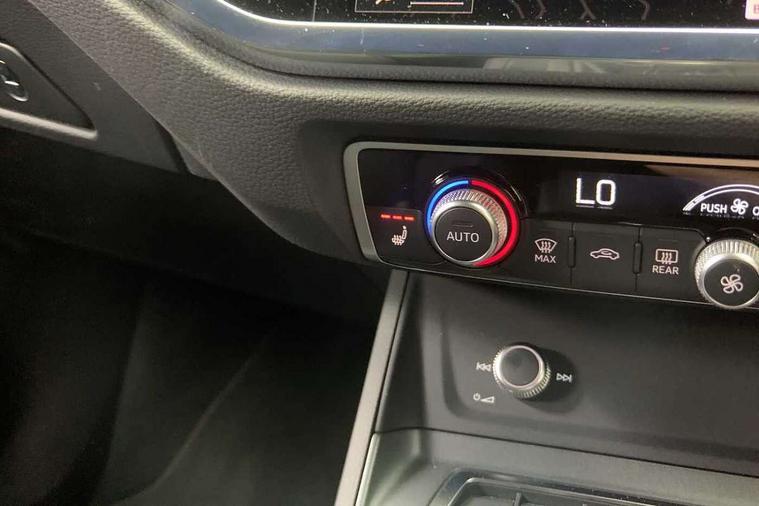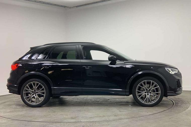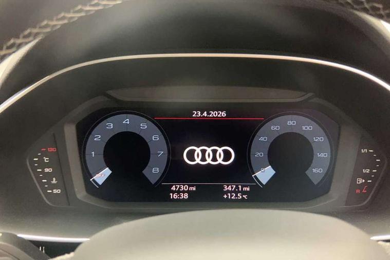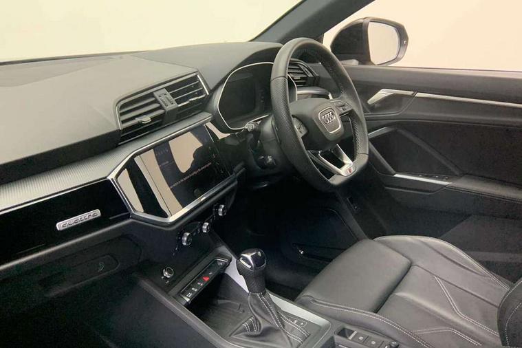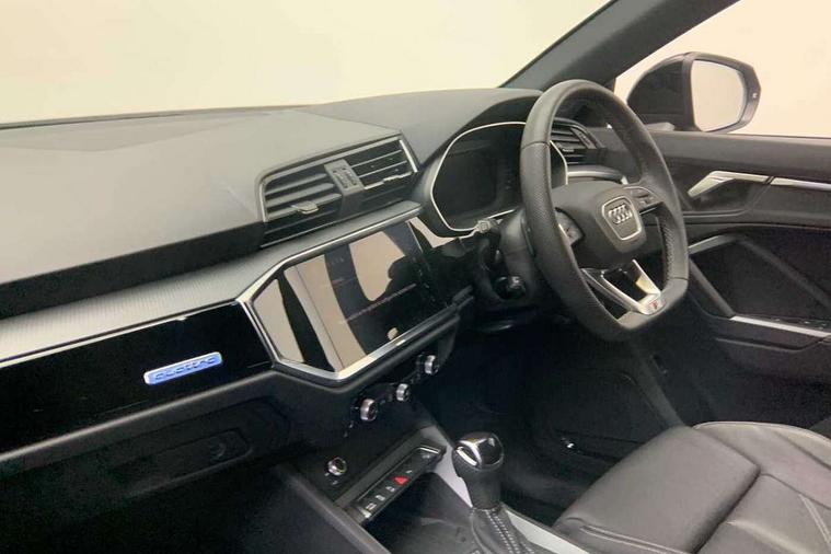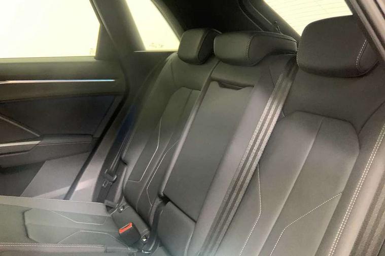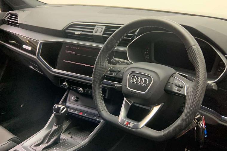 Amazon alexa Integration, Audi connect safety and service, Audi drive select, Audi lane departure warning, Audi Virtual Cockpit - 10.25" display, Bluetooth interface, Camera based traffic sign recognition, Distraction and Fatigue warning, Legal emergency call, MMI Navigation Plus with high resolution 10.1 inch touchscreen colour display, Power operated tailgate, Progressive steering, Service interval indicator, Smartphone interface includes wireless Apple carplay/Android Auto, Start stop system with recuperation, Voice control system with natural language interaction, Sports suspension, 2 USB-C ports with charge and data functions, 6 passive loudspeakers, DAB digital radio module, Acoustic windscreen, Audi Beam uses LEDs to project the Audi logo onto the ground as you exit your Q3, Auto dimming door mirrors, Auto dimming frameless rear view mirror, Black roof rails, Electrically folding, adjustable and heated door mirrors with integrated LED side indicators and kerb view function for passenger side, Front and rear electric windows, Front fog lights, Grille vertical bars in aluminium silver/Matt, High gloss black finish B and C pillars, LED Dynamic rear indicators, LED headlights with LED daytime running lights, LED rear lights, LED third brake light, Privacy glass dark tinted rear and rear-side windows (from B-pillar backwards), Rain and light sensors, Rear diffuser grille in grained matt black, Rear diffuser strip in matt anthracite black, Rear side wing doors, Rear wiper, S line bumpers in contrasting Manhattan grey, Variable front intermittent wipers, 12V socket in rear centre console, 3 seat bench in 2nd row, 40:20:40 folding with manual adjustment for 60:40 forwards/backwards position and backrest angle, Adjustable rear seat bench/backrest with centre armrest and cupholder, Black cloth headlining, Dual zone electronic climate control, Electric lumbar support, Front and rear black floor mats with contrast stitching in rock grey, Front and rear headrests, Front centre armrest, Height and reach adjustable steering wheel, Illuminated door sill trims with S logo, ISOFIX child seat mounting for front passenger with airbag deactivation and outer rear seat including top tether attachment point for outer rear seats, Manual front seats with height adjustment, Perforated leather gearknob, Single front passenger seat, Stainless steel luggage compartment sill finisher, Stainless steel pedals, Twin leather upholstery with front sport seats + S embossing, Black styling pack - Q3, Non smoking pack - Q3, 3x3 point rear seatbelts, 6 airbags - Driver, front passenger, curtain and side windows, Audi pre-sense front with pedestrain and cyclist recognition, Electrically operated child locks on rear doors, Electromechanical parking brake, Electronic stabilisation control including ABS, ASR and EDL, Front seatbelt reminder, Hill descent control, Hill hold assist, Pre sense basic, Seatbelt monitoring, Tyre pressure warning, Warning triangle and first aid kit, Anti theft wheel bolts, Immobiliser, Remote central locking, Thatcham approved category 1 anti theft alarm, Aluminium look interior elements, Detail dashboard around MMI touch colour display in glass look, black with surround in aluminium look, Leatherette door armrest, Piano black inlay,