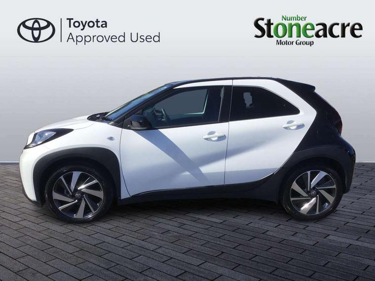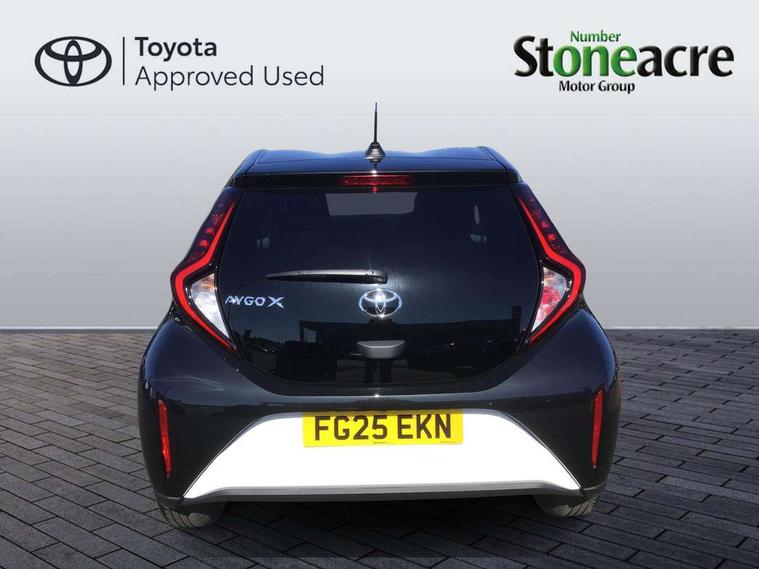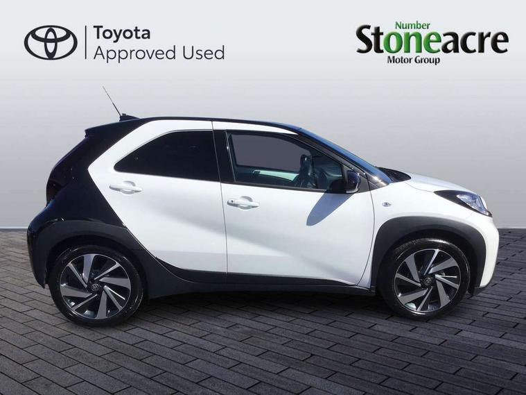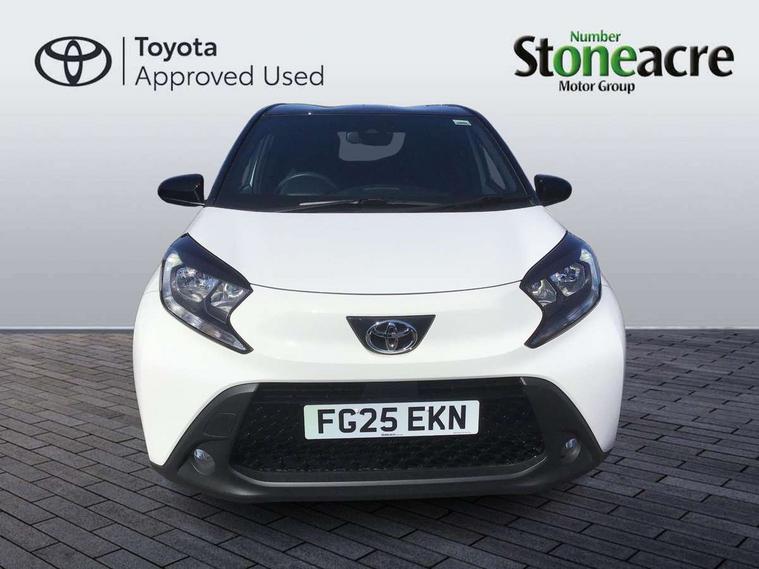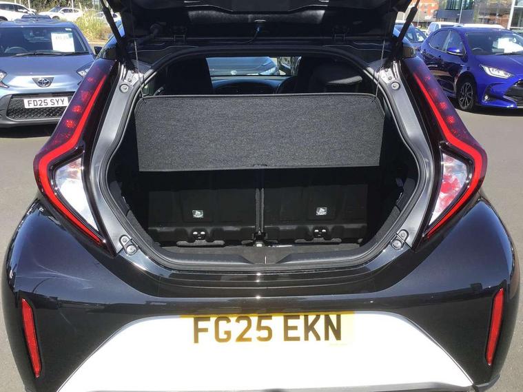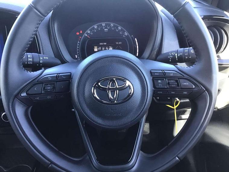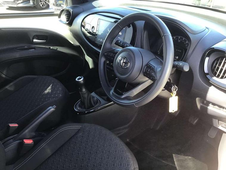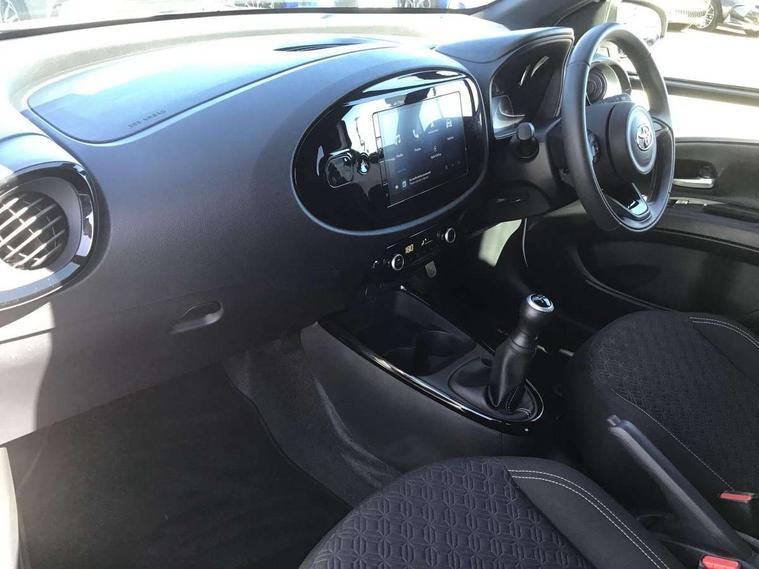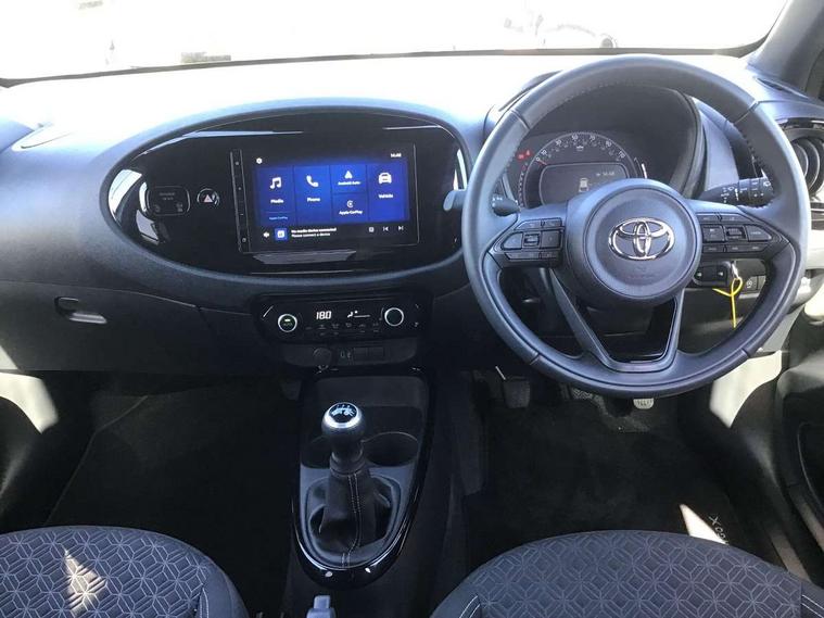 4.2" TFT colour screen, Adjustable speed limiter, Analogue speedometer, Bluetooth connectivity, Digital tachograph, Driver attention alert system, eCall emergency call system, Electric power steering, Intersection turn assist, Key reminder warning, Noise reduction kit, Pre collision system with emergency steering assist, Reversing camera with static guide lines, Smart phone integration with Apple car play/Android Auto, Speed limit display, Start and stop, Vehicle Stability Control (VSC), 4 speakers, 9" HD multimedia display touch screen with Toyota smart connect, DAB digital audio broadcast, USB connector, Auto headlights, Auto wipers, Automatic headlights cut-off, Bicycle towing hook, Black contrast roof, Black side protection mouldings, Black wheel arch mouldings, Body colour door handles, Body coloured front bumper, Boot door scuff plate, Eclipse black rear bumper, Electric heated door mirrors, Follow me home headlights, Front fog lights, Front power windows, Gloss black door mirrors, Gloss black upper front grille, Headlight cut-off reminder, LED daytime running lights, LED front light guide, LED High mounted stop lamp, Manual day/night rear view mirror, Manual headlight levelling, Pagoda roof, Power adjustable door mirrors, Power back door, Privacy glass, Projector halogen headlights, Rain sensor, Rear combination lights LED bulb type, Rear side wing doors, Rear windscreen defogger, Rear windscreen wiper, Short antenna, Variable intermittent windscreen wipers, 12v power outlet - front, 2 seat bench in 2nd row, 3 spoke leather steering wheel, 50/50 split folding rear seat, Adhesive roof headlining, Adjustable speed limiter switch on steering wheel, Audio and telephone switches on steering wheel, Auto air conditioning, Black insert on steering wheel, Black roof lining, Boot light, Centre room light, Chrome interior door handles, Chrome surround on air conditioning buttons, Clean air filter, Console box storage in body color, Fabric upholstery, Floor mats, Front and rear cup holders, Front head rest deco art, Front head restraints, Height adjustable driver seat, Intelligent adaptive cruise control switch on steering wheel, ISOFIX child restraint system on rear seats, Lane departure alert switch on steering wheel, Leather gearshift knob, Manual tilt steering wheel, Manually reclining and sliding driver seat, Manually reclining and sliding front passenger seat, Multimedia switches on steering wheel, Pollen filter, Rear door pockets, Rear head restraints, Satin silver insert on gear shift knob, Single compartment glovebox with lights, Single front passenger seat, Soft tonneau cover, Sun visors with mirror on driver and passenger side, Voice recognition switch on steering wheel, Toyota safety sense pack - Aygo X, Anti lock braking system + Electronic brake force distribution, Child safety door lock, Emergency brake light signal (EBS), Hill start assist control (HAC), Passenger airbag on/off switch, Seat belt reminder for front and rear seats, Supplement restraints system (SRS) - 6 airbags, Traction control, Tyre pressure warning system, Immobiliser, Remote power door locks, Black wheel centre caps, Tyre repair kit,