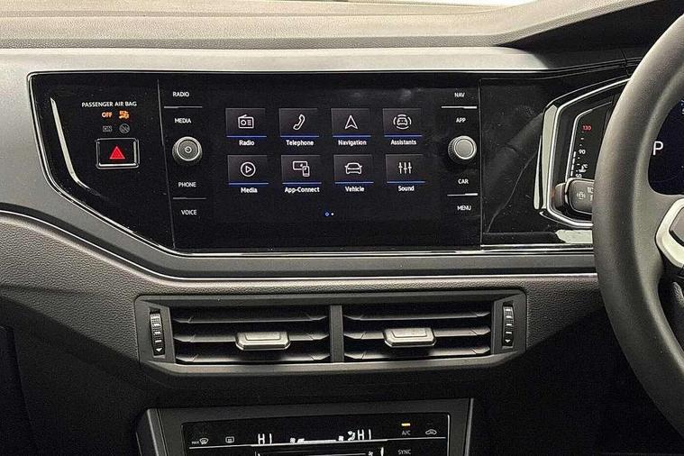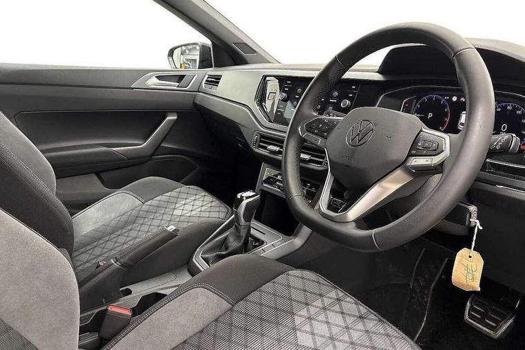 Adaptive cruise control with follow-to-stop and speed limiter, Advanced driver attention and drowsiness monitor, Bluetooth mobile phone interface, Digital Cockpit Pro with 10.25" Display, Dynamic road sign display, Emergency call service, Mobile phone preparation with inductive charging function, Multifunction camera, Power assisted speed sensitive steering, Preparation for We connect and We connect plus, Speedo and rev counter, electronic odometer, trip, service interval display and fuel gauge, Standard rear axle, Travel Assist - Lane keeping system and traffic jam assist, Travel assist including emergency assist, Trip computer, Warning signal and warning light for front and rear seatbelts not fastened, Washer fluid level indicator, Wireless app connect, Front wheel drive, Rear shock absorpion, Start-stop system with battery regeneration (recuperation - energy recovery during braking), DAB Digital radio, Diversity antenna for FM reception, Body colour bumpers, Body colour door handles, Electric front windows, Front scuff plates with R-Line logo, Heat insulating glass windscreen, Power folding adjustable/heated exterior mirrors and front passenger exterior mirror lowering function, Rear electric windows, Rear fog light, Rear side wing doors, Rear windscreen washer and wiper with interval delay, Third brake light, 12V power socket in centre console, 2 USB-C ports in the front, 2 USB-C charging sockets on the center console in the rear, 3 rear head restraints, 60/40 split folding rear seat and rear seat bench not split, Air care climatronic air conditoning system with active combination filter and 2-zone temperature control, Black roof lining, Carpet mats, front and rear, Chrome plated radiator grille inserts, air vent surrounds and light switch surrounds, Door and side trim panel, Driver and front passenger seat height adjustment, Driver/passenger sunvisors with illuminated vanity mirrors, Front centre armrest, Front footwell illumination, Front seat backrest storage pockets, Front sports comfort seats, Handbrake lever handle in leather, Headliner in recycled material, Isofix child seat preparation easy-fit (for two outer rear seats, and front passenger seat) compatible with I-size, Karoso artvelours cloth upholstery, Leather trimmed gear knob, LED interior light with switch off delay and dimmer, 2 reading lights front and rear, Luggage compartment cover, Luggage compartment floor, Luggage compartment lighting, Lumbar adjustment for front seats, Single front passenger seat, Stainless steel pedals, Standard pedal cluster, Three spoke leather wrapped multifunction steering wheel with shifting paddles, Light and sight pack - Polo R-Line/Black Edition, 3 point height adj front seatbelts + pretensioners, 3x3 point rear seatbelts, ABS, Driver and front passenger airbag with front passenger airbag deactivation, Drivers and front passengers safety optimised head restraints, ESC (Electronic stability control) + EDL (Electronic Differntial lock) and ASR (Traction control), Extended and predictive pedestrian/ cyclist protection, Front curtain and side airbags with center airbag, Front/rear disc brakes, Hill hold control, Manual child lock in rear doors, Single tone horn, Tyre pressure loss indicator, Alarm with interior protection, Anti-theft alarm system with interior monitoring, backup horn, and towing protection, Anti-theft wheel bolts, Electronic engine immobiliser, Chrome applications on rotary light, mirror adjustment, window regulator switches, outlet with frame in black, Dark grey anodised matt decorative inserts in dash and front door panels, 16" Coventry alloy wheels, Low rolling resistance tyres,