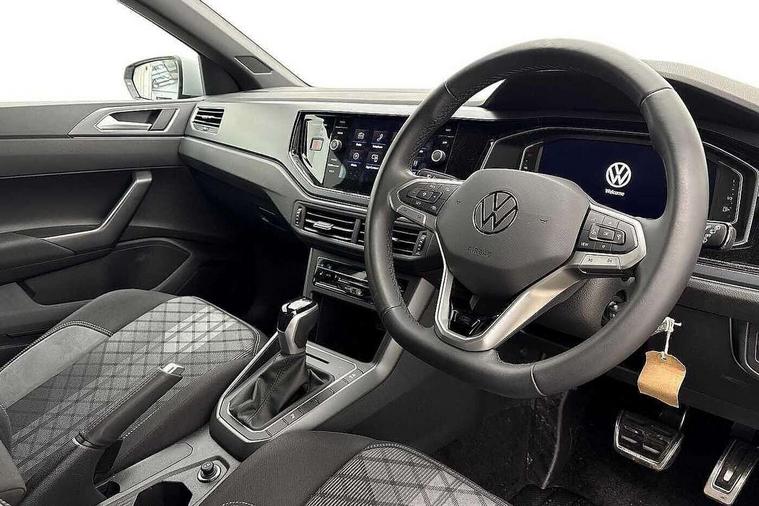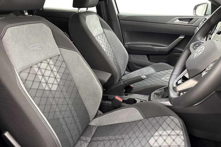 Adaptive cruise control with follow-to-stop and speed limiter, Advanced driver attention and drowsiness monitor, Bluetooth mobile phone interface, Digital Cockpit Pro with 10.25" Display, Dynamic road sign display, Emergency call service, Multifunction camera, Power assisted speed sensitive steering, Preparation for We connect and We connect plus, Speedo and rev counter, electronic odometer, trip, service interval display and fuel gauge, Standard rear axle, Travel Assist - Lane keeping system and traffic jam assist, Travel assist including emergency assist, Trip computer, Warning signal and warning light for front and rear seatbelts not fastened, Washer fluid level indicator, Wireless app connect, Front wheel drive, Rear shock absorpion, Start-stop system with battery regeneration (recuperation - energy recovery during braking), DAB Digital radio, Diversity antenna for FM reception, Front and rear 6 speakers, Body colour bumpers, Body colour door handles, Electric front windows, Front scuff plates with R-Line logo, Heat insulating glass windscreen, Power folding adjustable/heated exterior mirrors and front passenger exterior mirror lowering function, Rear electric windows, Rear fog light, Rear side wing doors, Rear windscreen washer and wiper with interval delay, Third brake light, 12V power socket in centre console, 2 USB-C ports in the front, 2 USB-C charging sockets on the center console in the rear, 3 rear head restraints, 60/40 split folding rear seat and rear seat bench not split, Air care climatronic air conditoning system with active combination filter and 2-zone temperature control, Black roof lining, Carpet mats, front and rear, Chrome plated radiator grille inserts, air vent surrounds and light switch surrounds, Door and side trim panel, Driver and front passenger seat height adjustment, Driver/passenger sunvisors with illuminated vanity mirrors, Front centre armrest, Front footwell illumination, Front seat backrest storage pockets, Front sports comfort seats, Handbrake lever handle in leather, Headliner in recycled material, Isofix child seat preparation easy-fit (for two outer rear seats, and front passenger seat) compatible with I-size, Karoso artvelours cloth upholstery, Leather trimmed gear knob, LED interior light with switch off delay and dimmer, 2 reading lights front and rear, Luggage compartment cover, Luggage compartment floor, Luggage compartment lighting, Lumbar adjustment for front seats, Single front passenger seat, Stainless steel pedals, Standard pedal cluster, Three spoke leather wrapped multifunction steering wheel with shifting paddles, Light and sight pack - Polo R-Line/Black Edition, 3 point height adj front seatbelts + pretensioners, 3x3 point rear seatbelts, ABS, Driver and front passenger airbag with front passenger airbag deactivation, Drivers and front passengers safety optimised head restraints, ESC (Electronic stability control) + EDL (Electronic Differntial lock) and ASR (Traction control), Extended and predictive pedestrian/ cyclist protection, Front curtain and side airbags with center airbag, Front/rear disc brakes, Hill hold control, Manual child lock in rear doors, Single tone horn, Tyre pressure loss indicator, Alarm with interior protection, Anti-theft alarm system with interior monitoring, backup horn, and towing protection, Anti-theft wheel bolts, Electronic engine immobiliser, Chrome applications on rotary light, mirror adjustment, window regulator switches, outlet with frame in black, Dark grey anodised matt decorative inserts in dash and front door panels, 16" Coventry alloy wheels, Low rolling resistance tyres,