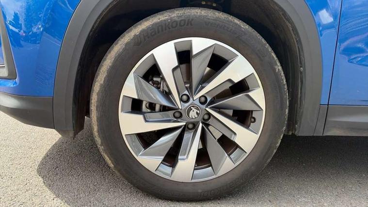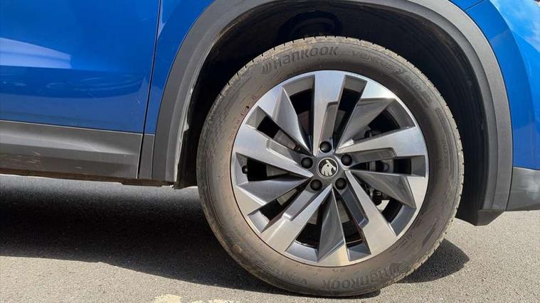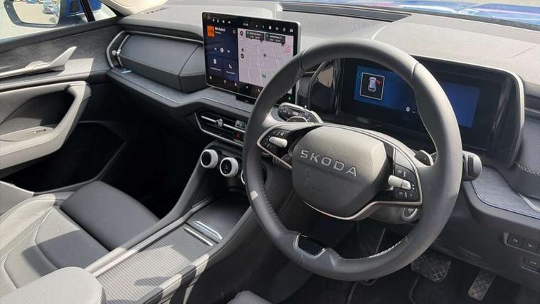 13" satellite navigation touchscreen display, Blind spot detection with door exit warning, Bluetooth system, ChatGPT functionality, Driver alert - Fatigue and drowsiness monitor, Dry display cleaner, Emergency call, Front and rear parking sensors, Front cross traffic assist, Lane assist, PAS, Rear traffic assist, Tailgate unlocking from outside, Traffic sign recognition, USB C Port x 2 in front centre console, Virtual Cockpit - 10.25" digital display, Voice control system, Wireless charging for two smartphones (15W) with cooling function, Wireless SmartLink for Apple CarPlay and Android Auto, Stop/start function, 2x USB-C in the rear, DAB Digital radio, Aero front windscreen wipers with intermittent function, Auto dimming rear view mirror, AWL (all weather lighting) and all weather light with cornering function, Black wheel arch surrounds, Body colour bumpers, Body colour door mirrors and handles, Cornering light and poor weather light, Electric folding /adjustable/separted heated/folding door mirrors, auto dimming with boarding sports and memory function, Electric front and rear windows, Exterior black decorative trims, Front grille with horizontal light strip, Heat insulating glass in windshield, Heated rear window, Ice scraper in fuel tank cap, Invisible tailpipe, LED daytime running lights, LED matrix headlights with AFS and LED fog lights, LED rear light with welcome effect and dynamic turn signals, LED third brake light in rear spoiler, Light assistant with automatic headlight control and coming home feature, Logo projection in door mirrors, Multiple matrix beam, Privacy glass, Rear roof spoiler, Rear side wing doors, Rear window wiper, Red decorative strip between rear LED lights, Safety reflectors on front and rear doors, Unique dark chrome design logo on alloy wheels, Window control switches with black trim, Windscreen wipers with rain sensor, Without engine designation, 1.5l bottle holder points in all door, 1x centre rear reading light, 2 seat bench in 3rd row, 2 spoke multi-function leather heated steering wheel with paddle shift, 3 configurable smart dials with 32mm coloured display, 3 seat bench in 2nd row, 4 foldable roof handles with rear coat hooks, Ambient interior lighting - Dashboard, front-door stowage compartments, front and rear door panels and footwell lighting, Automatic gear selector on steering column, Chrome interior door handles, Driver/front passenger reading lights, Fabric headlining, Fixed bench 40:60:40 split folding backrests, Front and rear floor mats, Front centre armrest with jumbo box storage compartment, cup holder and 12V socket, Height adjustable front headrests, Isofix child seat fittings in outer middle row rear seats and front passenger with top tether, Manually adjustable steering column, Pollen filter, Rear centre armrest with cupholders, Rear seat boot backrest release, Single front passenger seat, Skoda lettering on steering wheel, Storage pocket including mobile phone pockets on the backs of the front seats, Sunvisors with illuminated vanity mirrors, Three rear height adjustable headrests, Ticket holder on A Pillar, Tri zone climate control, Umbrella in door panel x1 made from sustainable materials, Upper and lower glovebox with card holder and coin compartment, USB C port by rear view mirror for charging only (15W), Exterior styling pack - Kodiaq, Auto door release and activation of warning lights in the event of an accident, Driver and front passenger airbag with knee airbag and front passenger airbag deactivation, Electric child locks, Electronic parking brake, ESC (incl. ABS+EMD+MSR+ASR+EDL+HBA+DSR+RBS+ESBS+MCB+TSA+XDS), Front assist with braking reaction to vehicles, pedestrians and cyclists, Front disc brakes, Fuel cut off safety device, Height adjustable front 3 point seatbelts + pretensioners, Hill hold assist, Junction assist with automatic emergency braking, Rear disc brakes, Safety vest holder in door, Seat belt reminder for all seats, Three point rear seat belts, Two tone horn, Tyre pressure monitor, Anti-theft wheel bolts, Immobiliser, Remote central locking with 2 keys,