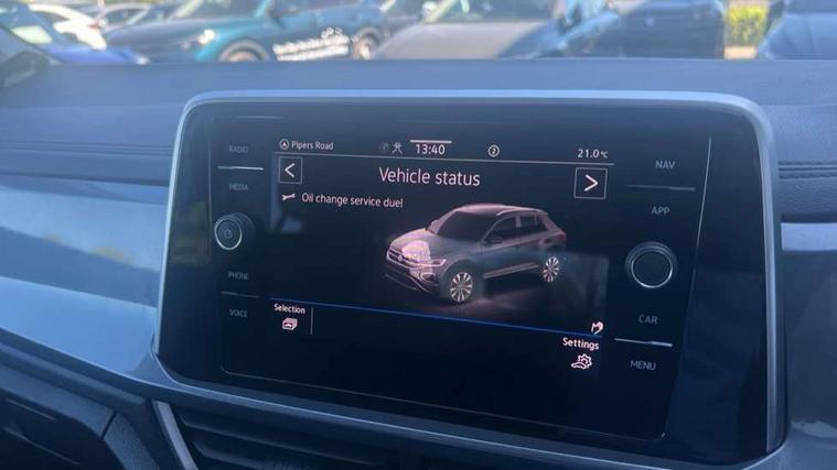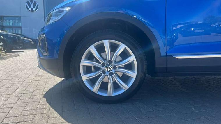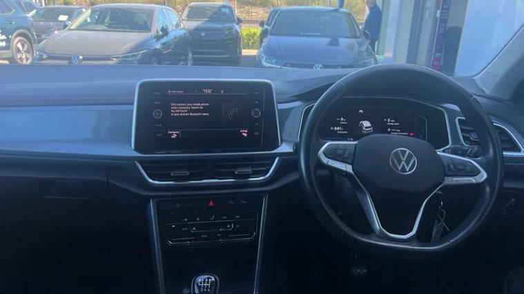 10.25" Digital cockpit pro, Bluetooth mobile phone interface, Driver alert system with fatigue detection, Driver tips and journey analysis, Emergency call service, Lane keeping system Lane Assist, Modified key software - reduce switch off time for key status change to Long no motion, Online services, Park assist including front and rear parking sensors, Service interval indicator, Tailgate/trunk lid release from outside, Think blue trainer driver tips and journey analysis, Warning sound and light for front seatbelts unfastened, Wireless app connect, Battery regeneration during braking, Start/stop function with battery regeneration, Diversity antenna for FM reception, Front and rear 6 speakers, Music playback - MP3, WMA and AAC files, Premium USB cable in choice of either Apple or Android smartphone compatibility, SD card slot, Simultaneous pairing of 2 compatible mobile devices, Title and cover art display, We Connect and We Connect Plus functionality, 3rd brake light, Auto dimming interior rear view mirror, Automatic hazard lights activation under emergency braking, Automatic headlight control with LED separate daytime running lights with coming/leaving home function, Body colour sports bumpers with silver metallic underbody fascia, Dynamic headlight range control with self adjusting whilst driving, Extended roof spoiler, Exterior mirrors aspherical on driver side, convex on front passenger side, External USB type C socket and charging sockets, Front windscreen wiper with intermittent wipe and 4 position delay, Heated rear window, LED Plus headlamps, LED rear combination lamps, LED rear number plate lights, LED tail lamp rear comination lamps, Light mode for poor weather, rain, fog or snow, Power windows with comfort operation and circuit breaker, Rain sensor, Rear exhaust tailpipe, Rear fog light on one side and reversing lights on both sides, Rear side wing doors, Rear wash/wipe with intermittent wipe setting, Remote electrically foldable door mirrors, puddle lights and reverse activated passenger's door mirror, 12V power socket in centre console, 3 rear head restraints, 3 seat bench in 2nd row, 4 load lashing points in luggage compartment, Air care climatronic air conditoning system with active combination filter and 2-zone temperature control, Chrome plated radiator grille inserts, air vent surrounds and light switch surrounds, Door and side trim panel with leatherette insert, Drawer under drivers seat, Front + rear carpet mats, Front centre armrest, Front comfort sports seats, Front cupholders x 2, Front footwell illumination, Instrument lighting, white adjustable panel illumination, Interior ambient lighting and surround lighting, Interior light delay, Isofix child seat preparation, Leather gearshift handle, LED interior light with switch off delay/dimmer and 2 front/rear LED reading lights, Load-through provision with cup holder when folded down ('Unsplit rear seat bench, split folding backrest, with centre armrest), Luggage compartment lighting, Non-folding front passenger seat backrest, Single front passenger seat, Storage compartment in left and right luggage area, Storage compartment in rear doors, Storage compartments in driver and front passenger doors, Sunvisors with illuminated vanity mirrors, Variable boot floor, height adjustable and removable, Driver assistance pack without proactive passenger protection - T-Roc, 3 point height adj front seatbelts + pretensioners, 3 point seatbelts in outer rear with ECE label, ABS, Child locks on rear doors, Driver and front passenger airbag with front passenger airbag deactivation, Driver and front passenger safety-optimised head restraints, Drivers seatbelt reminder, Electronic parking brake, Electronic Stability Control (ESC) inc EDL (Electronic Differential Lock) and ASR (Traction Control), Front and rear passengers curtain airbag system including front side airbags, Front assist with city emergency braking and pedestrian monitoring, Front seat side impact airbags, Predictive pedestrian protection, Rear disc brakes, Single tone horn, Tyre pressure loss indicator, Volkswagen roadside assistance, Alarm with interior protection, Anti-theft alarm system with interior monitoring, backup horn, and towing protection, Remote central locking with SAFELOCK, radio remote control with 2 remote control folding keys, Trims for alloy wheels,