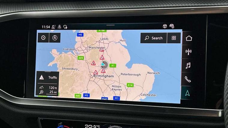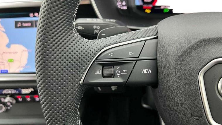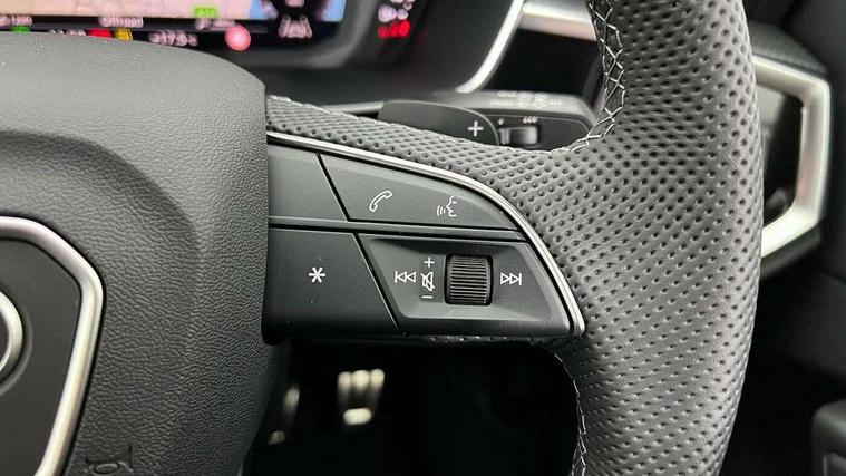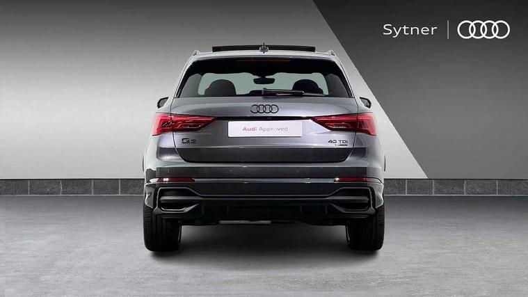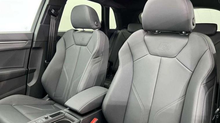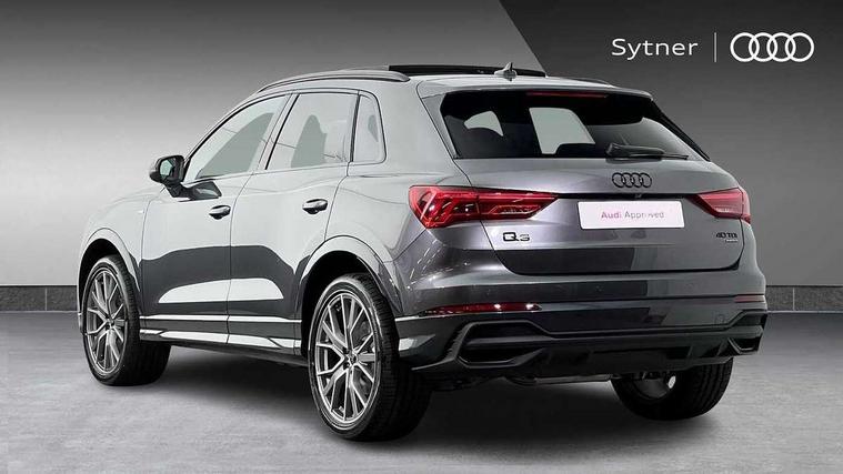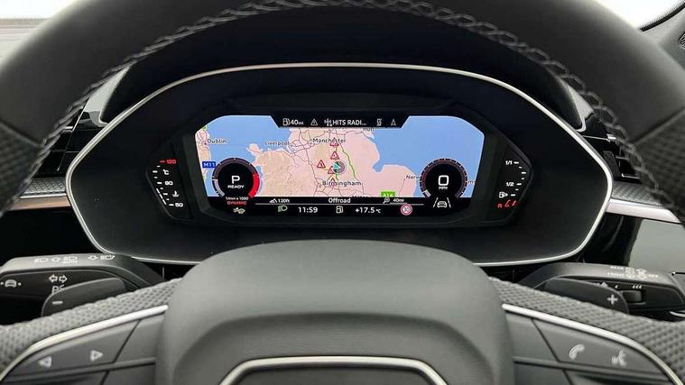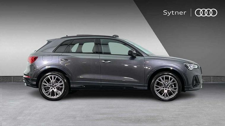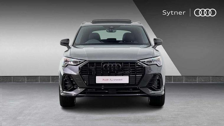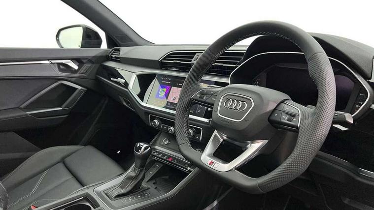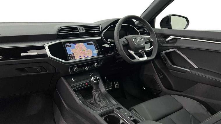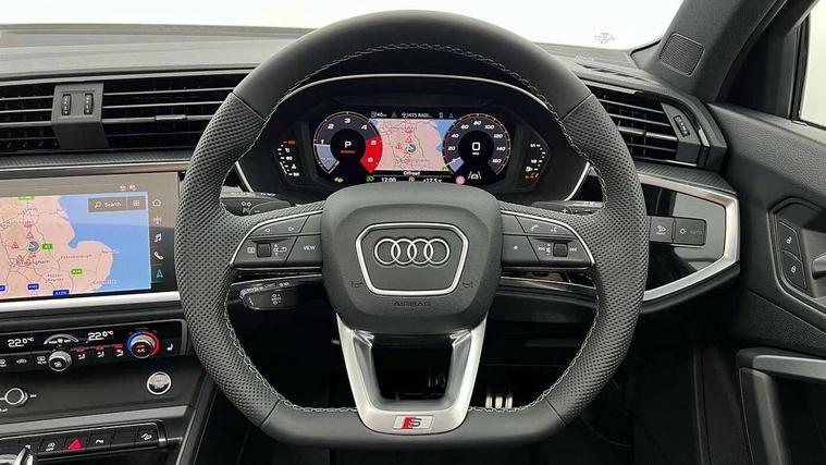 Amazon alexa Integration, Audi connect safety and service, Audi drive select, Audi lane departure warning, Audi Virtual Cockpit - 10.25" display, Bluetooth interface, Camera based traffic sign recognition, Distraction and Fatigue warning, Legal emergency call, MMI Navigation Plus with high resolution 10.1 inch touchscreen colour display, Power operated tailgate, Progressive steering, Service interval indicator, Smartphone interface includes wireless Apple carplay/Android Auto, Start stop system with recuperation, Voice control system with natural language interaction, Diesel particulate filter, Sports suspension, 2 USB-C ports with charge and data functions, 6 passive loudspeakers, DAB digital radio module, Acoustic windscreen, Anthracite black radiator grille, Audi Beam uses LEDs to project the Audi logo onto the ground as you exit your Q3, Auto dimming door mirrors, Auto dimming frameless rear view mirror, Black roof rails, Electrically folding, adjustable and heated door mirrors with integrated LED side indicators and kerb view function for passenger side, Front and rear electric windows, Front fog lights, Grille vertical bars in aluminium silver/Matt, High gloss black finish B and C pillars, LED Dynamic rear indicators, LED headlights with LED daytime running lights, LED rear lights, LED third brake light, Privacy glass dark tinted rear and rear-side windows (from B-pillar backwards), Rain and light sensors, Rear diffuser grille in grained matt black, Rear diffuser strip in matt anthracite black, Rear side wing doors, Rear wiper, S line bumpers in contrasting Manhattan grey, Variable front intermittent wipers, 12V socket in rear centre console, 3 seat bench in 2nd row, 40:20:40 folding with manual adjustment for 60:40 forwards/backwards position and backrest angle, Adjustable rear seat bench/backrest with centre armrest and cupholder, Black carpet mats, Black cloth headlining, Dual zone electronic climate control, Electric lumbar support, Front and rear black floor mats with contrast stitching in rock grey, Front and rear headrests, Front centre armrest, Height and reach adjustable steering wheel, Illuminated door sill trims with S logo, ISOFIX child seat mounting for front passenger with airbag deactivation and outer rear seat including top tether attachment point for outer rear seats, Luggage compartment sill protection in stainless steel, Manual front seats with height adjustment, Perforated leather gearknob, Single front passenger seat, Stainless steel pedals, Twin leather upholstery with front sport seats + S embossing, Black styling pack - Q3, Non smoking pack - Q3, 3x3 point rear seatbelts, 6 airbags - Driver, front passenger, curtain and side windows, Audi pre-sense front with pedestrain and cyclist recognition, Electrically operated child locks on rear doors, Electromechanical parking brake, Electronic stabilisation control including ABS, ASR and EDL, Front seatbelt reminder, Hill descent control, Hill hold assist, Pre sense basic, Seatbelt monitoring, Tyre pressure warning, Warning triangle and first aid kit, Anti theft wheel bolts, Immobiliser, Remote central locking, Thatcham approved category 1 anti theft alarm, Aluminium look interior elements, Detail dashboard around MMI touch colour display in glass look, black with surround in aluminium look, Leatherette door armrest, Piano black inlay,