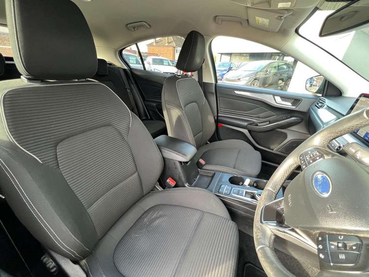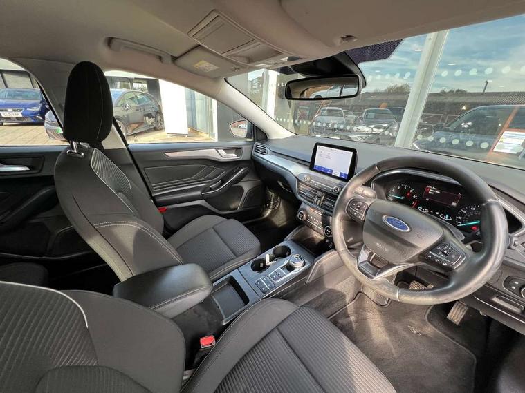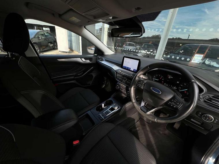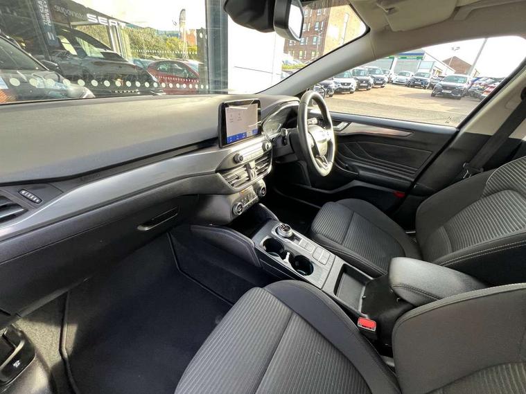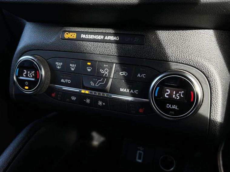 Bluetooth system, Digital clock, Easy fuel capless refuelling system, Eco mode, Ford pass connect, Ford SYNC 3 nav system with DAB radio, 8" colour touch screen, voice control, app link, Apple car play/Android auto and 4.2" TFT coloured cluster, Front and rear parking sensors, Intelligent speed assist, PAS, Rotary gear shift dial, Selectable drive mode, Trip computer, 2 USB ports, Aux input, 'Quickclear' heated windscreen/heated washer jets, Auto dimming rear view mirror, Auto headlamps (on/off), Automatic rain sensing wipers, Body coloured bumpers, Body coloured door handles, Body coloured electrically operated and heated door mirrors with side indicators, Electrically operated front and rear windows with one touch opening and closing, Front fog lamps with cornering function, Front variable intermittent wipers with electric wash, Halogen reflector headlamps, Heated rear window, LED daytime running lamp, LED rear lamps, Power folding door mirrors with puddle lights, Tailgate wash/wipe, Upper grille with chrome surround and horizontal bars, 3 spoke leather trimmed steering wheel with integrated audio controls, 60/40 split back and cushion rear seats with 2 height adjustable headrests, Ambient lighting, Centre console with sliding front armrest, Cloth upholstery, Dual zone electronic air temperature control, Front/rear floor mats, Heated front seats, Height adjustable front headrests, Isofix child seat preparation, Paddle shift controls, Reach + rake adjustable steering column, Rear centre headrest, ABS+Electronic Brake force Distribution, Auto hold function, Driver airbag, Electronic parking brake, Electronic stability control, Front and rear seatbelt reminder, Front inertia reel height adjustable seatbelts with pre-tensioners, Front passenger airbag, Front side airbags, Hill start assist, Passenger airbag deactivate switch, Post collision braking, Pre collision assist with autonomous emergency braking and pedestrian/cyclist detection, Side curtain airbags, Three rear inertia reel lap/diagonal seatbelts, Tyre pressure monitoring system, Ford keyfree system with Keyless entry and keyless start, MyKey system, Remote central locking & engine immobiliser, Thatcham category 1 alarm, 16" 15 spoke sparkle silver alloy wheels, Mini steel spare wheel,