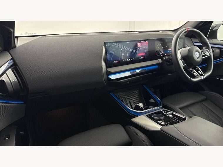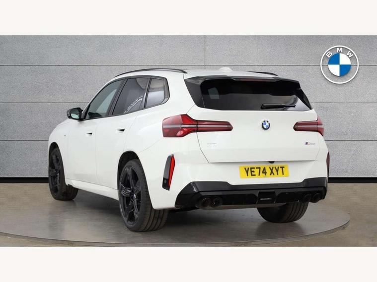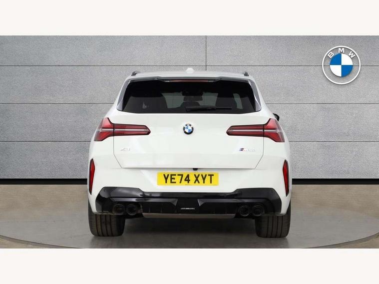 Active guard professional, Attentiveness assist, Automatic operation of tailgate, BMW ConnectedDrive online services, BMW iDrive, BMW Online services, BMW Teleservices, Brake pad wear indicator, Condition based service, Cruise control with brake function + speed limiter, Drive off assistant, Driving Assistant Plus Preparation, Flat tyre monitor, Language version English, My Mode - Personal, Efficient, Sport, Relax, Expressive, Reversing assist camera, Servotronic system, Variable sport steering, Dynamic stability control, Multiple control arm rear axle, Steptronic transmission with gearshift paddles, Two-joint strut-type front axle with tension strut, DAB tuner, Personal eSim, 4 tailpipe tips, Adaptive LED Headlights, B-pillar trim panel in black high-gloss, BMW badge on front and rear, BMW M-specific front/rear bumpers and side sills, BMW M-specific radiator grille with horizontal bars in Dark Silver and M logo, Daytime running lights, Door handles flush to the surface with lock barrel on driver's side is illuminated and in vehicle colour, Dynamic brake lights, Electric adjustable and heated door mirrors, Electric window trap release and convenient opening/closing feature, Headlight beam throw control, Heated rear window, Heated windscreen washer jets, High beam assistant, LED 3rd brake light, LED rear lights, LED tail lights, Locking of the doors, M-specific Exterior mirrors, Mirror base and mirror blade in black high-gloss, Mirror triangle in black high-gloss, Rain sensor with automatic headlight activation, Rear side wing doors, Rear wiper, Reversing light, Side window frame in black high-gloss, Sun protection glass, Windscreen wipers, 12v power socket in front centre console and luggage compartment, 2 x USB Type C ports for charging and data transmission (front centre console) and 2 x USB Type C ports for charging (rear centre console), 3 rear headrests, 3 seat bench in 2nd row, 3 zone automatic air conditioning, 40:20:40 split folding rear seat with loading system, Ambient lighting, Anthracite headlining, Electric adjustable seats with memory function, Floor mats in velour, Footrest and pedals in black plastic, Four grab handles integrated in roof lining, Front armrest with integrated control panel, Front centre console trim in black high-gloss, Front head restraints, Front passenger seat, Front sports seats, Glove compartment, i-Size / ISOFIX attachment points on both outer rear seats, with covers in black, Luggage compartment separating net, M sport leather steering wheel, Multifunction steering wheel, Rear side armrests integrated into door trim, Selector lever with toggle operation, Steering column adjustment, Sun visors with illuminated vanity mirrors, Three upper retaining strap clips integrated into the rear panels of the seat backrests, Through loading system, Two front cupholders and two in the rear center armrest, Wireless charging tray, BMW Iconic Glow exterior package - X3, Connected pro package - X3, Interior and exterior mirror package - X3, M Sport pro pack - X3, 3 point seatbelts, Airbag deployment is controlled with respect to the intensity and scope, Anti-lock braking system (ABS), Automatic hold function, BMW emergency call, Brake assist, Brake drying, Brake energy regeneration, Braking readiness, Central airbag, Child locks on rear doors, Cornering brake control (CBC), Crash Sensor - activation of central locking release, hazard warning light and interior lighting, Driver and front passenger front and side airbags, Dynamic brake control, Electromechanical parking brake, Front and rear disc brakes, Head airbags, Integrated braking system, M sport seatbelt, Post Crash Collision Warning with braking function, Trailer stability control, Tyre pressure sensor, Warning triangle, Alarm system, Closing system with central locking, Comfort access system, Locking wheel bolts, Start/stop button with keyless motor start with acoustic drive, Tyre repair kit,