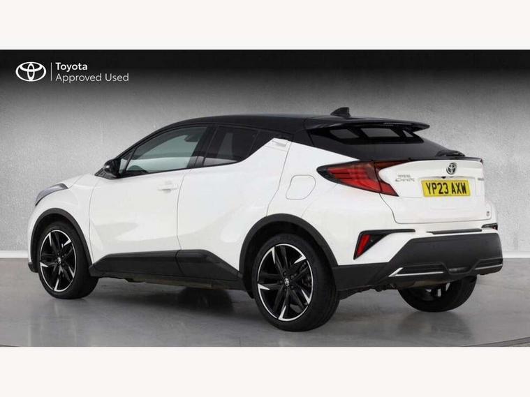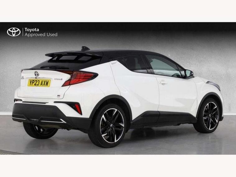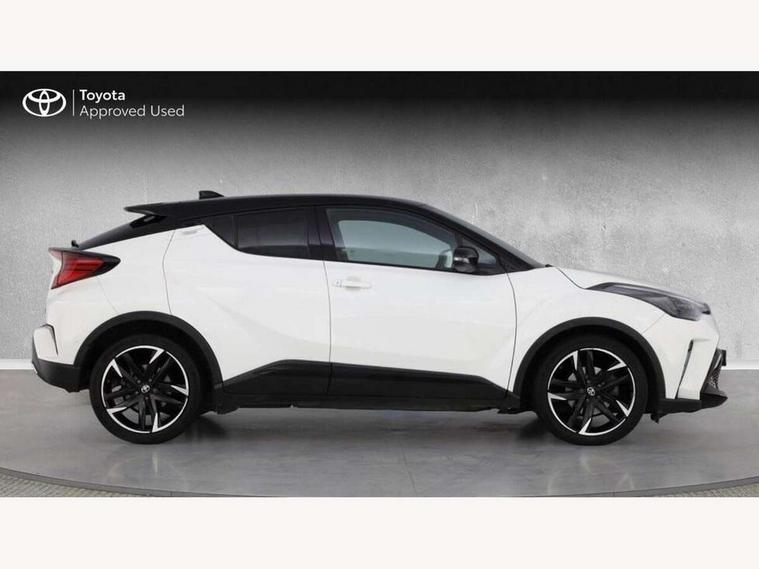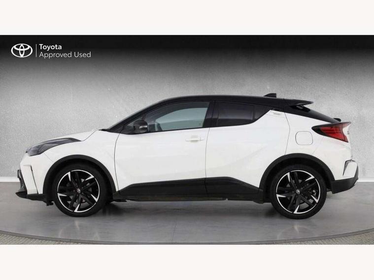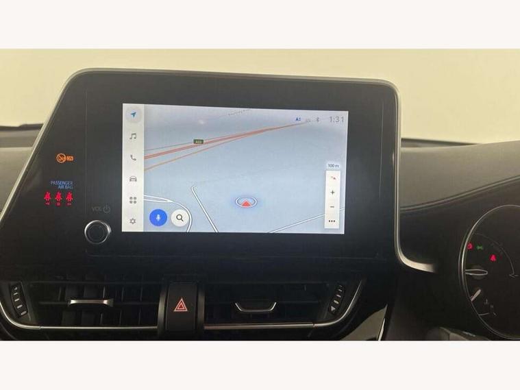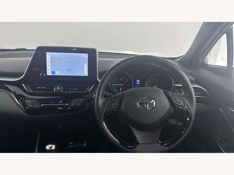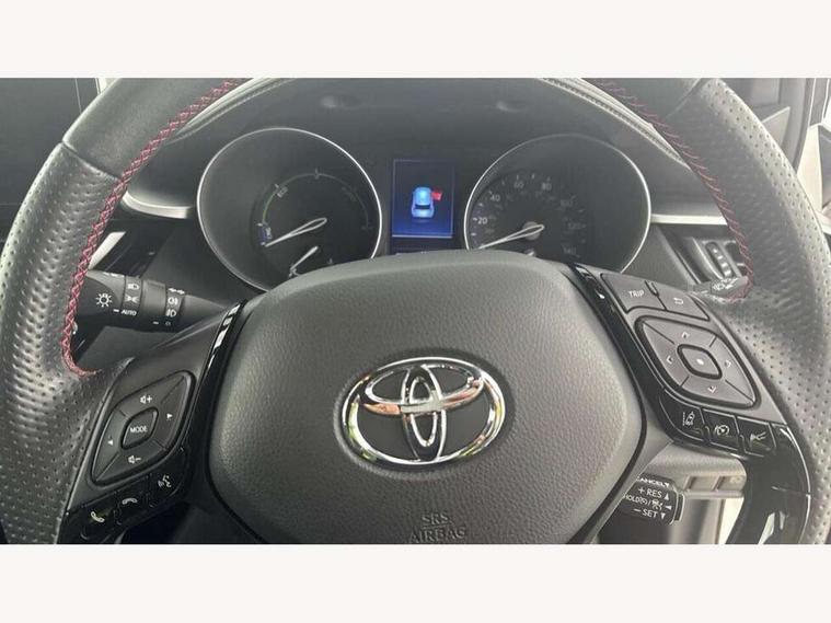 4.2" coloured TFT screen for multi-information display, Adaptive cruise control, Apple car play and Android auto, Bluetooth connectivity, E-call, Electric power steering, Hybrid system indicator, Lane departure alert with steering control, Lane trace assist, Push button tailgate release, Remote boot door release in cabin, Remote boot door release in key, Reversing camera, Road sign assist - RSA, Simple Intelligent parking assist, Smart voice assist, Touch 2 Go navigation system, Trip computer, Voice recognition, Wireless smartphone integration, Vehicle Stability Control (VSC), 6 speakers, AM/FM radio, DAB Radio (Digital Audio Broadcasting), Toyota touch 2 multimedia system with 8" display, USB connector, Wi-fi connectivity, Adaptive front light system, Adaptive LED Headlights, Anti-jam protection on power windows, Auto high beam, Auto up and down function on all power windows, Automatic headlight levelling, Automatic headlights, Automatic headlights cut-off, Black and body coloured rear bumper, Black upper front grille, Body colour door handles, Body colour door mirrors, Body coloured front bumper, Boot door release with push button, Chrome front lower bumper, Electric heated door mirrors, Follow me home headlights, Front and rear power windows, Front spoiler lip in black, Headlight cut off reminder, Honeycomb lower front grille, LED daytime running lights, LED fog lights, LED front light guide, LED High mounted stop light, LED rear brake lights, LED rear combination lights, Noise reduction layer on front windows and windscreen, Power adjustable door mirrors, Privacy glass, Rain sensor, Rear sequential indicators, Rear side wing doors, Rear spoiler, Rear tailgate, Rear window defogger, Rear window wiper, Shark fin antenna, UV-filter on driver and passenger windows, UV-filter on rear windows, Variable front intermittent wipers, 12v power outlet - front, 3 rear headrests, 3 seat bench in 2nd row, 3 spoke perforated leather steering wheel, 60/40 split folding 2nd row rear seats, Adjustable rear headrests, Adjustable speed limiter switch on steering wheel, Assist grips front and centre pillar, Audio and telephone switches on steering wheel, Black front door assist grips, Blue ambient lighting on front cup holders, Blue ambient lighting on front doors, Boot light, Chrome interior door handles, Cloth upholstery, Driver and front passenger personal light, Driver and front passenger Whiplash Injury Lessening seats, Driver and passenger seatback pockets, Dual zone automatic air conditioning, Floor mats, Front cupholders, Front head restraints, Front sports seats, Glovebox with internal light, Hard tonneau cover, Heated driver and front passenger seats, Hooks for luggage holding net, Humidifying Nanoe air purifier, Illuminated entry system, Isofix attachments on outer rear seats, Leather gearshift, Light on driver sun visor, Light on passenger sun visor, Manual telescopic steering wheel, Manual tilt steering wheel, Manually height adjustable driver seat, Manually height adjustable front passenger seat, Manually reclining driver seat, Manually reclining front passenger seat, Manually sliding driver seat, Manually sliding front passenger seat, Microphone on front personal light, Mirror on driver sun visor, Mirror on passenger sun visor, Multimedia switches on steering wheel, Pollen filter, Power adjustable lumbar support on driver seat, Shopping bag hooks, Single front passenger seat, Slow opening on lower glovebox, Voice recognition switch on steering wheel, Tech with parking sensor pack - C-HR, 16 Disk front wheel brake, 3x3 point rear seatbelts, ABS+EBD+Brake assist, Electronic parking brake, Front and rear seatbelt reminder, Front passenger airbag on/off switch, Hill start assist control (HAC), Pre collision system with pedestrian detection, Pre-tensioners and force limiters, Rear door child safety locks, SRS Airbags - Driver + Front passenger, front side, front and rear curtain and driver's knee airbags, Toyota safety sense, Tyre pressure monitoring system, Tyre pressure warning system, Acoustic vehicle alert system (AVAS), Glass-breaking alarm sensors, Immobiliser, Intrusion alarm, Intrusion sensor, Motion sensor alarm, Power door locks, Power passenger window lock, Remote central locking, Black lower dashboard, Black upper dashboard, Piano black console, Silver deco line on upper dashboard, 19" Black machined alloy wheels, Tyre repair kit,