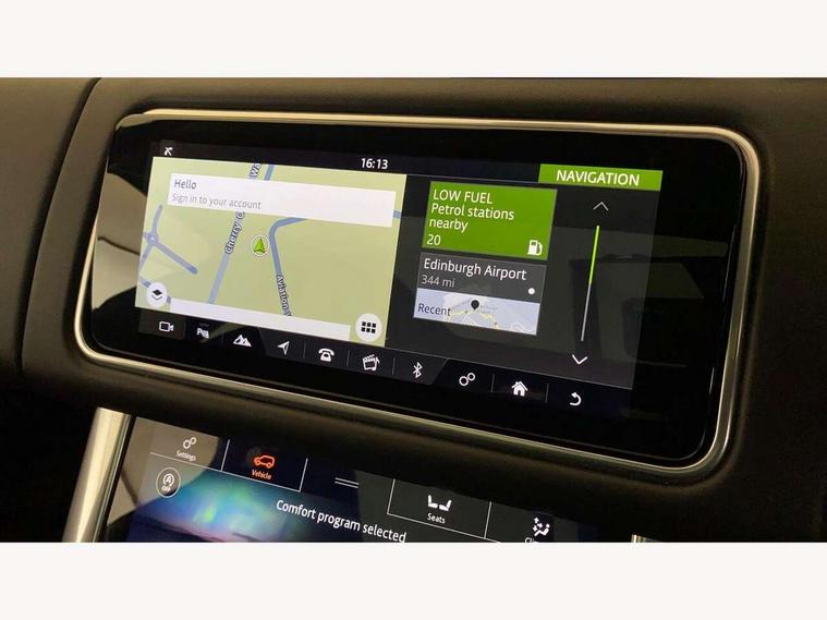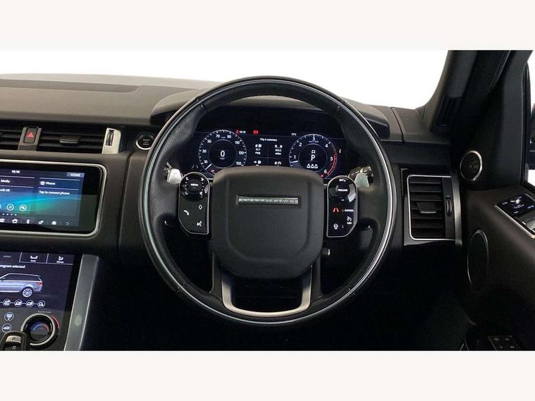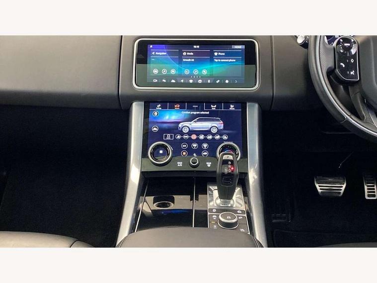 All Terrain Info Centre, Android Auto, Apple car play, Bluetooth connectivity, Electric power assisted steering (EPAS), Incontrol apps in vehicle touchscreen, Interactive Driver display instrument cluster, Mist sensor, Navigation pro system with 10" touch screen, app interface and media storage, Pro services and wifi hotspot, Push button start, Remote premium - Upgraded Incontrol remote app including remote climate control (engine dependent), remote lock + Unlock and remote beep + flash, TFT Virtual Instrument Panel, Touch pro duo system, Trip computer, Adaptive dynamics, All terrain progress control, Electronic active differential with brake torque vectoring, Electronic air suspension with dynamic response (active roll control), Gradient release control (GRC), Terrain Response 2 with dynamic program, Twin speed transfer box, Bluetooth audio streaming, DAB Radio (Digital Audio Broadcasting), Incontrol protect - SOS emergency call with automatic collision detection, optimised assistance call and Incontrol remote app essential, USB/aux input socket, Acoustic front and toughened rear side glass, Acoustic laminated front windows, Adaptive brake lights, Auto dimming interior rear view mirror, Automatic headlights, Body coloured side sills and bumpers corners, Centre high mounted stop light, Electric windows with one touch open/close and anti trap, Electrical towing preparation, Engine cover, Follow me home lighting, Front and rear recovery eyes, Front fog lights, Headlight power wash, Heated rear window, Heated windscreen includes heated washer jets, Illuminated metal treadplates with brand name script, LED rear lamps, Privacy glass (Tinted glass rear of B pillar), Rain sensing windscreen wipers, Rear fog lights, Rear side wing doors, Rear wash/wipe, Remote window closing, Side repeater indicators in mirror, Sport Badge in black, Standard bonnet, Trailer stability assist, Twin bright tailpipes, 2 way active front head restraints, 2 way rear head restraints, 3 seat bench in 2nd row, Automatic air recirculation system, Bright metal foot pedals, Centre console with armrest, Climate control memory, Customer configurable single point entry, Driver's footrest, Extended leather upgrade includes door top rolls and leather instrument panel mid section, Front and rear cupholders, Front door storage space, Front map lights, Front seat back map pockets, Front stowage pocket, Front/rear passenger grab handles, Heated steering wheel, Isofix child seat preparation, Leather steering wheel with Atlas inserts, Loadspace light, Loadspace mounting provisions, Lockable glovebox, Multifunction steering wheel, Perforated Windsor leather upholstery, Pollen filter, Power socket, Reach/rake electric adjustable steering column + entry/exit tilt away, Rear centre armrest, Rear ISOFIX, Roller blind loadspace cover, Satin chrome gearshift paddles, Single front passenger seat, Sports pedals, Three 12V accessory power outlets, Black Exterior pack - Range Rover Sport Dynamic, Smartphone pack - Range Rover Sport, 3 point seatbelts on all seats, Anti-lock braking system (ABS), Brake pre-fill technology, Cornering brake control (CBC), Curtain airbags, Customer configurable autolock, DSC - Dynamic Stability Control, Dual stage driver/passenger airbags, EBD - Electronic brakeforce distribution, Electric parking brake, Electronic traction control, Emergency braking includes city, urban AEB and pedestrian, Front seatbelt pretensioners, Gradient acceleration control, Grey anodised brake calipers, Height adjustable front seatbelts, Hill descent control, Hill launch assist, Low traction launch, Passenger seat occupant detector with front airbags, Power operated child locks, Roll stability control, Seatbelt warning, TPMS (Tyre pressure monitoring system), Immobiliser, Intrusion sensor, Keyless entry, Locking wheel nuts, Perimetric and volumetric anti theft alarm, Remote locking, Grand black veneer,