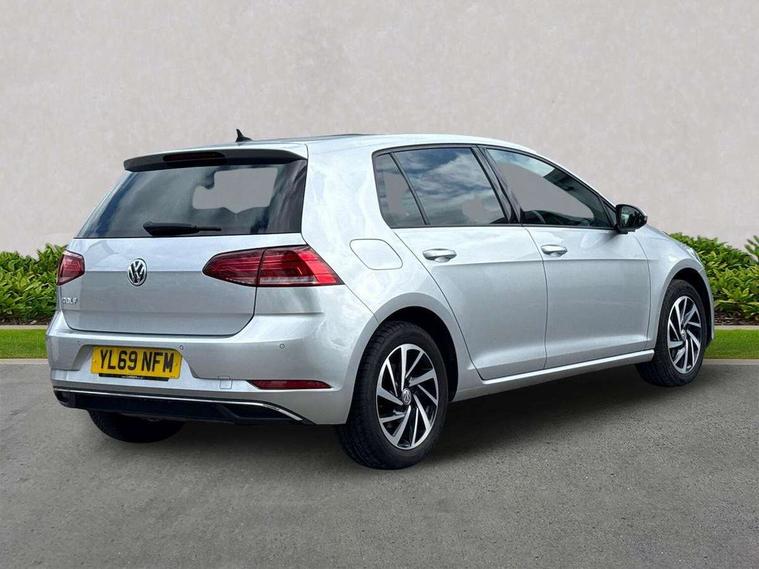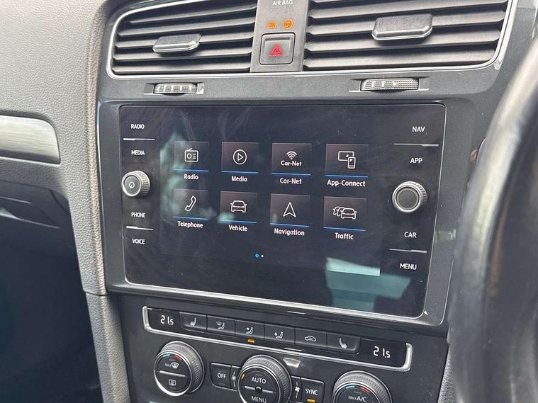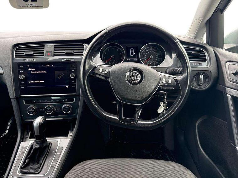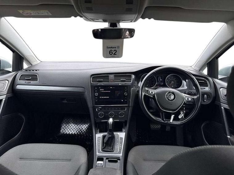 Brushed dark silver decorative inserts in dash and door panels, Chrome plated air vent surround, Chrome-plated light switch surround, Polar night black decorative inserts in centre console, Convenience Pack - Golf, Mirror pack - Golf, Winter pack - Golf, Steel space saver spare wheel, Alarm with interior protection and deactivation via infotainment system, Electronic engine immobiliser, Composition media system, DAB Digital radio receiver, Driver Personalisation profile selection, MP3/WMA compatability, Multi device interface (MDI) via USB connection, Premium USB cable in choice of either Apple or Android smartphone compatibility, SMS Functionality, Title and cover art display, USB and SD card connectivity, Volkswagen media control, 3 rear three point seatbelts, Airbags - Driver's and front passenger's, curtain airbag, Driver's knee, front side impact and passenger's airbag deactivation switch, Anti-lock Braking System (ABS) with Hydraulic Brake Assist (HBA), Automatic post collision braking system, Child locks on rear doors, Driver/Passenger optimised head restraints, Electronic parking brake with auto hold, Electronic stability control (ESC) including Electronic differential lock (EDL) and ASR (Traction control) with deactivation via infotainment system, Front ventilated disc brakes and rear disc brakes, Pre crash preventive occupant protection, Three point height adjustable front seatbelts with tensioners, Tyre pressure loss indicator, Black front air intake and radiator grille with chrome insert, Black rear diffuser, Body colour bumpers, Body colour door handles, Body colour door mirrors with integrated indicators, Dusk sensor + automatic driving lights, Electric front windows, Electric rear windows, Electrically adjustable and heated door mirrors, Fully galvanised body, Heated rear windscreen, High level 3rd brake light incorporating LED Technology, LED front fog lights with static cornering light function, Range adjustable headlights via infotainment system with LED daytime running lights, Rear fog lamp, Rear number plate lights incorporating LED technology, Rear tinted glass 65% light absorbing from B pillar backwards, Rear window aerial, Rear window wash/wipe with intermittent wipe, Reflectors in all doors, Tailgate with integrated rear roof spoiler, Windscreen wipers/ intermittent wipe + 4 position delay, 12V socket in luggage compartment, 3 rear headrests, 4 load lashing points in luggage compartment, 60/40 split folding rear seat backrest, Bag hook in luggage compartment x 2, Climate control - 2 zone electronic air conditioning with automatic air recirculation and allergy filter, Cooled glovebox, Cover for storage compartment in centre, Dust/pollen filter, Front and rear reading lights X 2, Front centre armrest with storage compartment and two rear air vents, Front seat back storage pockets, Grab handles front x 2, rear x 2 with integrated coat hooks, Height and reach adjustable steering wheel, Illuminated vanity mirrors, Instrument lighting white adjustable panel illumination, Interior light delay, Isofix preparation for 2 rear child seats, Load through provision with rear centre armrest and cupholders x2, Luggage compartment lighting, Overhead storage box, Pearl grey headlining, Storage box in luggage compartment, Storage compartment in roof console with cover, Storage compartments in centre console, Storage compartments in front doors, Storage compartments in rear doors, Stowable luggage compartment cover, Sun visors, Variable boot floor, height adjustable and removable, 'Lights On' Reminder warning buzzer, ACC - Adaptive cruise control with front assist, forward collision warning, distance monitoring, city emergency brake and speed limiter, Bluetooth telephone and audio connection for compatible devices, Brake pad wear indicator warning light, Driver alert system, Driving Mode Selection with four preset modes - Eco, normal, sport or individual modes, Multifunction computer with visual gear change recommendation for fuel consumption, Power assisted speed sensitive electro-mechanical steering, Push tank flap, Speed limit display, Speedo, rev counter, electronic odometer, trip, service interval display, exterior temperature and fuel gauge, Stop/start system, Think blue trainer driver tips and journey analysis, Warning buzzer and light for front seatbelts unfastened, Battery regeneration during braking, XDS electronic differential lock,