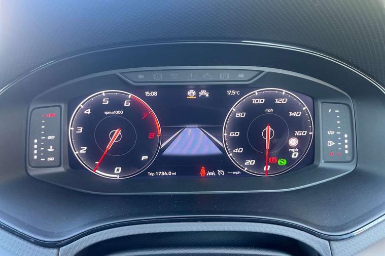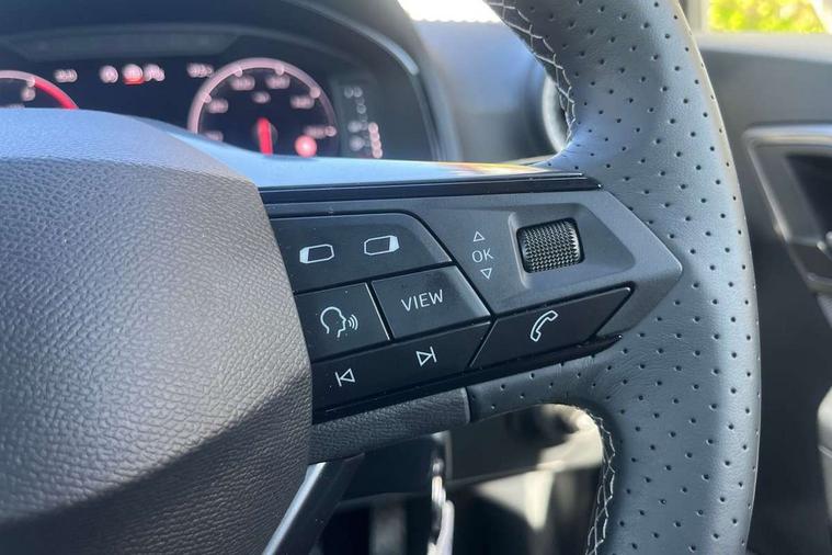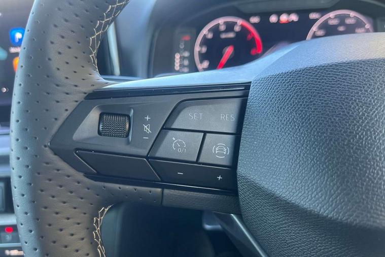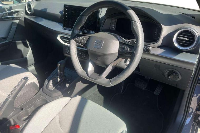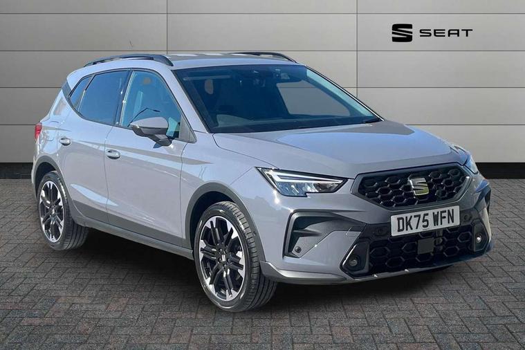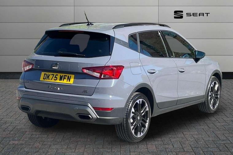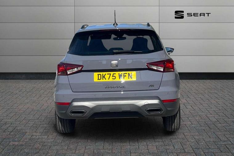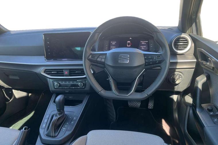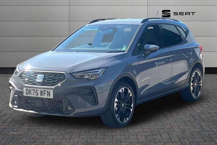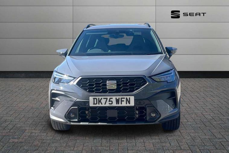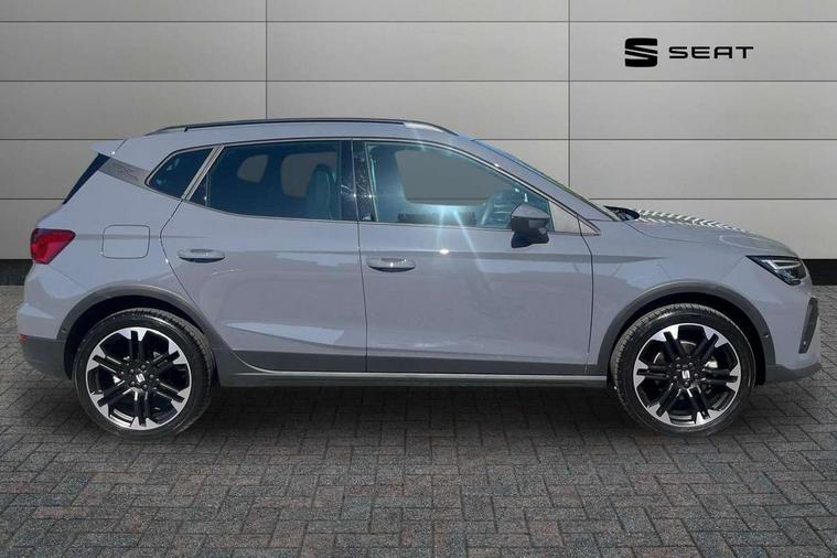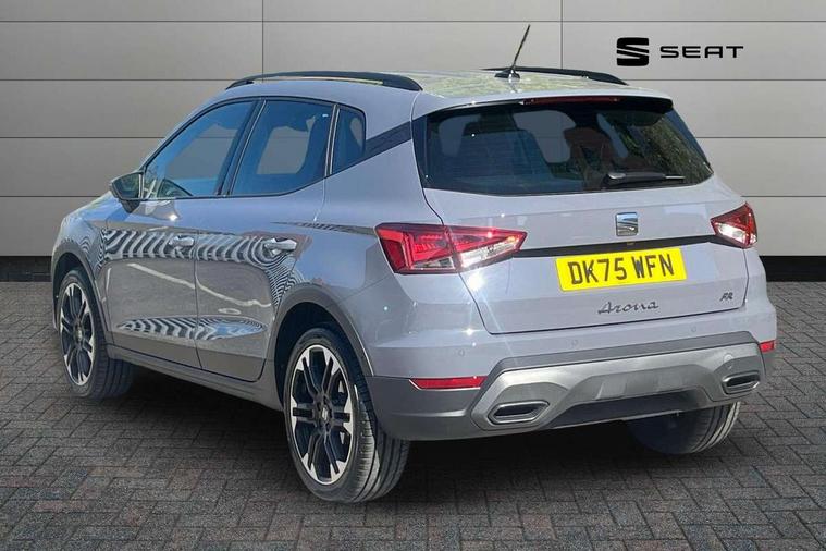 'Lights On' Reminder warning buzzer, 10" Digital cockpit, Digital clock, E-call, Electric speed sensitive power steering, Front parking sensors, Full link smartphone integration with mirror link, wireless apple carplay, Google android auto + USB Type C cable for apple and android devices, Low fuel warning light, Outside temperature display, Rear view camera, RPM counter, SEAT Drive profile - Four different models normal-sport-eco-individual, steering response, throttle response and gear shifts mode, Trip computer, Wireless phone charger, 9.2" colour touchscreen with navigation system, voice control and USB port (type c), Bluetooth interface for hands free and audio streaming, DAB digital radio and AM/FM radio, Steering wheel mounted audio controls, Anti theft roof antenna, Auto dimming interior rear view mirror, Automatic activation of hazard warning lights, Black roof rails and window surrounds, Body coloured bumpers, Body coloured door handle inserts, Dark tinted rear windows, Electric front/rear windows, Electrically adjustable, heated and folding door mirrors, Front fog lights with cornering function and rear fog light, LED 3rd brake light, LED daytime running lights, LED rear tail lights and licence plate lights, Protective side mouldings, Rain sensing wipers, Rear side wing doors, Rear spoiler, Rear window wash/wipe, Roof colour door mirrors, SEAT design Full LED automatic headlamps with dynamic headlight range control, coming and leaving home feature, Twin exhaust pipe styling with double flow exhaust pipe, Visible VIN plate, 2 cupholders, 3 seat bench in 2nd row, 60/40 split folding rear seat, Aircare filter, Black headliner, Cloth upholstery with embossed textile/Sport bucket seats, Double boot floor, Driver sunvisor with covered mirror + card holder, Dual zone climate control, Front courtesy light with front reading lights, Front seat back storage pockets, Heated front seats, Height adjustable front seats, Height/reach adjustable steering column, Illuminated air vent surrounds, Interior ambient lighting, Interior light in footwell, central console and door panel, ISOFIX points in outer rear seats with top tether anchorage points, Passenger sunvisor with vanity mirror, Perforated flat bottomed leather steering wheel/gear knob/handbrake with red stitching and FR logo, Red coloured interior air vents, Single front passenger seat, Steering wheel mounted gearshift paddles, Two front and three rear height adjustable headrests, Interior chrome pack - Arona, Safe and driving pack (S) - Arona, Storage pack - Arona, 3 point seatbelts on all rear seats, ABS, Active front headrests, Child locks on rear doors, Driver and front passenger airbags with front passenger airbag de activation, front side and curtain airbags, Emergency Brake Assist (EBA) and front assist, Front and rear seatbelt reminder, Hill hold control, Multi-Collision braking, Tiredness recognition system, Traction control, Tyre pressure monitoring system, Anti-theft alarm (perimeter and interior monitoring) with backup horn and towing protection, Central locking with radio remote control, interior controls and SAFELOCK, Deadlock, Electronic engine immobiliser, KESSY Keyless entry and go, Locking wheel bolts, 18" Performance machined alloy wheels in black,
