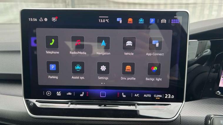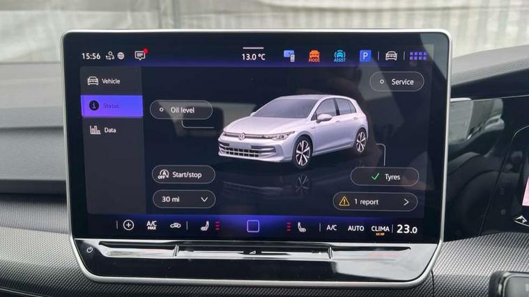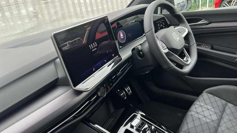 Activated carbon canister, Adaptive cruise control (ACC), Advanced driver attention and drowsiness monitor, Dynamic road sign display, Dynamic steering, E-Sim card for online connectivity, eCall emergency call system, Multi-color Digital cockpit pro, selection of different info profile possible, Multifunction front facing camera for distance control, Navigation system, Oncoming vehicle braking when turning including swerve support, Speed limiter, Speedo, rev counter, electronic odometer, trip, service interval display, exterior temperature and fuel gauge, Traffic jam assist, Voice enhancer and voice control, Warning signal and warning light for front and rear seatbelts not fastened, We connect plus preparation, We connect preparation, Wireless app connect, Hybrid propulsion system, Petrol Particulate Filter, Start-stop system with battery regeneration (recuperation - energy recovery during braking), XDS electronic differential lock for improved traction and handling, 2 USB C ports in front, 2 USB charging sockets on the centre console in the rear charging capacity upto 45W, Digital radio reception (DAB), Diversity antenna for FM reception, Gaming platform via car app, Infotainment system with 12.9" display, Mobile phone interface with inductive charging feature, 3rd brake light, Auto dimming rear view mirror, Automatic headlamp activation with Coming home and Leaving home feature, Body colored bumpers in R-Line style, Body colour door handles, Exterior ambient lighting, Exterior mirrors convex on the left and aspherical on the right, Front and rear electric windows, Heat insulating windshield made of laminated glass, LED separate daytime running light, Rain sensor, Rear exhaust tailpipe, Rear fog light on one side and reversing lights on both sides, Rear side wing doors, Rear windscreen washer and wiper with interval delay, Remote electrically foldable door mirrors, puddle lights and reverse activated passenger's door mirror, Volkswagen logo in front, illuminated lighting animation with wake up/goodbye scenario and illuminated door handles, Welcome light with surround lighting, 12V socket in front centre console, 12V socket in luggage compartment, 3 rear head restraints, 3 seat bench in 2nd row, Ambient lighting with 30 colour including LED light unit in front footwell with selectable light colour, Black roof lining, Brushed stainless steel pedals, Chrome plated radiator grille inserts, air vent surrounds and light switch surrounds, Door insert, side trim panel and arm support in leatherette, Front + rear black carpet mats, Front centre armrest, Front seat lumbar support adjuster, Integrated front head restraints, ISOFIX anchors for child seats on outer rear bench seats and on front passanger seat compatible for i-Size, Luggage compartment lighting, Manual height adjustable front passenger seat, Manually height adjustable driver seat, Plastic gear knob, Premium sports seats in front, Rear cupholder and loadthough, Sardegna cloth upholstery with front and outer rear seats Art Velour inner sides of bolsters, Single front passenger seat, Split folding backrest with centre armrest and unsplit rear seat bench, Sun visors with illuminated vanity mirrors, Titanium black instrument panel, Black exterior Styling package with Matrix LED headlights - Golf, Winter package - Golf DSG Estate/Hatchback, 3 point height adj front seatbelts + pretensioners, 3 rear three point seatbelts, ABS, Autonomous emergency braking front assist with pedestrian and cyclist monitoring, Child locks on rear doors, Driver and front passenger airbag with front passenger airbag deactivation, Electronic parking brake with auto hold, ESC (Electronic Stability Control), Extended pedestrian protection measures, Hill start assist, Rear disc brakes, Two tone horn, Tyre pressure loss indicator, Volkswagen roadside assistance, Anti theft wheel bolts, Preparation for alcohol interlock, Decorative inserts carbon grey for dashboard and front door trim panels, 18" Leeds alloy wheels,