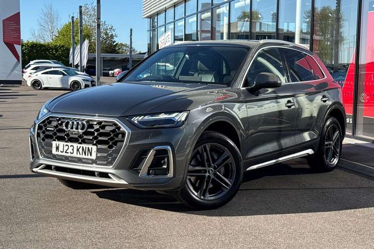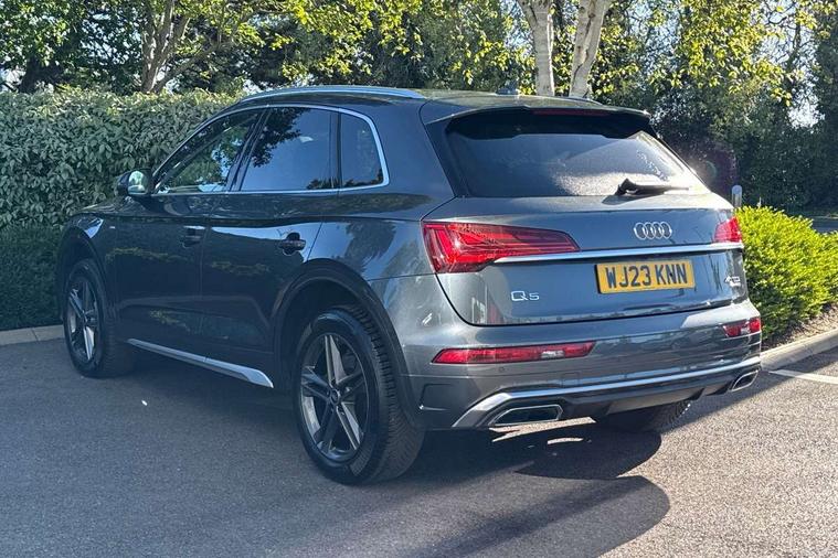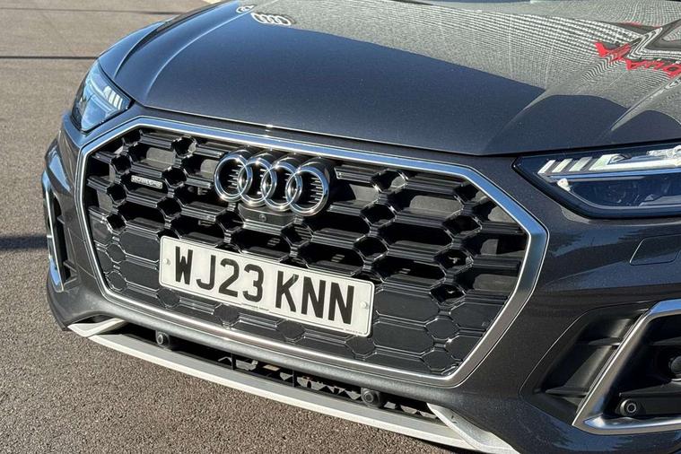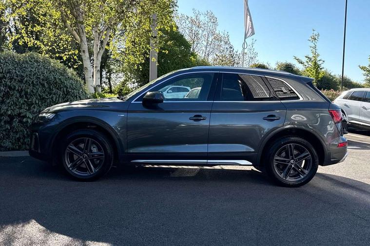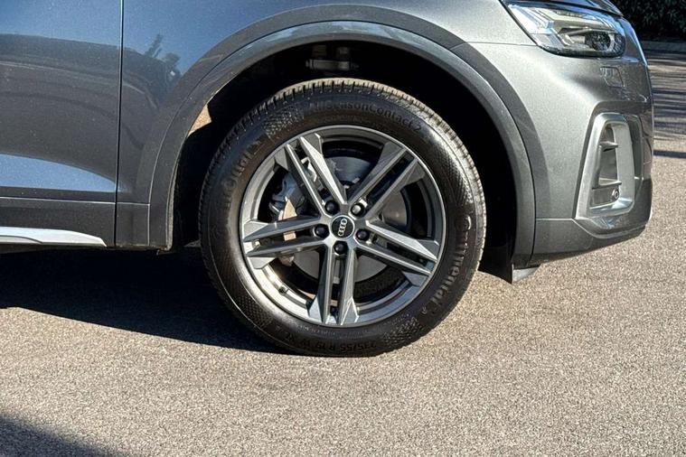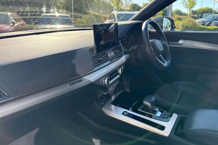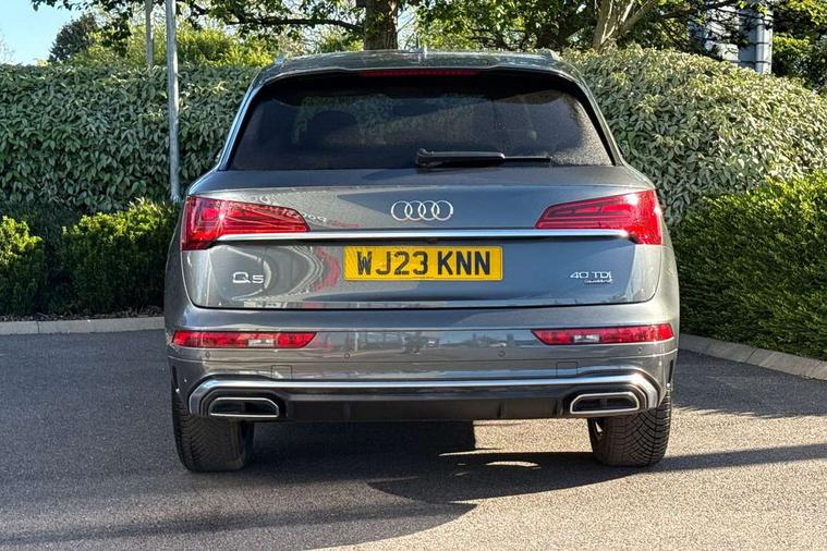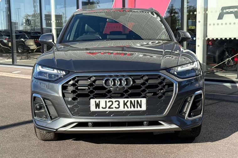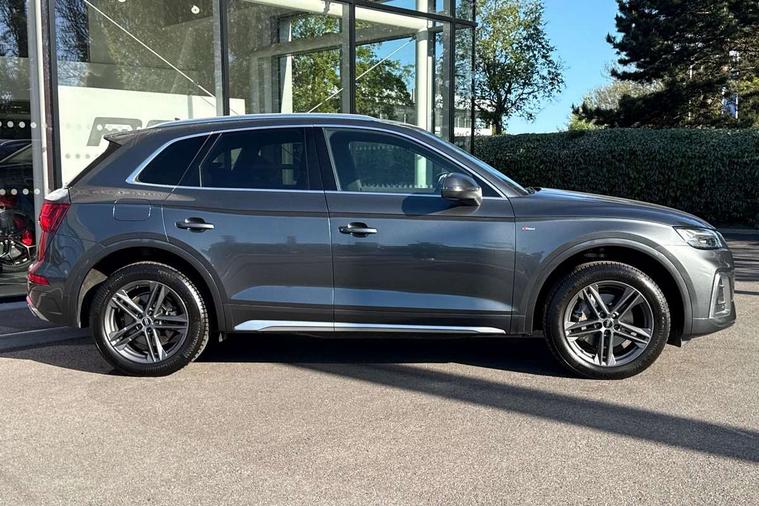Acoustic front and rear parking sensor, Audi connect safety and service (e-call), Audi connect with Amazon Alexa Integration, Audi drive select, Audi virtual cockpit plus with 12.3" screen and three different layout designs, Audi wireless smartphone interface, Automatic start-stop system with coasting functionality and efficiency programme, Bluetooth interface, Electro - mechanical power assisted steering, MMI navigation plus with 10.1" touch screen, Power tailgate, Reversing camera, Service interval indicator, Voice control system with Audi hotword activation "Hey Audi", Diesel particulate filter, Quattro on demand, S line sports suspension, 2 x USB charging port with aux input socket, 8 loudspeakers, DAB Digital radio, Acoustic windscreen, Aluminium roof rails, Audi matrix LED headlights with dynamic front and rear indicators, Auto dimming door mirrors, Auto dimming frameless rear view mirror, Automatic headlight adjustment, Automatic headlights and windscreen wipers, Body colour bumpers, Body colour door mirrors, Body colour rear diffuser with matt aluminium silver surrounds, Body colour underbody protection, Chrome plated exhaust trims, Daytime running lights, Door sills in Selenite silver, Electric adjustable/heated/folding door mirrors, Front air inlet surrounds in aluminium, Front and rear electric windows, Front radiator grille in honeycomb design, Headlight washers, High level LED brake light, Lower bumpers painted in contrast Manhattan grey, Rear chrome trim strip below lights, Rear privacy glass and rear side windows, Rear side wing doors, Rear wiper, Roof bars, S Line badges on the front wings, S Line front and rear bumpers, S Line rear spoiler, S Line side skirts, 3 rear headrests, 3 spoke leather multifunction steering wheel with S badging perforated leather grips, 40:20:40 split folding 3 rear bench seat in 2nd row with rear centre armrest, Black cloth headlining, Comfort front centre armrest, Contrast stitching on seats, steering wheel and gear lever gaiter, Deluxe 3 zone electronic climate control, Front/rear floor mats, Gear lever in black leather, Heated front seats, Height adjustable front head restraints, Height/reach adjustable steering column, Illuminated door sill trims with S logo, Luggage compartment cover, Manual seat adjustment with 4-way electric lumbar support, Removable luggage compartment floor, Single front passenger seat, Stainless steel pedals, Sunvisors with vanity mirrors, High gloss pack - Q5, LED interior light pack - Q5, 3 point seatbelts on all seats, 6 airbags - Driver, front passenger, curtain and side airbags, Electrically operated child locks on rear doors, Electromechanical parking brake, Electronic stabilisation control including ABS, ASR and EDL, First aid kit with warning triangle and vests, Front passenger airbag deactivation, Hill descent control, Hill hold assist, ISOFIX child seat mounting for front passenger seat and ISOFIX child seat mounting with Top Tether for outer rear seats, Multi collision brake assist, Pop-up bonnet for pedestrian protection, Pre sense city, Seat belt force limiter, Seatbelt monitoring, Tyre pressure warning, Anti theft alarm, Anti-theft wheel bolts, Keyless Go access/ignition system, Remote central locking, Air vents inserts and centre console in gloss black, Matt brushed aluminium inlays,