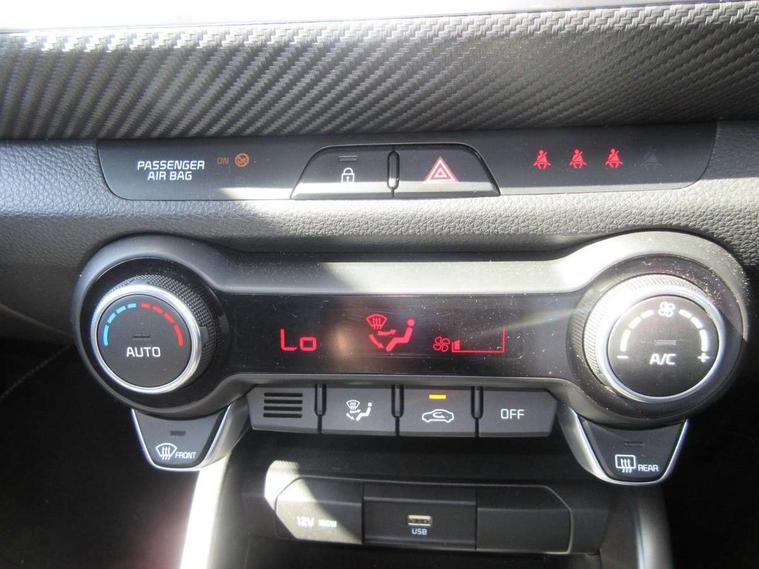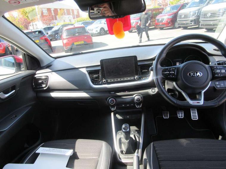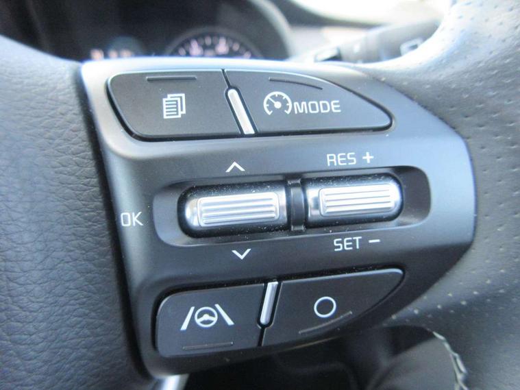 4.2" supervision colour cluster display, 8" Touchscreen navigation with telematics, Android auto with voice control, Apple car play with voice control, Blind spot collision warning, Cruise control + speed limiter, Drive mode selector, Electric power steering, Emergency stop signalling system, External temperature display, Forward Collision-Avoidance Assist (FCA) - City/Pedestrian/Cyclist, Front parking sensors, Intelligent speed limit assist, Kia connected services featuring TomTom live, Lane keeping assist system (LKAS), Driver attention warning (DAW) and High beam assist (HBA), Rear parking sensor, Reversing camera system, Trip computer, Intelligent Stop and Go, Audio system with 6 speakers, Bluetooth with music streaming, Front USB port, Rear USB port, Steering wheel mounted controls, Aero blade type windshield wipers, All round electric windows with drivers auto up/down function, Auto dimming rear view mirror, Automatic defog system, Automatic headlights control, Black side sill, door garnish and wheel arch trims, Black/body colour bumpers, Body coloured exterior door handles, Chrome side window trim, Electrically adjustable/heated/folding door mirrors with LED indicators, Front and rear silver skid plates, Gloss black door mirrors with matt black lower housing, Headlight levelling device, Heated rear window, High gloss black and satin radiator grille, LED Bi-function projection headlights with static bending, LED daytime running lights, LED front fog lights, LED rear combination lights, Privacy glass - Rear windows and tailgate, Rain sensing front wipers, Rear fog lights, Rear wash/wipe, Roof coloured rear spoiler with high mounted braking light, Roof rails, Shark fin antenna, Solar windshield glass, Speed variable front wipers, Two tone paint, Welcome and follow-me home light functionality, Windscreen Washer Level Warning, 12V power point front, 60/40 split folding rear seat, Air filter, All-round height adjustable headrests, Aluminium pedals, Automatic air conditioning, Centre armrest storage box, Centre console with cupholders, D-Cut perforated leather trimmed steering wheel, Dash illumination dimmer switch, Driver's seat height adjuster, Dual Height Luggage Area Floor, Front and centre cabin lights, Front and rear door map pockets with bottle holder, Gear shift indicator, Glovebox illumination, GT-Line cloth/faux leather upholstery, Heated front seats, Heated steering wheel, ISOFIX Child seat top tethers and anchor fixings outer rear seats, Leather trimmed gearshift, Luggage area light, Luggage area parcel shelf, Luggage net, Luggage net with hooks, Overhead console lamp, Overhead console with sunglasses cases, Passenger front seatback pockets, Passenger seat height adjuster, Satin chrome interior door handles, Sunvisors with vanity mirror illumination (Driver and front passenger), Tilt/telescopic adjustable steering wheel, ABS with Electronic Brakeforce Distribution (EBD) and Brake Assist System (BAS), All round 3-point seatbelts, Electronic stability control (ESC) and vehicle stability management (VSM), Front passenger airbag cut-off switch, Front seatbelt pretensioners + load limiters, Height adjustable front seatbelts, Hill start assist control (HAC), Impact sensing auto door unlocking, Rear seat Occupancy alert, Seatbelt reminder warning, Twin curtain airbags, Twin front airbags, Twin front side airbags, Tyre pressure monitoring system, Alarm system, Door deadlocks, Engine immobiliser, Locking wheel nuts, Smart key with engine start/stop button, Speed sensitive auto door locking, Visible vehicle identification number, High gloss black centre fascia, 17" GT-Line alloy wheels, Tyre mobility kit,