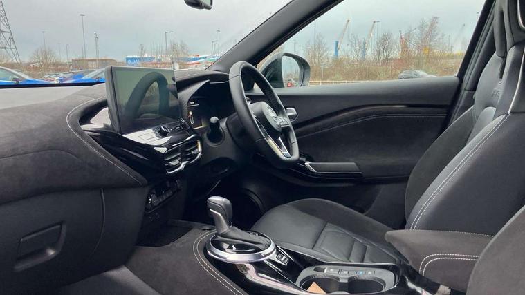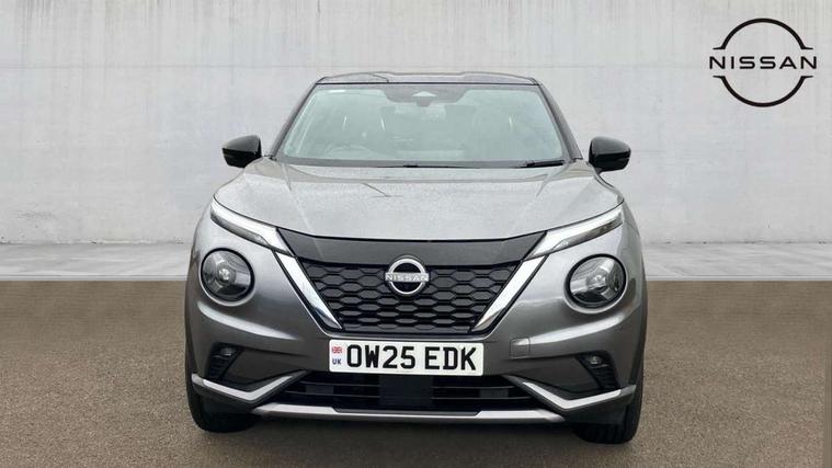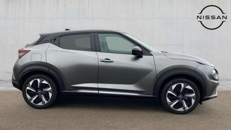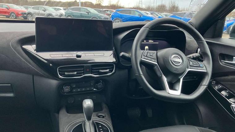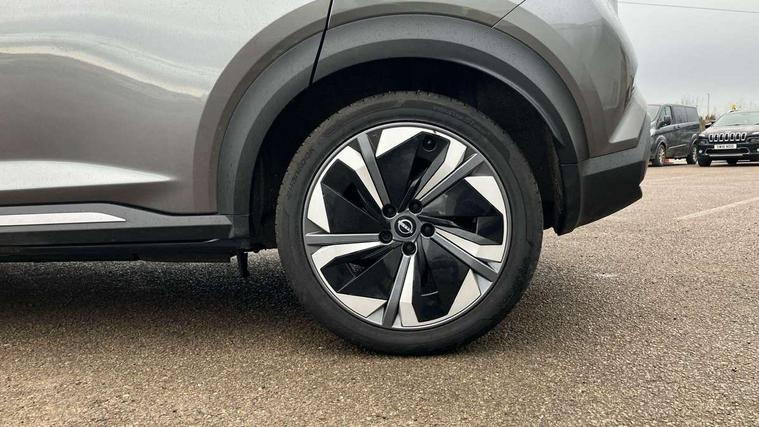 12.3" full colour TFT screen combimeter, Drive modes select (Eco, normal and sport), e-Pedal step, Emergency and breakdown call, EV mode switch, Front parking sensor, Intelligent driver alert system, Intelligent lane intervention, Lane departure warning system, Nissan connect 12.3" touch screen entertainment system, Nissan connect nav with TomTom traffic, Nissan connect services, Outside temperature sensor, Power Steering, Rear parking sensor, Stop/start button, Traffic sign recognition, Trip computer, Voice recognition, WiFi connectivity, Wireless Apple CarPlay and Google Android auto, Wireless Smartphone charger, 10 Bose speakers 8 speakers and 2 headrest speakers for driver/passenger seats, 2 X Rear console USB port, Bluetooth system, USB, Aux-in and 12V socket, Bose personal plus audio system, DAB Digital radio, Auto dimming frameless rear view mirror, Automatic hazard signal with emergency stop signal, Body colour door handles, Electrically adjustable door mirrors with integrated indicators, Follow me home headlights, Front and rear electric window with one touch driver window, High beam assist, LED 3rd brake light, LED daytime running lights, LED front fog lights, LED headlamps, LED rear fog lamp, LED rear lamps, One touch passenger window, Rear privacy glass, Rear side wing doors, Rear wiper, Roof spoiler, Shark fin roof antenna in solid Black, Solid black door mirrors, Solid black front bumper/rear bumper and side skirts inserts, Three blink turn signal, 3 height adjustable rear headrests, 3 seat bench in 2nd row, 60/40 split folding rear seat, Card holder on driver sunvisor, Door ambient lighting, Driver seat back pocket, Driver side rear coat hanger, Driver/passenger sunvisors and vanity mirrors, Front and rear cabin lights, Front armrest, Front door pockets with bottle holders, Front head restraints, Front/rear passenger grab handles, Gear console ambient circle lighting, Height adjustable driver's seat, Internal chrome door handles, Luggage board, Luggage space lighting, Monoform sporty seats, Multifunction steering wheel, Passenger seat back pocket, Rear door bottle holders, Single front passenger seat, Smooth synthetic leather steering wheel, Synthetic leather kneepad, Synthetic leather shift knob, Telescopic steering wheel adjustment, Two cupholders in front centre console, Two rear isofix child seat anchorage points with top tether, Welcome light and console tray ambient lighting, Comfort pack - Juke, Heat pack with height adjustable passenger seats - Juke, Interior personalisation pack - Juke, ProPilot pack - Juke Auto, Satin grey exterior personalisation pack - Juke, ABS with EBD and brake assist, Active ride control, Active Trace Control, Driver and passenger airbags, Driver and passenger side airbags, Electric handbrake with auto hold function, Electronic Stability Programme (ESP), Front and rear curtain airbags, Height adjustable seatbelts, Hill start assist, Intelligent emergency braking with pedestrian and cyclist recognition, Rear door child safety locks, Seatbelt reminder for driver/front passenger and rear seats, Three 3 point rear seatbelts, Traction control, Tyre pressure monitoring system, VDC Dynamic Vehicle Control, Alarm, Immobiliser, Intelligent key and start push button with walk away lock and approach unlock functions, Remote central locking, 19" Aero alloy wheels, Tyre puncture repair kit,