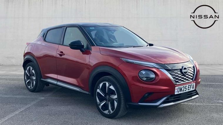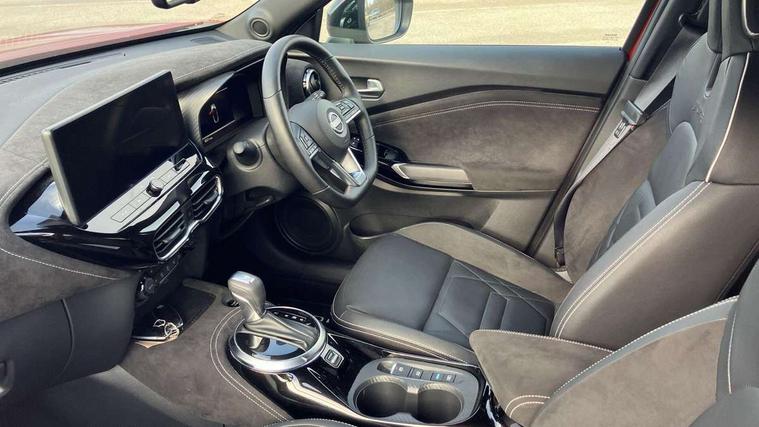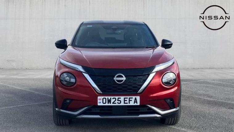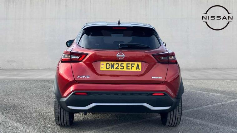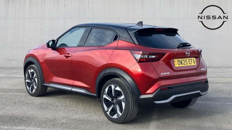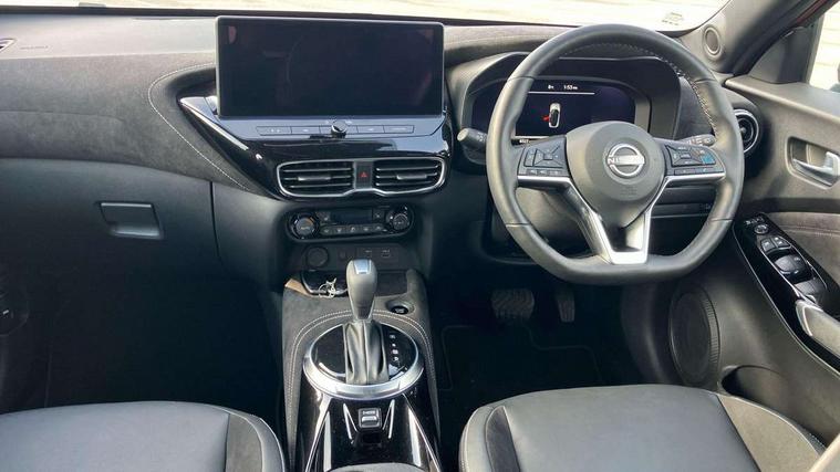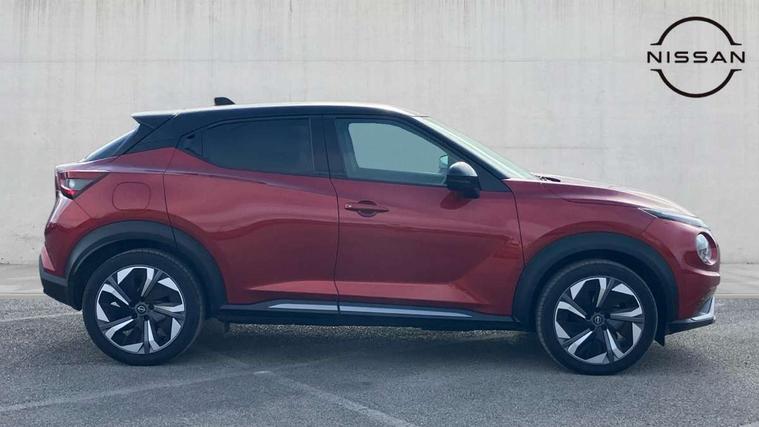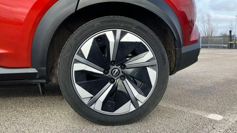 12.3" full colour TFT screen combimeter, Drive modes select (Eco, normal and sport), e-Pedal step, Emergency and breakdown call, EV mode switch, Front parking sensor, Intelligent driver alert system, Intelligent lane intervention, Lane departure warning system, Nissan connect 12.3" touch screen entertainment system, Nissan connect nav with TomTom traffic, Nissan connect services, Outside temperature sensor, Power Steering, Rear parking sensor, Stop/start button, Traffic sign recognition, Trip computer, Voice recognition, WiFi connectivity, Wireless Apple CarPlay and Google Android auto, Wireless Smartphone charger, 10 Bose speakers 8 speakers and 2 headrest speakers for driver/passenger seats, 2 X Rear console USB port, Bluetooth system, USB, Aux-in and 12V socket, Bose personal plus audio system, DAB Digital radio, Auto dimming frameless rear view mirror, Automatic hazard signal with emergency stop signal, Body colour door handles, Electrically adjustable door mirrors with integrated indicators, Follow me home headlights, Front and rear electric window with one touch driver window, High beam assist, LED 3rd brake light, LED daytime running lights, LED front fog lights, LED headlamps, LED rear fog lamp, LED rear lamps, One touch passenger window, Rear privacy glass, Rear side wing doors, Rear wiper, Roof spoiler, Shark fin roof antenna in solid Black, Solid black door mirrors, Solid black front bumper/rear bumper and side skirts inserts, Three blink turn signal, 3 height adjustable rear headrests, 3 seat bench in 2nd row, 60/40 split folding rear seat, Card holder on driver sunvisor, Door ambient lighting, Driver seat back pocket, Driver side rear coat hanger, Driver/passenger sunvisors and vanity mirrors, Front and rear cabin lights, Front armrest, Front door pockets with bottle holders, Front head restraints, Front/rear passenger grab handles, Gear console ambient circle lighting, Height adjustable driver's seat, Internal chrome door handles, Luggage board, Luggage space lighting, Monoform sporty seats, Multifunction steering wheel, Passenger seat back pocket, Rear door bottle holders, Single front passenger seat, Smooth synthetic leather steering wheel, Synthetic leather kneepad, Synthetic leather shift knob, Telescopic steering wheel adjustment, Two cupholders in front centre console, Two rear isofix child seat anchorage points with top tether, Welcome light and console tray ambient lighting, Comfort pack - Juke, Heat pack with height adjustable passenger seats - Juke, Interior personalisation pack - Juke, ProPilot pack - Juke Auto, Satin grey exterior personalisation pack - Juke, ABS with EBD and brake assist, Active ride control, Active Trace Control, Driver and passenger airbags, Driver and passenger side airbags, Electric handbrake with auto hold function, Electronic Stability Programme (ESP), Front and rear curtain airbags, Height adjustable seatbelts, Hill start assist, Intelligent emergency braking with pedestrian and cyclist recognition, Rear door child safety locks, Seatbelt reminder for driver/front passenger and rear seats, Three 3 point rear seatbelts, Traction control, Tyre pressure monitoring system, VDC Dynamic Vehicle Control, Alarm, Immobiliser, Intelligent key and start push button with walk away lock and approach unlock functions, Remote central locking, 19" Aero alloy wheels, Tyre puncture repair kit,