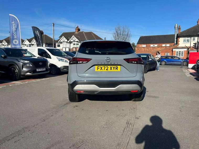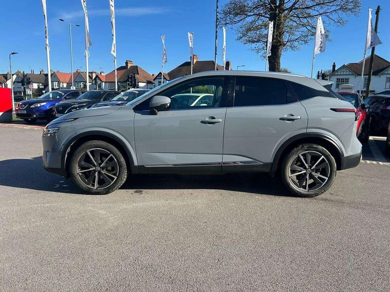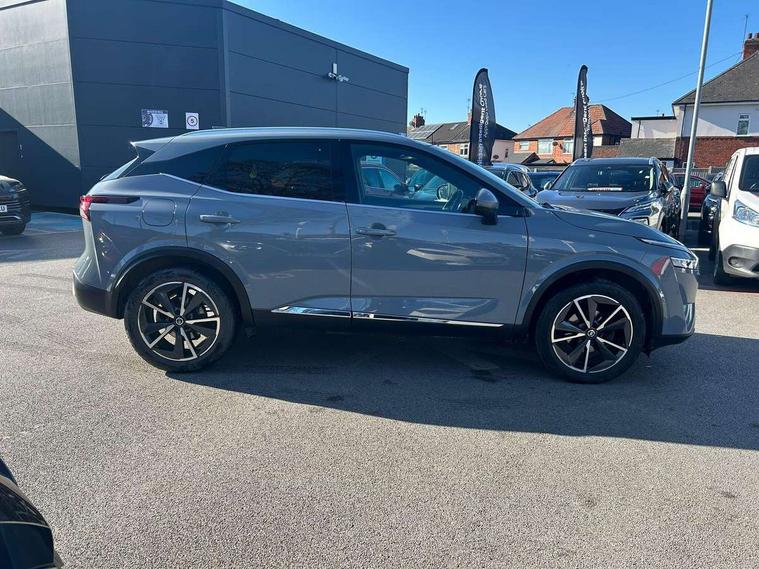 Advanced windscreen head up display, Android auto/Apple CarPlay (Wired), Blind spot warning, Drive assist, Drive modes (sport, normal, eco), Electric speed sensitive power steering, Emergency and breakdown call, Front and rear parking sensors, Full Digital 12.3" TFT Digital Combimeter, Google maps services - search, weather, 3D maps and Google street view, Hands free power tailgate, Idle stop/start system, Intelligent around view monitor, Intelligent Cruise control (ICC), Intelligent driver alert system, Intelligent forward collision warning, Intelligent lane intervention, Lane departure prevention, Lane departure warning system, Lane keep assist, Moving object detection, Nissan connect 12.3 inch touchscreen infotainment system, Nissan connect navigation, Push button starter, Rear cross traffic alert, Rear view camera, Remote control services - door locks, lights, horn and car locator, Telematics - notifications and connectivity services, TomTom live traffic services, Traffic sign recognition with legal speed adjustment, Trip computer, Virtual personal assistant and firmware over the air capability, Wireless apple carplay, Wireless charging pad, 6 speakers, AM/FM audio system with DAB, Bluetooth audio streaming, Front USB connections (Type-A and Type-C), Rear USB charging only ports (Type-A and Type-C), 3rd brake light, Auto dimming rear view mirror, Auto rear wiper when reversing, Automatic hazard signal with emergency stop signal, Body colour mirror caps, Body coloured door handles, Bodyside mouldings, Chrome side window finisher, Door handle with button, Electric auto folding door mirrors, Electrically adjustable and heated door mirrors with LED turn indicator, Follow me home headlights, Front and rear LED turning signals, Headlights auto levelling system, Intelligent auto headlights, LED daytime running lights, LED headlights with adaptive driving beam, LED rear lights, One touch front and rear electric windows with remote opening and closing, Partially body coloured bumpers, Privacy glass, Rear bumper with graphite insert, Rear reversing light (bulb lighting), Rear roof spoiler, Rear side wing doors, Rear styling plate, Shark fin antenna, Splash free rain sensing wipers, Super UV and infrared cut glass, Thermaclear heated windscreen, Three blink turn signal, 12v power socket in dashboard and luggage, 2x Rear coat hooks, 3 bench rear seats in 2nd row, 3 rear headrests, 4 folding assist grip, 6 Luggage hooks - 4 on floor, 2 on side, 60/40 split folding rear seat bench, Ambient lighting around centre console, Ambient lighting in front doors, Centre console storage tray, Chrome interior door handles, Cloth/syntech leather monoform upholstery, Dark black/blueish PVC wrapping, Dark headlining, Driver and front passenger sunvisors with illuminated vanity mirrors, Driver seat back pocket, Dual zone automatic climate control with pollen filter, Electrically adjustable driver seat, Electrically adjustable lumbar support for driver, Front and rear door storage, Front centre console and armrest, Front cupholders x 2, Front door with bottle holders, Glovebox with light, Hard trunk cover, Heated front seats, Heated steering wheel, Height adjustable driver's seat, Height adjustable front headrests, Height adjustable passenger seat, Leather shift knob, Leather steering wheel, Luggage board system, Luggage space lighting, Manual lumbar support on passenger seat, Manually adjustable passenger (slide recline + lifter), Multifunction steering wheel, Passenger seat back pocket, Rear armrest with 2 cupholders, Rear door bottle holders, Single front passenger seat, Soft PVC kneepad, Steering wheel switches, Tilt/telescopic adjustable steering wheel, Two rear isofix child seat anchorage points with top tether, Welcome light and doors with console tray ambient lighting, Glass roof pack with roof rails - Qashqai, 3x3 point rear seatbelt pretensioners + load limiters, ABS with EBD and brake assist, Active brake limited slip, Auto hold function, Child locks on rear doors, Curtain and front side, far side airbags, Driver and passenger airbags, Driver, passenger and 2nd row rear seat belt reminder, Electronic parking brake, Front seatbelt pretensioners + load limiters, Height adjustable front seatbelts, Hill start assist, Intelligent blind spot intervention, Intelligent front emergency braking with pedestrian, cyclist recognition and junction assist, Intelligent rear automatic braking, Tyre pressure monitoring system, Vehicle dynamic control, Capless fuel filler, Engine immobiliser, Intelligent Key, Remote central door locking with deadlocking, Thatcham Cat.1 alarm, Interior instrumental panel C finisher, 19" Alloy wheels, Tyre puncture repair kit,