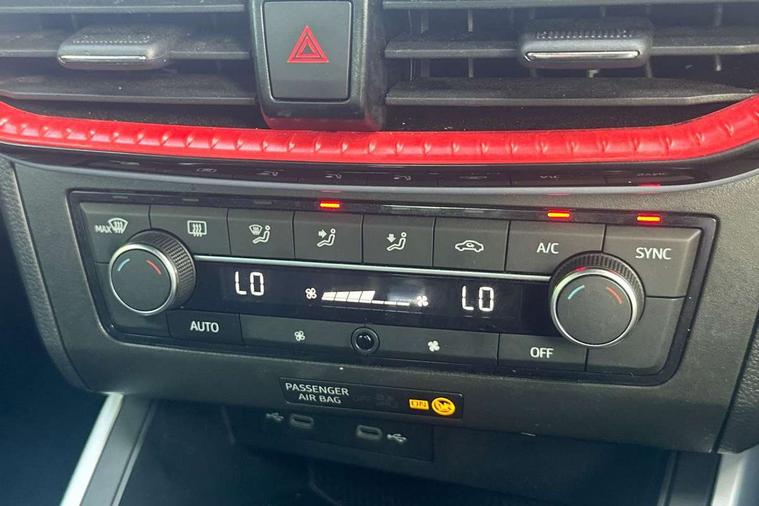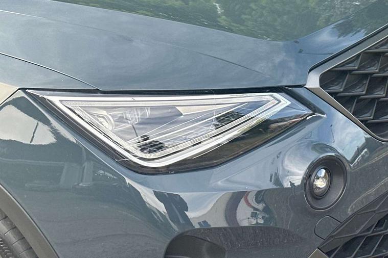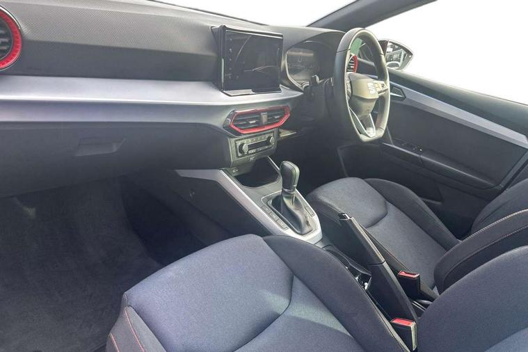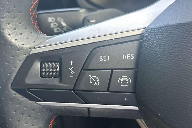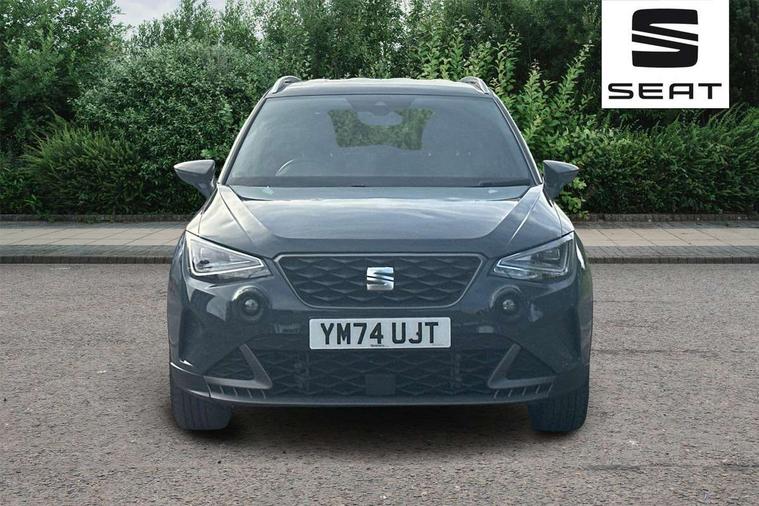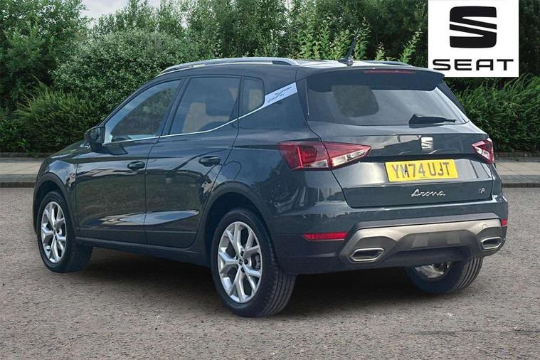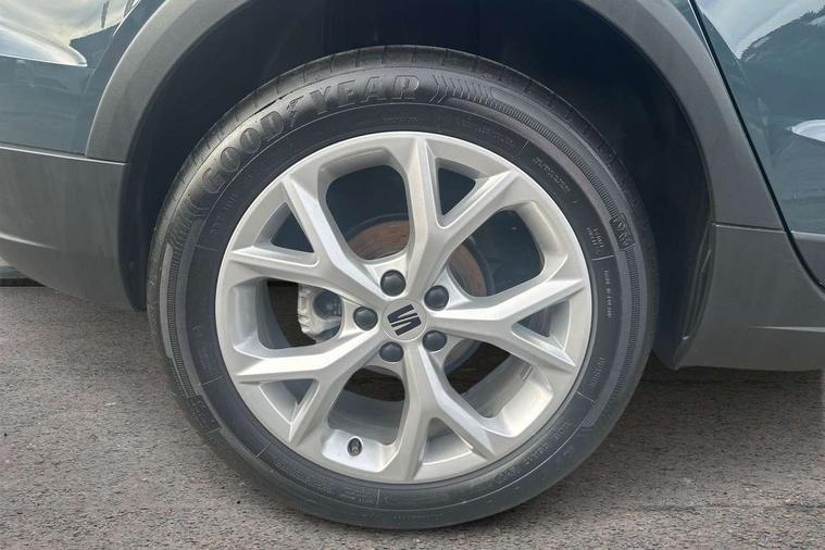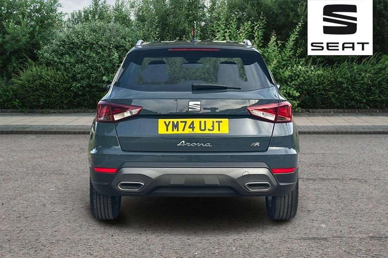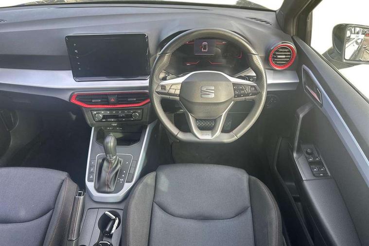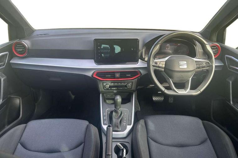 'Lights On' Reminder warning buzzer, 8" Digital cockpit, Digital clock, E-call, Electric speed sensitive power steering, Full link smartphone integration with mirror link, wireless apple carplay, Google android auto + USB Type C cable for apple and android devices, Lane keeping system, Low fuel warning light, Outside temperature display, RPM counter, SEAT Drive profile - Four different models normal-sport-eco-individual, steering response, throttle response and gear shifts mode, Trip computer, Wireless phone charger, 6 speakers, 9.2" colour touchscreen with navigation system, voice control and USB port (type c), Bluetooth interface for hands free and audio streaming, DAB digital radio and AM/FM radio, Steering wheel mounted audio controls, Anti theft roof antenna, Auto dimming interior rear view mirror, Automatic activation of hazard warning lights, Body coloured bumpers, Body coloured door handle inserts, Chrome roof rails and window surrounds, Dark tinted rear windows, Electric front/rear windows, Electrically adjustable, heated and folding door mirrors, Front fog lights with cornering function and rear fog light, FULL LED automatic headlights with dynamic headlight range control, coming and leaving home, LED daytime running lights, LED rear tail lights and licence plate lights, Protective side mouldings, Rain sensing wipers, Rear side wing doors, Rear spoiler, Rear window wash/wipe, Roof colour door mirrors, Third brake light, Twin exhaust pipe styling hidden exhaust pipe, Visible VIN plate, 2 cupholders, 3 seat bench in 2nd row, 60/40 split folding rear seat, Aircare filter, Black interior roof, Cloth upholstery, Double boot floor, Driver sunvisor with covered mirror + card holder, Dual zone climate control, Front courtesy light with front reading lights, Gear shift indicator, Height adjustable front seats, Height/reach adjustable steering column, Illuminated air vent surrounds, Illuminated boot, Instrument lighting with brightness control, Interior ambient lighting, Interior light in footwell, central console and door panel, ISOFIX points in outer rear seats with top tether anchorage points, Passenger sunvisor with vanity mirror, Perforated flat bottomed leather steering wheel/gear knob/handbrake with red stitching and FR logo, Potentiometer, Single front passenger seat, Steering wheel mounted gearshift paddles, Two front and three rear height adjustable headrests, Interior chrome pack - Arona, Safe and driving pack (S) - Arona, 3 point seatbelts on all rear seats, ABS, Active front headrests, Child locks on rear doors, Driver and front passenger airbags with front passenger airbag de activation, front side and curtain airbags, Emergency Brake Assist (EBA) and front assist, Front and rear seatbelt reminder, Hill hold control, Multi-Collision braking, Tiredness recognition system, Traction control, Tyre pressure monitoring system, Alarm with back up horn with tow away protection, Deadlock, Electronic engine immobiliser, Locking wheel bolts, Remote central locking, Titan black dashboard, 17" Dynamic alloy wheels,
