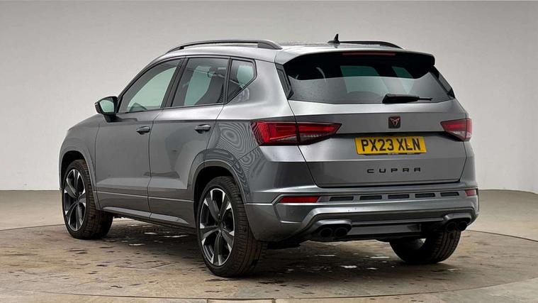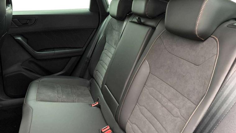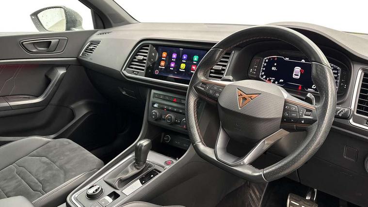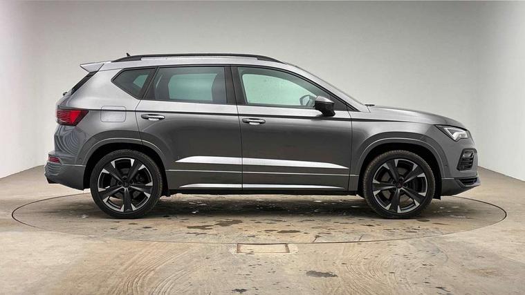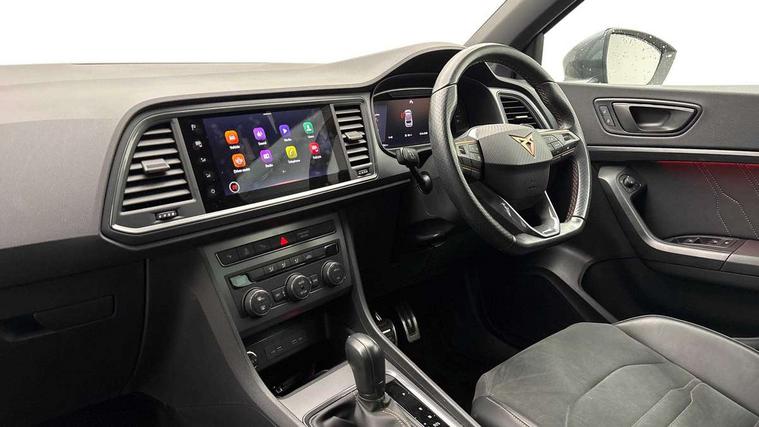 Cruise control system with speed limiter, CUPRA drive profile -Normal, Sport, CUPRA and Individual modes, steering/throttle response, gearshift mode, sound actuator and dynamic chassis control, Digital cockpit, E-call, Front and rear view camera, Outside temperature gauge, Progressive power assisted steering, Self parking functionality (includes front and rear parking sensors), Top view camera, Trip computer, Wireless full link smartphone integration, Wireless phone charger, CUPRA sport suspension, Beats audio system, Steering wheel mounted audio/phone controls, Body colour bumpers with dark aluminium diffusor, Body coloured wheel arch surrounds, Dark tinted rear windows, Daytime running lights, Door mirrors with welcome CUPRA light silhouette, Dynamic headlight range control with self adjusting whilst driving, Electric adjustable/heated/folding door mirrors, Front and rear electric windows, Front grille frame in chrome, Full LED headlamps with lens and LED front fog lamps with cornering function, Gloss black door mirrors, Gloss black roof rails, Gloss black side mouldings, Gloss black side window trim, Illuminated aluminium front door sill, LED rear tail lights with dynamic indicators, Rear fog lights, Rear side wing doors, Rear spoiler, Rear wash/wipe, Specific CUPRA design front bumper, Third brake light, Visible twin black exhaust pipes in both sides with dark aluminium diffuser, 12V socket in front, 3 seat bench in 2nd row, 60/40 split folding rear seat, Aluminium pedals, Bucket sport seats in dinamica upholstery, Cupra steering wheel emblem, Document holder under left front seat, Dual zone climate control, Front and rear head restraints, Front centre armrest, Front seat back storage pockets, Heated steering wheel, Height adjustable driver and passenger seat with lumbar adjustment, ISOFIX points in outer rear seats with top tether anchorage points, Leather steering wheel and gear knob, Multicoloured ambient lighting with LED interior illumination, Pedal cluster, Rear armrest and easy back seat release mechanism from boot, Single front passenger seat, Steering wheel mounted gearshift paddles, Storage compartment in roof console for sunglass, Storage compartment under driver's seat, Convenience pack - Ateca, Interior lighting pack - Ateca, Navigation system plus pack with DAB - Ateca, 3x3 point rear seatbelts, ABS, Traction control system (TCS), Electronic stability control (ESC) and Electronic differential lock system (XDS), Airbags - Driver and front passenger airbag with deactivation, front side, two curtain and driver's knee airbags, Black brake callipers with CUPRA logo, Electric parking brake with auto hold function, Front and rear seatbelt reminder, Front assist with autonomous emergency braking, Hill hold control, Manual rear child locks, Single tone horn, Tiredness recognition system, Tyre pressure monitoring system, Alarm, Keyless entry, Locking wheel bolts,