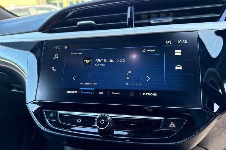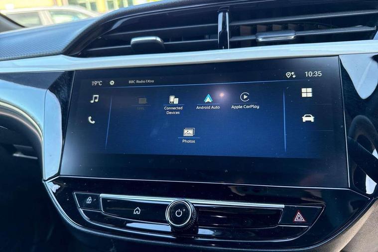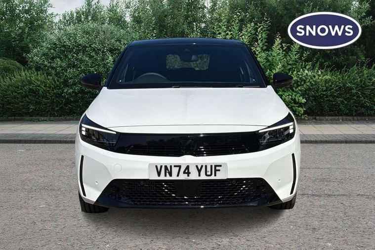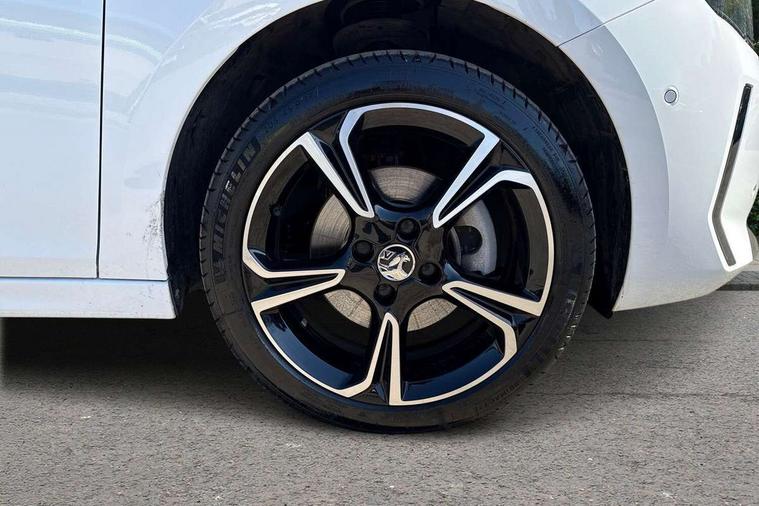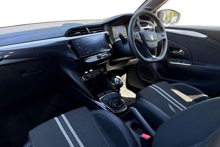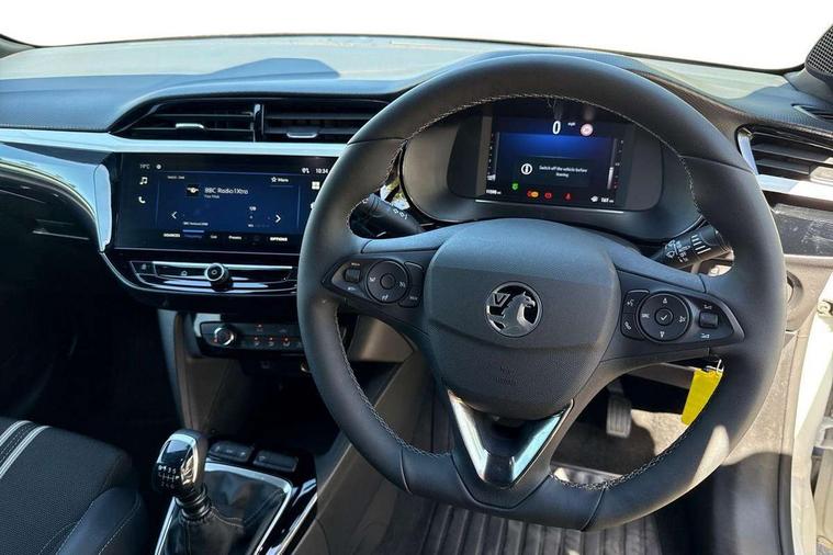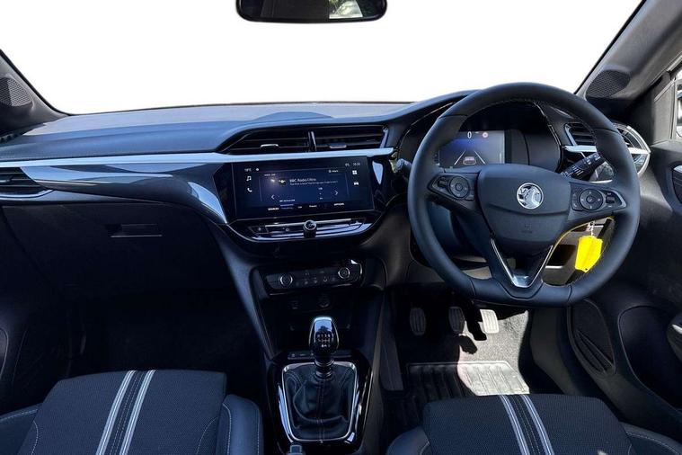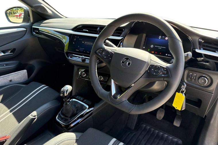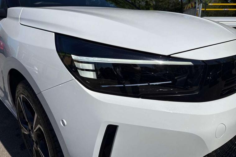 130 degree rear view camera, 7 inch digital instrument cluster display, Auto tele unit 3S vehicle communication system, Breakdown call (b-call), Central facia display with digital clock, outside air temperature and audio information, Cruise control with intelligent speed limiter, Driver drowsiness alert system, E-call, Engine oil life indicator, Front and rear parking sensors, Front camera system, Instrumentation - Speedometer, rev counter, low fuel gauge warning light + water temperature gauge warning light, Lane departure warning, Lane keep assist, Lights on audible warning, Multi function trip computer, RDS with traffic programme, Service indicator, Side blind spot alert, Smartphone projection, Speed sensitive power steering, Speed sign recognition, Sport drive mode selector, Start/stop system, Vauxhall connect box, Wireless Apple CarPlay/Android Auto, Electronic returnless fuel system, Petrol Particulate Filter, Under body shield for aero, AM/FM stereo radio, Bluetooth connectivity with A2DP audio streaming function (Advanced audio distribuition profile), DAB Digital radio, Multimedia with 10-inch touchscreen, Six speakers, Steering wheel audio, phone and cruise controls, USB type C port, 3rd brake light, Automatic headlight control system, Black DLO, Black door mirror housings, Black Griffin logo and vizor frame, Black lower side window mouldings, Body colour door handles, Body colour front and rear bumpers, Bonnet/headlight/wiper structure, Corsa lettering in tailgate, Dark tinted rear side windows + tailgate window, Electrically adjustable and heated door mirrors, Electrically folding door mirrors, Electrically operated front and rear windows with safety auto reverse and one touch up/down facility, Electrochromic automatic anti-dazzle rear view mirror, Flexible roof mounted aerial, Glazed tailgate and heated rear window with wash/wipe facility, Hazard warning lights, Headlamps for left side traffic, High beam assist, High gloss black finish B pillar, Intelli-LED headlights, LED daytime running lights, LED tail lamp, Rain sensitive windscreen wipers, Rear fog lamp, Rear reversing lights, Rear side wing doors, Rear wiper, Solar heat absorbing windscreen and windows, Sports front and rear body styling for upper and lower bumper design, Two speed windscreen wipers with variable intermittent wipe, Windscreen and side window demist vents, 12V power sockets, 3 bench rear seats in 2nd row, 3 spoke flat bottomed steering wheel with satin chrome effect bezel, 4 speed fan with illuminated controls, 4 way manual co-driver seat reach fore/aft, backrest upright/recline, 6 way manual adjustable driver seat height up/down, reach fore/aft, backrest upright/recline, 60/40 split folding rear seat, Air conditioning with air recirculation facility, Banda cloth upholstery, Black headliner, Cabin particulate filter - removes dust, airborne particles and pollen, Driver/passenger sunvisors with vanity mirrors + covers, Four adjustable facia vents, Front centre armrest with storage, Front cupholder, Front headrests, Height adjustable head restraints, Illuminated glovebox with lid, Interior courtesy light, Internal chrome door handles, LED boot light, Polyurethane gear knob/lever, Reach and rake adjustable steering column, Rear cupholder, Rear headrests, Right hand drive (RHD), Rubber pedals, Single dome lamp with dual front reading lamps, Single front passenger seat, Sports style front seats, Two litre open door pockets, 3 rear 3 point seatbelts, Anti-lock braking system (ABS), Automatic emergency braking with pedestrian detection, Cornering brake control, Deactivation switch for front passenger's airbag, Drag torque control, Driver and front passenger airbags, front seat side impact airbags, full size curtain airbags, EBD - Electronic brakeforce distribution, Electrical child lock system in rear door latch, Electronic Stability Programme (ESP), Emergency brake assist, Forward collision alert, Front seatbelt unfastened audible warning and warning light, Hill hold and start system, ISOFIX child seat mountings incorporating top tether anchor points located on second row rear seats, Manual handbrake, Seatbelt pretensioners, Single tone horn, Straight line stability control, Traction control, Tyre deflation detection system, Tyre pressure monitoring system, 2 keys one folding with integral remote, Electronically protected audio equipment, Engine deadlock and immobiliser, Freewheeling door locks, Locking wheel nuts, Remote control central locking, Remote control security alarm system, Remote locking fuel filler flap, Steering column lock, Visible vehicle identification number, Silent white fascia with blanc banquise insert, 17" Diamond-cut hi-gloss black alloy wheels,