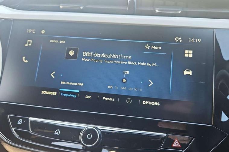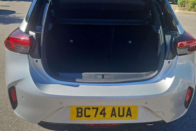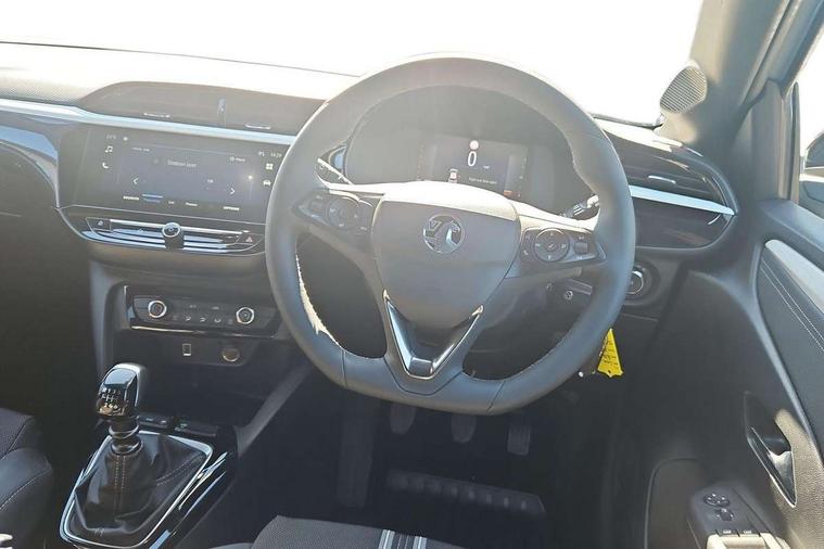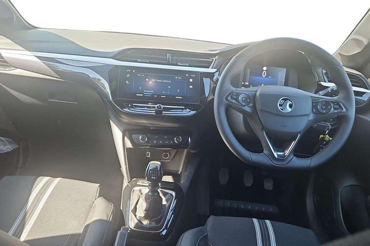 130 degree rear view camera, 7 inch digital instrument cluster display, Auto tele unit 3S vehicle communication system, Breakdown call (b-call), Central facia display with digital clock, outside air temperature and audio information, Cruise control with intelligent speed limiter, Driver drowsiness alert system, E-call, Engine oil life indicator, Front and rear parking sensors, Front camera system, Instrumentation - Speedometer, rev counter, low fuel gauge warning light + water temperature gauge warning light, Lane departure warning, Lane keep assist, Lights on audible warning, Multi function trip computer, RDS with traffic programme, Service indicator, Side blind spot alert, Smartphone projection, Speed sensitive power steering, Speed sign recognition, Sport drive mode selector, Start/stop system, Vauxhall connect box, Wireless Apple CarPlay/Android Auto, Electronic returnless fuel system, Petrol Particulate Filter, Under body shield for aero, AM/FM stereo radio, Bluetooth connectivity with A2DP audio streaming function (Advanced audio distribuition profile), DAB Digital radio, Multimedia with 10-inch touchscreen, Six speakers, Steering wheel audio, phone and cruise controls, USB type C port, 3rd brake light, Automatic headlight control system, Black door mirror housings, Black Griffin logo and vizor frame, Black lower side window mouldings, Body colour door handles, Body colour front and rear bumpers, Bonnet/headlight/wiper structure, Corsa lettering in tailgate, Dark tinted rear side windows + tailgate window, Electrically adjustable and heated door mirrors, Electrically folding door mirrors, Electrically operated front and rear windows with safety auto reverse and one touch up/down facility, Electrochromic automatic anti-dazzle rear view mirror, Flexible roof mounted aerial, Glazed tailgate and heated rear window with wash/wipe facility, Hazard warning lights, Headlamps for left side traffic, High beam assist, High gloss black finish B pillar, Intelli-LED headlights, LED daytime running lights, LED tail lamp, Rain sensitive windscreen wipers, Rear fog lamp, Rear reversing lights, Rear side wing doors, Rear wiper, Solar heat absorbing windscreen and windows, Sports front and rear body styling for upper and lower bumper design, Two speed windscreen wipers with variable intermittent wipe, Windscreen and side window demist vents, 12V power sockets, 3 bench rear seats in 2nd row, 3 spoke steering wheel, 4 speed fan with illuminated controls, 4 way manual co-driver seat reach fore/aft, backrest upright/recline, 6 way manual adjustable driver seat height up/down, reach fore/aft, backrest upright/recline, 60/40 split folding rear seat, Air conditioning with air recirculation facility, Banda cloth upholstery, Black headliner, Cabin particulate filter - removes dust, airborne particles and pollen, Driver/passenger sunvisors with vanity mirrors + covers, Four adjustable facia vents, Front centre armrest with storage, Front cupholder, Front headrests, Height adjustable head restraints, Illuminated glovebox with lid, Interior courtesy light, Internal chrome door handles, LED boot light, Polyurethane gear knob/lever, Reach and rake adjustable steering column, Rear cupholder, Rear headrests, Right hand drive (RHD), Single dome lamp with dual front reading lamps, Single front passenger seat, Sports style front seats, Standard floor mats, Two litre open door pockets, 3 rear 3 point seatbelts, Anti-lock braking system (ABS), Automatic emergency braking with pedestrian detection, Cornering brake control, Deactivation switch for front passenger's airbag, Drag torque control, Driver and front passenger airbags, front seat side impact airbags, full size curtain airbags, EBD - Electronic brakeforce distribution, Electrical child lock system in rear door latch, Electronic Stability Programme (ESP), Emergency brake assist, Forward collision alert, Front seatbelt unfastened audible warning and warning light, Hill hold and start system, ISOFIX child seat mountings incorporating top tether anchor points located on second row rear seats, Manual handbrake, Seatbelt pretensioners, Single tone horn, Straight line stability control, Traction control, Tyre deflation detection system, 2 keys one folding with integral remote, Electronically protected audio equipment, Engine deadlock and immobiliser, Freewheeling door locks, Locking wheel nuts, Remote control central locking, Remote control security alarm system, Remote locking fuel filler flap, Steering column lock, Visible vehicle identification number, Silent black fascia with blanc banquise insert, 17" Diamond-cut hi-gloss black alloy wheels,