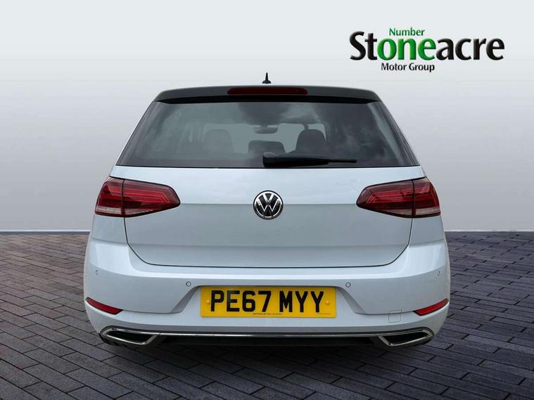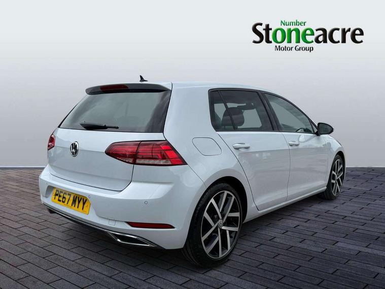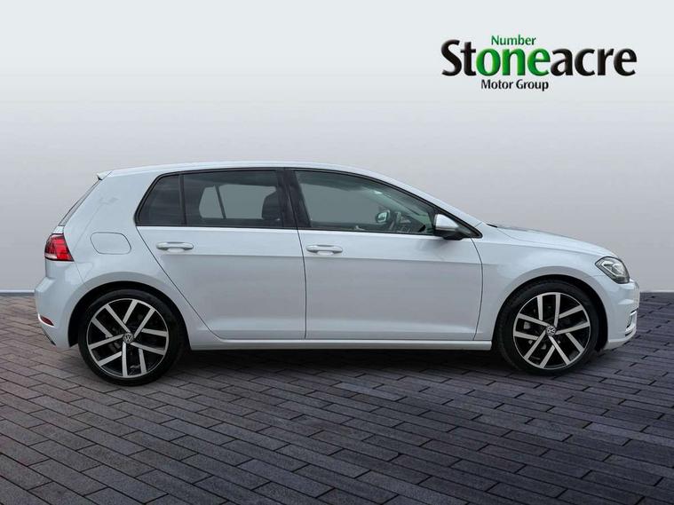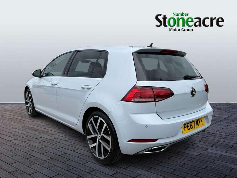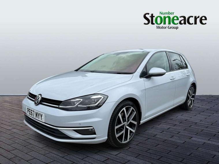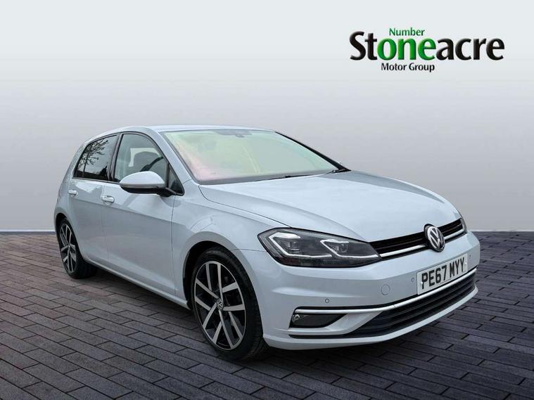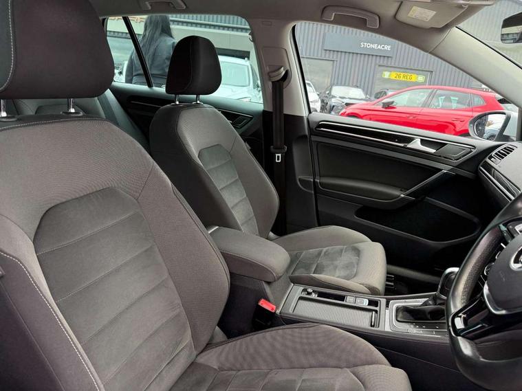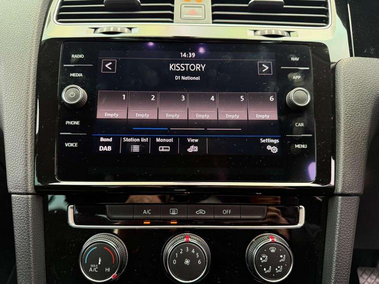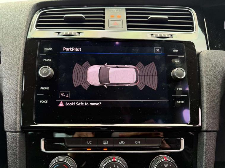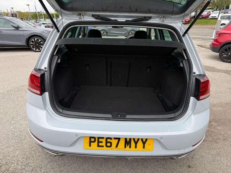'Lights On' Reminder warning buzzer, 8" touch screen, Adaptive Cruise Control with pedestrian detection and speed limiter, App-Connect, Bluetooth hands free telephone connection, Brake pad wear indicator warning light, Driver alert system, Driver profile selection, Exterior temperature gauge, Front assistant collision mitigation, Instrument cluster in white, Multifunction computer, PAS - speed related, Rev counter, Trip and service interval display, Ultrasonic front and rear optical and audible parking sensors, Warning buzzer and light for front seatbelts unfastened, Diesel particulate filter, Lowered sports suspension, XDS electronic differential lock, CD/MP3/WMA, USB and SD card reader, aux-in, Composition media system, DAB Digital radio, Auto dimming rear view mirror, Automatic coming/leaving home lighting function, Automatic headlights, Black front air intake and radiator grille with chrome insert, Black rear diffuser, Body colour bumpers, Body colour door handles, Body colour door mirrors, Chrome grille surround, Electric front windows, Electric rear windows, Electrically adjustable and heated door mirrors, Heat insulated tinted glass 65% light absorbing from B pillar back, Heated rear windscreen, LED daytime running lights, LED front fog lights with static cornering light function, LED rear lights, Rain sensor, Rear roof spoiler, Rear windscreen washer and wiper with interval delay, 12V socket in luggage compartment, 3 rear headrests, 3 spoke steering wheel, 60/40 split folding rear seat, Bag hook in luggage compartment, Boot lashing points, Cooled glovebox, Courtesy light delay, Cover for storage compartment in centre, Dust/pollen filter, Front + rear carpet mats, Front centre armrest with storage box and rear air vents, Front passenger drawer stowage, Front passenger seat height adjust, Front seat back storage pockets, Gearshift paddles, Grab handles, Height adjustable driver's seat, Height/reach adjust steering wheel, Illuminated vanity mirrors, Isofix preparation for 2 rear child seats, Load through provision with rear centre armrest and cupholders x2, Luggage compartment cover, Luggage compartment lighting, Multifunction leather steering wheel with leather gear knob/handbrake grip, Overhead storage box, Pearl grey headlining, Storage box in luggage compartment, Storage compartments in doors, Sun visors, Variable boot floor, height adjustable and removable, Ambient lighting pack - Golf, Mirror pack - Golf, 3 point height adj front seatbelts + pretensioners, 3 rear 3 point seatbelts, ABS, Automatic post collision braking, Child locks on rear doors, Driver/Front Passenger airbags, Driver/Passenger whiplash optimised head restraints, Drivers knee airbag, Electronic parking brake with auto hold, ESP with EDL + ASR, Front and rear curtain airbags, Front passenger airbag deactivation, Front side airbags, Pre crash system, Tyre pressure monitor, Alarm with interior protection, Electronic engine immobiliser, Remote central locking with 2 remote folding keys, Chrome-plated light switch surround, Piano black centre console, Tumbler decorative inserts, Steel space saver spare wheel,