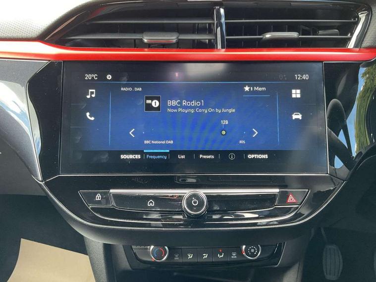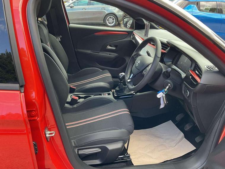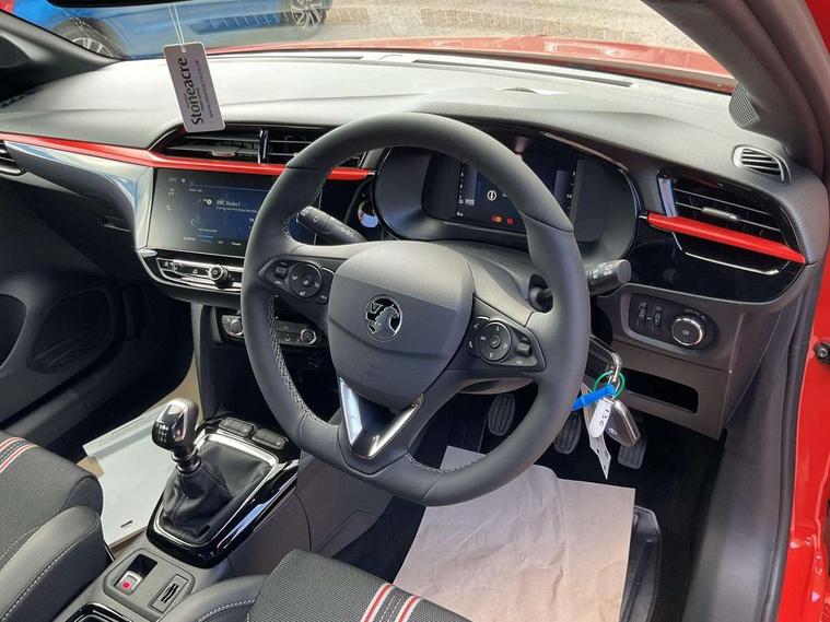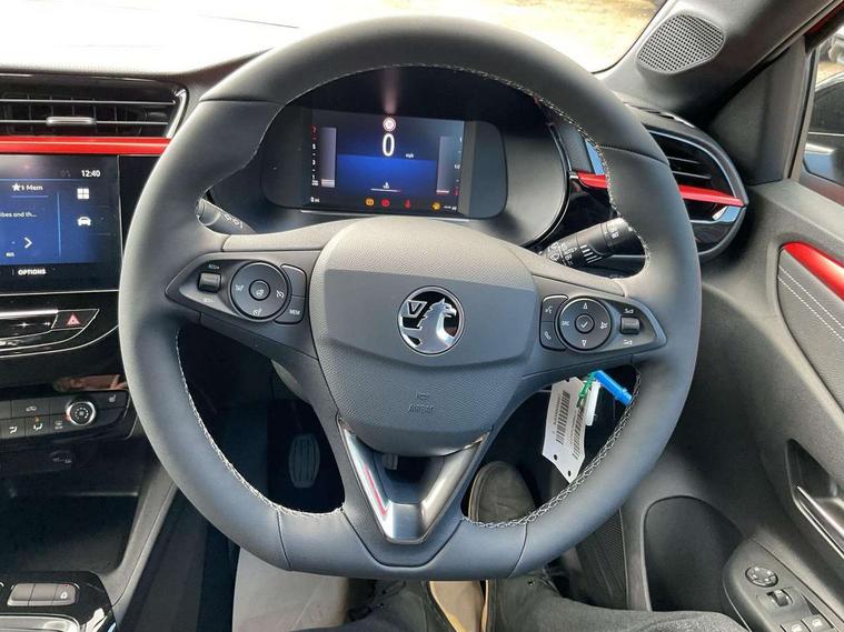 7 inch digital instrument cluster display, Breakdown call (b-call), Central facia display with digital clock, outside air temperature and audio information, Cruise control with intelligent speed limiter, Driver drowsiness alert system, E-call, Engine oil life indicator, Front camera system, Instrumentation - Speedometer, rev counter, low fuel gauge warning light + water temperature gauge warning light, Lane departure warning, Lane keep assist, Lights on audible warning, Multi function trip computer, Pre conditioning of vehicle temperature, RDS with traffic programme, Rear parking distance sensors, Remote check of battery level programming and charge management, Service indicator, Smartphone projection, Speed sensitive power steering, Speed sign recognition, Sport drive mode selector, Start/stop system, Tailgate, Vauxhall connect box, Vehicle status and information, Wireless Apple CarPlay/Android Auto, Electronic returnless fuel system, Petrol Particulate Filter, Under body shield for aero, AM/FM stereo radio, Bluetooth connectivity with A2DP audio streaming function (Advanced audio distribuition profile), DAB Digital radio, Multimedia with 10-inch touchscreen, Six speakers, Steering wheel audio, phone and cruise controls, USB type C port, Automatic headlight control system, Black door mirror housings, Black lower side window mouldings, Black rear griffin badge and model lettering, Body colour door handles, Body colour rear bumper, Bonnet/headlight/wiper structure, Corsa lettering in tailgate, Dark tinted rear side windows + tailgate window, Electrically adjustable and heated door mirrors, Electrically operated front and rear windows with safety auto reverse and one touch up/down facility, Electrochromic automatic anti-dazzle rear view mirror, Flexible roof mounted aerial, Glazed tailgate and heated rear window with wash/wipe facility, Halogen tail lamps, Hazard warning lights, Headlamps for left side traffic, High beam assist, High gloss black finish B pillar, Intelli-LED headlights, LED 3rd brake light, LED daytime running lights, Rain sensitive windscreen wipers, Rear fog lamp, Rear reversing lights, Rear side wing doors, Rear wiper, Solar heat absorbing windscreen and windows, Sports front and rear body styling for upper and lower bumper design, Two speed windscreen wipers with variable intermittent wipe, Windscreen and side window demist vents, 12V power sockets, 3 bench rear seats in 2nd row, 4 speed fan with illuminated controls, 6 way manual adjustable co-driver seat height up/down, reach fore/aft, backrest upright/recline, 6 way manual adjustable driver seat height up/down, reach fore/aft, backrest upright/recline, 60/40 split folding rear seat, Air conditioning with air recirculation facility, Banda cloth upholstery, Black headliner, Cabin particulate filter - removes dust, airborne particles and pollen, Comfort front seats, Driver/passenger sunvisors with vanity mirrors + covers, Four adjustable facia vents, Front cupholder, Front headrests, Height adjustable head restraints, Illuminated glovebox with lid, Interior courtesy light, Internal chrome door handles, LED boot light, Polyurethane gear knob/lever, Reach and rake adjustable steering column, Rear cupholder, Rear headrests, Right hand drive (RHD), Single dome lamp with dual front reading lamps, Single front passenger seat, Standard floor mats, Two litre open door pockets, Vegan leather steering wheel, YES interior badging, Winter pack - Corsa, 3 rear 3 point seatbelts, Anti-lock braking system (ABS), Automatic emergency braking with pedestrian detection, Cornering brake control, Deactivation switch for front passenger's airbag, Drag torque control, Driver and front passenger airbags, front seat side impact airbags, full size curtain airbags, EBD - Electronic brakeforce distribution, Electrical child lock system in rear door latch, Electronic Stability Programme (ESP), Emergency brake assist, Forward collision alert, Front seatbelt unfastened audible warning and warning light, Front ventilated disc brakes - 282mm, Hill hold and start system, ISOFIX child seat mountings incorporating top tether anchor points located on second row rear seats, Manual handbrake, Rear drum brakes - 203mm, Seatbelt pretensioners, Single tone horn, Straight line stability control, Traction control, Tyre deflation detection system, 2 keys one folding with integral remote, Electronically protected audio equipment, Engine deadlock and immobiliser, Freewheeling door locks, Locking wheel nuts, Remote control central locking, Remote locking fuel filler flap, Steering column lock, Visible vehicle identification number, 16" Diamond-cut hi-gloss black alloy wheels - Yes Petrol,