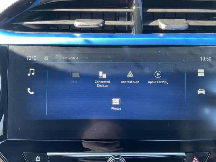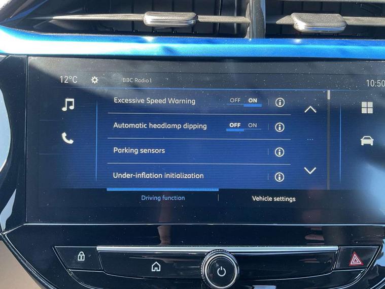 7 inch digital instrument cluster display, Breakdown call (b-call), Central facia display with digital clock, outside air temperature and audio information, Cruise control with intelligent speed limiter, Driver drowsiness alert system, E-call, Engine oil life indicator, Front camera system, Instrumentation - Speedometer, rev counter, low fuel gauge warning light + water temperature gauge warning light, Lane departure warning, Lane keep assist, Lights on audible warning, Multi function trip computer, Pre conditioning of vehicle temperature, RDS with traffic programme, Rear parking distance sensors, Remote check of battery level programming and charge management, Service indicator, Smartphone projection, Speed sensitive power steering, Speed sign recognition, Sport drive mode selector, Start/stop system, Tailgate, Vauxhall connect box, Vehicle status and information, Wireless Apple CarPlay/Android Auto, Electronic returnless fuel system, Petrol Particulate Filter, Under body shield for aero, AM/FM stereo radio, Bluetooth connectivity with A2DP audio streaming function (Advanced audio distribuition profile), DAB Digital radio, Multimedia with 10-inch touchscreen, Six speakers, Steering wheel audio, phone and cruise controls, USB type C port, Automatic headlight control system, Black door mirror housings, Black lower side window mouldings, Black rear griffin badge and model lettering, Body colour door handles, Body colour rear bumper, Bonnet/headlight/wiper structure, Corsa lettering in tailgate, Dark tinted rear side windows + tailgate window, Electrically adjustable and heated door mirrors, Electrically operated front and rear windows with safety auto reverse and one touch up/down facility, Electrochromic automatic anti-dazzle rear view mirror, Flexible roof mounted aerial, Glazed tailgate and heated rear window with wash/wipe facility, Halogen tail lamps, Hazard warning lights, Headlamps for left side traffic, High beam assist, High gloss black finish B pillar, Intelli-LED headlights, LED 3rd brake light, LED daytime running lights, Rain sensitive windscreen wipers, Rear fog lamp, Rear reversing lights, Rear side wing doors, Rear wiper, Solar heat absorbing windscreen and windows, Sports front and rear body styling for upper and lower bumper design, Two speed windscreen wipers with variable intermittent wipe, Windscreen and side window demist vents, 12V power sockets, 3 bench rear seats in 2nd row, 4 speed fan with illuminated controls, 6 way manual adjustable co-driver seat height up/down, reach fore/aft, backrest upright/recline, 6 way manual adjustable driver seat height up/down, reach fore/aft, backrest upright/recline, 60/40 split folding rear seat, Air conditioning with air recirculation facility, Banda cloth upholstery, Black headliner, Cabin particulate filter - removes dust, airborne particles and pollen, Comfort front seats, Driver/passenger sunvisors with vanity mirrors + covers, Four adjustable facia vents, Front cupholder, Front headrests, Height adjustable head restraints, Illuminated glovebox with lid, Interior courtesy light, Internal chrome door handles, LED boot light, Polyurethane gear knob/lever, Reach and rake adjustable steering column, Rear cupholder, Rear headrests, Right hand drive (RHD), Single dome lamp with dual front reading lamps, Single front passenger seat, Standard floor mats, Two litre open door pockets, Vegan leather steering wheel, YES interior badging, Winter pack - Corsa, 3 rear 3 point seatbelts, Anti-lock braking system (ABS), Automatic emergency braking with pedestrian detection, Cornering brake control, Deactivation switch for front passenger's airbag, Drag torque control, Driver and front passenger airbags, front seat side impact airbags, full size curtain airbags, EBD - Electronic brakeforce distribution, Electrical child lock system in rear door latch, Electronic Stability Programme (ESP), Emergency brake assist, Forward collision alert, Front seatbelt unfastened audible warning and warning light, Front ventilated disc brakes - 282mm, Hill hold and start system, ISOFIX child seat mountings incorporating top tether anchor points located on second row rear seats, Manual handbrake, Rear drum brakes - 203mm, Seatbelt pretensioners, Single tone horn, Straight line stability control, Traction control, Tyre deflation detection system, 2 keys one folding with integral remote, Electronically protected audio equipment, Engine deadlock and immobiliser, Freewheeling door locks, Locking wheel nuts, Remote control central locking, Remote locking fuel filler flap, Steering column lock, Visible vehicle identification number, 16" Diamond-cut hi-gloss black alloy wheels - Yes Petrol,