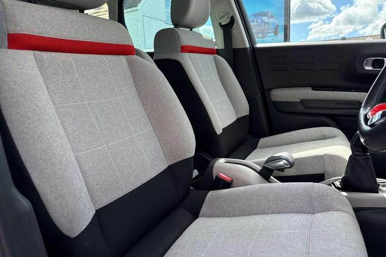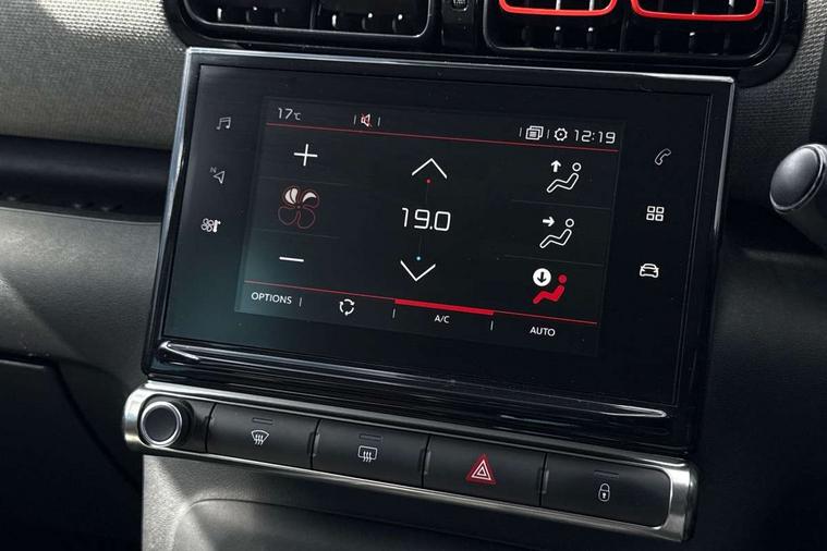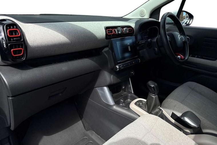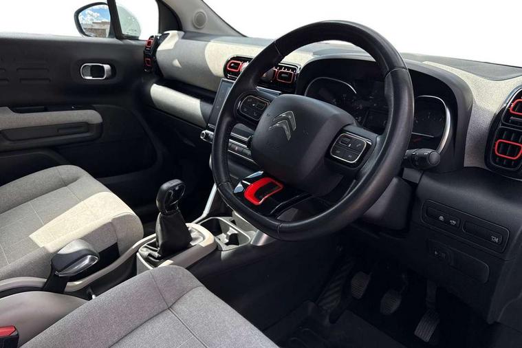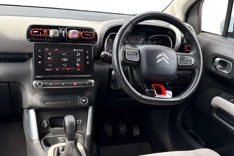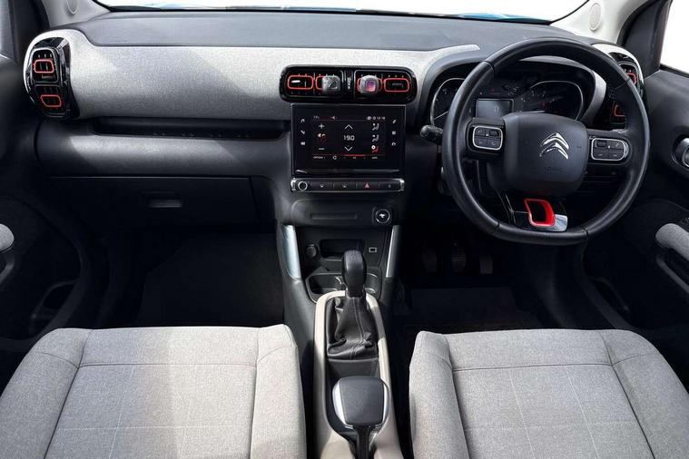 7" touch screen, Android Auto, Bluetooth with USB Box, Citroen connected nav with connect box and emergency assist system, Coffee Break Alert, Collision prevention assist, Cruise control + speed limiter, Lane departure warning system, Mirror screen with mirror link and car play, Multi function trip computer, Rear parking sensor, Speed limit recognition, Variable PAS, Auxiliary input socket, Bluetooth audio streaming, Citroen connected DAB radio, Steering wheel mounted audio controls, Automatic headlights, Body colour bumpers, Body colour door handles with chrome inserts, Cornering front fog lights, Dark tinted rear windows, Electric adjustable/heated/folding door mirrors, Electric front/rear windows with one touch/auto up/down, Front and rear aluminium effect bumper protectors, LED daytime running lights, Rear wiper, 12V Accessory socket, 12V power socket in rear, 60/40 split folding rear seat, Adjustable rear seats, Boot light, Driver/pass sunvisor/covered courtesy mirrors, Front courtesy lights, Front cupholders x 2, Front reading light, Front seat and rear pockets, Front/rear door stowage bins, Height adjustable driver's seat, Height adjustable front headrests, Height/reach adjust steering wheel, Lashing eyelets in boot, Leather gear knob, Leather steering wheel, Rear armrest with ski hatch, Rear cupholder, Removable boot floor, Satin chrome steering wheel inserts, Sliding rear seats, Three height adjustable rear head restraints, Two rear outer seat isofix location points, Automatic pack - C3 Aircross, 3 point inertia reel seatbelts on all 5 seats, ABS + EBD + EBA, Active brake assist, Curtain airbags, Driver seatbelt warning indicator, Driver/Front Passenger airbags, ESP, Front lateral airbags, Front seatbelt pretensioner, Hill start assist, Manual rear child locks, Passenger seatbelt warning indicator, Tyre pressure monitor, Alarm, Automatic boot locking, Automatic door locking, Immobiliser, Keyless entry and start, Locking wheel nuts, Remote central locking + deadlocks, 17" Diamond cut 4 ever alloy wheels, Space saver spare wheel,