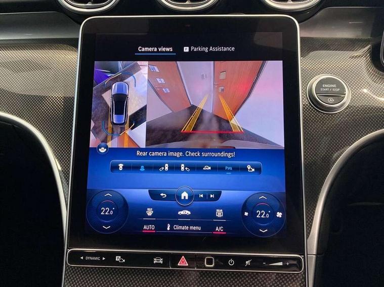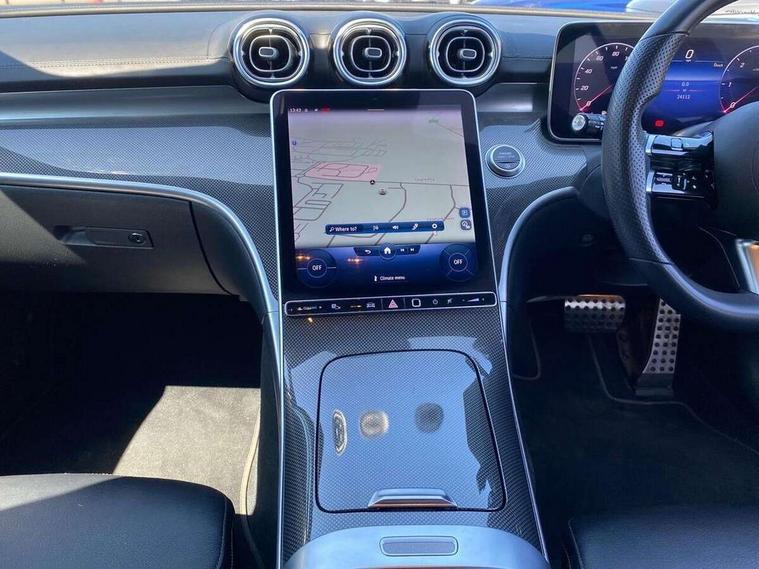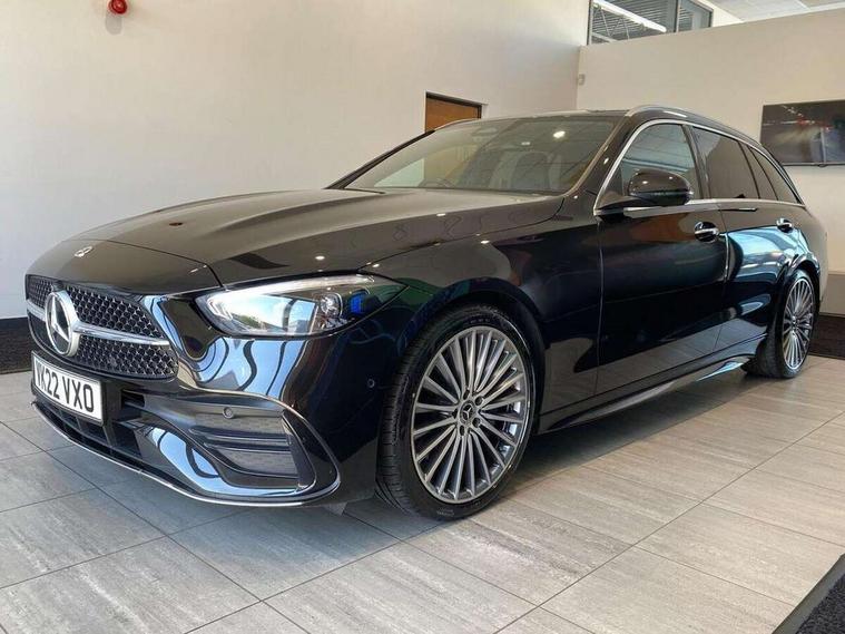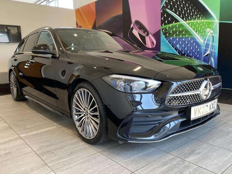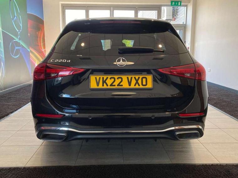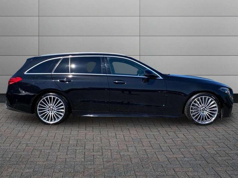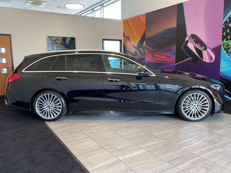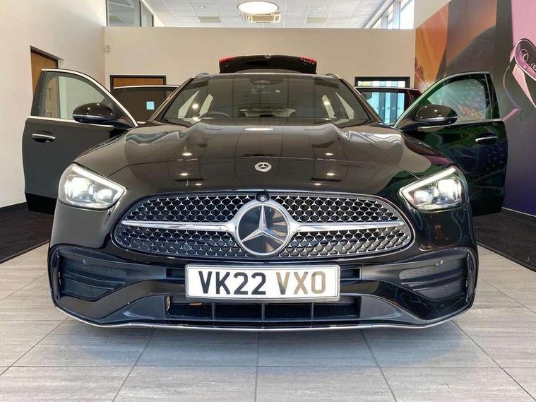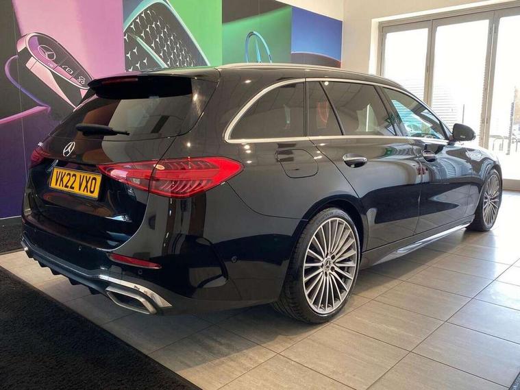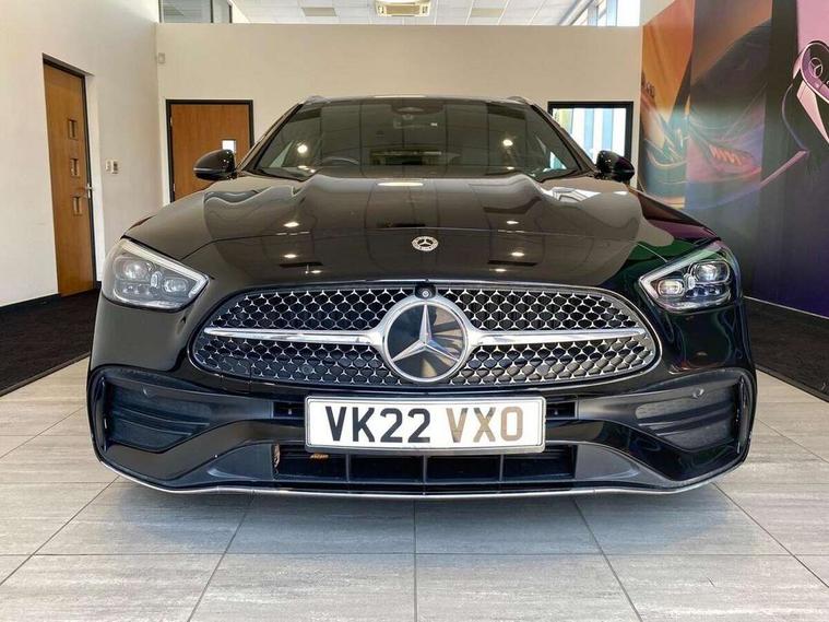 11.9" high resolution multimedia colour display, 12.3" digital instrument cluster display, Active blind spot assist, Active brake assist plus, Active lane keeping assist, Attention assist, Cruise control with speedtronic variable speed limiter, DYNAMIC SELECT with a choice of driving modes (ECO, Comfort, Sport, Sport+ and Individual), E-call, Easy pack automatic powered tailgate, Extended MBUX functions, Finger print sensor, Fluorescent jacket for driver, MBUX augmented reality for navigation, MBUX navigation premium, MBUX voice control activated by keywords "Hey Mercedes", Mercedes connect me, Mercedes me remote services, Outside temperature gauge, Pre-installation for digital key transfer, Remote boot release, Service indicator (ASSYST), Smartphone integration, Sports direct steer speed sensitive steering, Status display for rear seat belts in instrument cluster, Wireless charging system for mobile devices, 66l fuel tank with increased capacity, 9G TRONIC 9 speed automatic transmission, Diesel particulate filter, Sports suspension with selective damping system and lowered by 15 mm, DAB Digital radio, MBUX multimedia system, Steering wheel mounted audio controls, Adaptive brake lights, Adaptive high beam assist plus, AMG body styling front apron, rear apron and side skirts, AMG front bumper with sporty air intakes and chrome elements, AMG rear bumper with high gloss chrome elements, AMG side skirts in vehicle colour, B-pillar trim in glossy black, Body coloured bumpers, Body coloured door mirrors, Chrome beltline trim, Chrome roof rails, Daytime running lights, Digital light LED headlamps, Electric windows with one touch opening/closing and obstruction sensors, Electrically adjustable and heated door mirrors, Green tinted glass, LED Indicators, LED tail lights, LED third brake light, Powerdomes on bonnet, Privacy glass, Radiator diamond grille with integrated Mercedes Benz star and louvre silver with chrome pins, Radio aerial integrated into rear window, Rain sensor with automatic windscreen wiper activation, Rear side wing doors, Rear wiper, Two visible exhaust pipes integrated into rear bumper, 3 spoke flattened bottom AMG multifunction steering wheel in black nappa leather with chrome inserts and perforated leather in grip area, AMG sports seats, Auto Mercedes-Benz child seat recognition sensor, Black air vents with silver chrome elements, Black floor mats with AMG lettering, Black roof liner, Door trim elements high gloss black with silver chrome surroundings and switches, Double cupholder in centre console, Electrically height/reach adjustable steering column, Folding rear seat backrest, Front and rear head restraints, Front centre armrest with storage compartment, Gearshift paddles on steering wheel, Heated front seats, Illuminated door sills with Mercedes Benz lettering, Illuminated glove compartment stowage, Interior lighting - 64 colour Ambient lighting, Leather upholstery, Load compartment cover, Overhead control unit in high gloss black, Rear top tether child seat ISOFIX attachment, Single front passenger seat, Sports pedals with stainless steel surfaces and rubber studs, Sunvisors with illuminated vanity mirrors, THERMATIC 2 zone automatic climate control, Interior lighting package - C Class, Memory package - C Class, Mirror pack - C Class, Parking package with 360 degree camera - C Class, Seat comfort pack - C Class, Stowage space pack - C Class, USB package - C Class, 3 rear 3 point seatbelts, Active bonnet pedestrian safety measure which detects an impact and raises bonnet, Adaptive brake system with HOLD function and brake drying in the wet, Anti-lock braking system (ABS), Black seat belts, Brake calipers with Mercedes-Benz lettering + perforated front brake discs, Child proof door locks, Drivers knee airbag, Drivers pelvis airbag, Dual stage driver/passenger airbags, Electric parking brake, Electronic Stability Programme (ESP), Front centre airbag between driver and front passenger seats, Front side airbags, Larger brake discs on front axle, Rear passenger airbag, Rear seatbelt warning indicator, Sports braking system with perforated front disc brakes, Tyre pressure monitoring system, Warning triangle and first aid kit, Window airbags, Central locking with interior switch, automatic locking and crash sensor with emergency opening function, Chrome surround electric key, Keyless Go comfort access, Urban guard vehicle protection - Thatcham Category 1 consisting of breakin, anti-theft alarm system (ATA), interior monitoring and tow away protection, Artico man-made leather dashboard with contrast stitching, Centre console trim in metal weave, 19" AMG multi spoke design alloy wheels painted in black with high sheen finish, Summer tyres, TIREFIT with tyre inflation compressor,