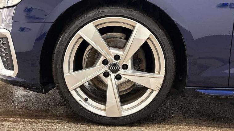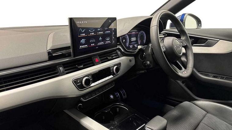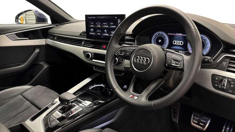 Audi connect safety and service (e-call), Audi connect with Amazon Alexa Integration, Audi drive select, Audi smartphone interface, Audi virtual cockpit, Automatic start-stop system with coasting functionality and efficiency programme, Bluetooth interface, Electromechanical power steering, Email, calendar and text messages displayed via MMI, MMI Navigation plus with MMI touch includes 10.1" high resolution colour MMI display, 3D map, Power operated tailgate, Voice control system, 54 litre fuel tank, Sports suspension lowered by 23mm, 2 USB charging ports, 8 passive loudspeakers, DAB digital radio reception, Aluminium roof rails, Auto dimming rear view mirror, Body colour door handles, Body colour front spoiler lip, Body colour side sill trim, Body coloured door mirrors, Electrically folding auto dimming/adjustable/heated door mirrors with LED side indicators and kerb view function for passenger side, Grained matt black side air inlets with matt aluminium silver inlay, High beam assistant, Honeycomb structure radiator grille in grained matt black, LED headlights with LED rear lights + dynamic rear indicators + headlight adjustment and high beam, turning light + LED daytime running lights, LED third brake light, Matt aluminium silver tailpipe trim, Privacy glass, Rain and light sensors, Rear side wing doors, Rear wiper, S Line badges on the front wings, S line front and rear bumpers with side skirts, S Line rear diffuser in matt anthracite black with trim strip in matt aluminium silver, S Line roof edge spoiler, Variable intermittent front wash/wipe, Windscreen with acoustic glazing, 3 spoke high multi-function sports leather steering wheel grips in perforated leather with S badging including paddle shift, 4 way electric lumbar support for driver and front passenger, 40/20/40 split folding 3 rear seat bench in 3 parts with rear centre armrest, Black cloth headlining, Black perforated leather gearknob, Contrast stitching on seats, steering wheel and gear lever gaiter, Deluxe 3 zone electronic climate control, Door sill trims with aluminium inlay, Electric load area cover, Front and rear head restraints, Front centre armrest, Heated front seats, Illuminated door sill trims with S logo, ISOFIX child seat mounting and top tether, Manual seat adjustment, Single front passenger seat, Stainless steel pedals and foot rest, High gloss package - A4, LED Interior light pack - A4/S4, 3 rear seatbelts, 6 airbags - Driver, front passenger, curtain and side windows, Electronic Stabilisation Control (ESC) including ABS, ASR and EDL, Hill hold assist, Multi collision brake assist, Pop-up bonnet for pedestrian protection, Pre sense city, Rear door child safety locks, Seatbelt monitoring, Warning triangle and first aid kit, Anti theft alarm, Anti theft wheel bolts, Central locking, Keyless Go, Matt brushed aluminium inlays, Tool kit, Tyre repair kit,