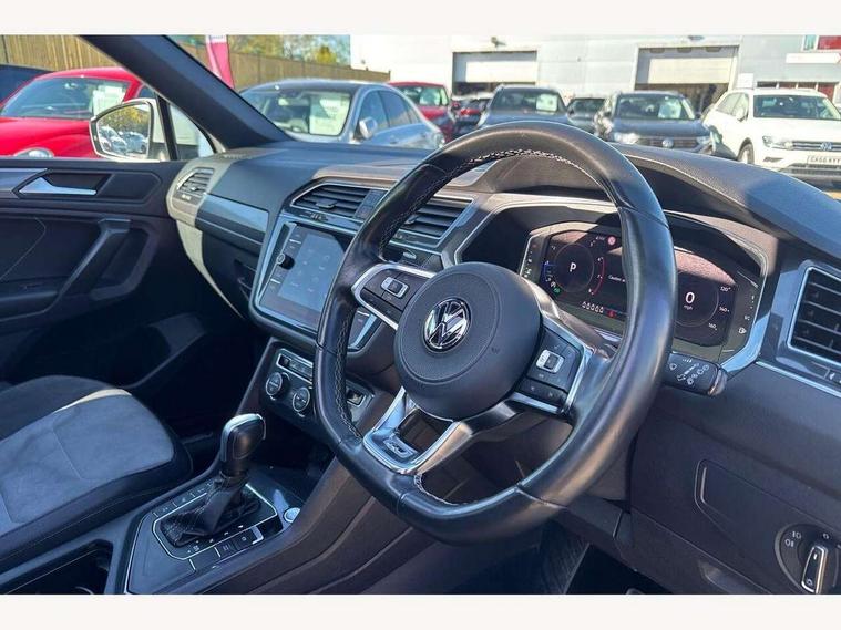 App-Connect, 2D/3D map view, Active information display, Adaptive cruise control, Area view with park assist steering and front and rear parking sensors, Bluetooth phone integration system, Car information display, Driver alert system with fatigue detection, Driver profile selection, Front assist, radar sensor controlled distance monitor, city emergency braking + predictive pedestrian protection, Instrument cluster, Keyless entry/keyless start and full electric tailgate operation, Lane assist, Lights on warning, Low washer fluid warning light, Outside temperature display, Progressive power assisted steering, Service interval indicator, Speed limiter, Start/Stop function, Warning sound and light for doors and tailgate open, Battery regeneration during braking, Aux-in socket, DAB Digital radio, Dynamic navigation based on TMC+, Music playback - MP3, WMA and AAC files, Premium USB cable in choice of either Apple or Android smartphone compatibility, SD card slot, Simultaneous pairing of 2 compatible mobile devices, SMS functionality - read, compose and send SMS messages using touch-screen display, Three route options - Fast, Short, Eco, Title and cover art display, USB connection, USB charging socket and volkswagen media control, 3D effect cherry red LED rear tail lights, Aluminium decorative inserts in dash and door panels, Auto dimming interior mirror, Automatic activation of hazard warning lights, Body colour door handles, Body colour door mirrors, Body colour roof spoiler, Chrome side window surrounds, Chrome trimmed radiator grille, Coming/leaving home lighting function, Dusk sensor + auto driving lights, Electric panoramic sunroof with sunblind, Electrically heated and foldable door mirrors, door mirror puddle lights and reverse activated kerb view adjustment on passenger's door mirror, Front and rear electric windows, Heated rear window, High level 3rd brake light, LED headlights with dynamic light assist daytime running lights and cornering front fog lights, LED rear number plate lights, Left and right chrome effect trapezoid dummy exhaust tailpipe surrounds, Piano black rear diffuser, Rain sensor windscreen wipers, Rear tinted glass from B-pillar backwards approx 65% tinted, Rear windscreen washer and wiper with interval delay, Silver anodised roof rails, Solid paint, Unique R Line badging, Windscreen wipers/ intermittent wipe + 4 position delay, 12V socket in centre console storage area, 12V socket in luggage compartment, 12V socket on rear of front centre armrest, 2 cup holders in front, 2 head restraints in 3rd row, 2 individual 3rd row seats, 3 head restraints in 2nd row, 3 single seats foldable in 2nd row, 3 zone climate control, 4 load lashing points, 40:20:40 split folding rear seat, Bag hook in luggage compartment, Black headlining, Foldable front passenger seat backrest, Front + rear carpet mats, Front centre armrest with storage compartment, longitudinal and height adjustable and two rear air vents, Front seat back storage pockets, Front seatback folding tables, Height/reach adjust steering wheel, Illuminated driver/passenger vanity mirrors, Illuminated scuff plates, Instrument lighting white adjustable panel illumination, Interior light with delay, Isofix Preparation 2 Rear child seats, Leather gear knob, Leather trimmed three spoke multifunction steering wheel with aluminium inserts and paddle shift, Load through provision with 2 cupholders when folded, Lockable cooled glovebox, Luggage compartment lighting, Luggage compartment side storage, Passenger seat height adjuster, Rear cupholders, Removable luggage cover, Sliding/reclining rear seats, Split folding rear bench seat, Stainless steel pedals, Storage compartment in drivers and front passengers door, Storage compartment in rear doors, Storage tray on dashboard, Sunglasses storage, Variable boot floor, height adjustable and removable, Ambient lighting pack - Tiguan Allspace, R Line styling pack - Tiguan Allspace, 3 point seatbelts on all seats, ABS+EBD+Brake assist, Active bonnet, Active pedestrian safety system, Curtain airbags, Driver/Front Passenger airbags, Driver/Passenger whiplash optimised head restraints, Drivers knee airbag, Electronic parking brake with auto hold, ESC with EDL, ASR, EDTC and trailer stabilisation function, First aid kit, Front seat side impact airbags, Front side airbags, Front ventilated disc brakes and rear disc brakes, Head airbag system, Height adjustable front 3 point seatbelts + pretensioners, Hill hold control, Passenger airbag deactivate switch, Passenger knee airbag, Pre crash system, Rear side airbags, Rigid safety cell with front and rear crumple zones, Seatbelt warning lamp and buzzer, Two tone horn, Volkswagen roadside assistance, Warning sound and light for front seat belts if unfastened, Warning triangle, Alarm with interior protection, Electronic engine immobiliser, Remote central locking with 2 remote folding keys, Chrome door trim inserts, Piano black interior trim, 20" Suzuka alloy wheels with mobility self sealing tyres + anti theft wheel bolts,