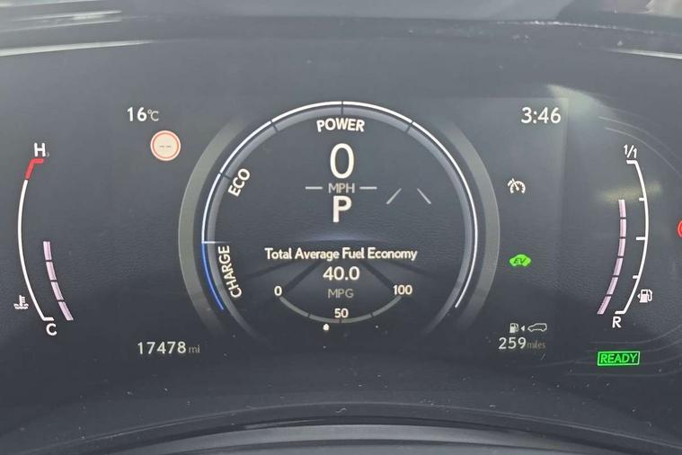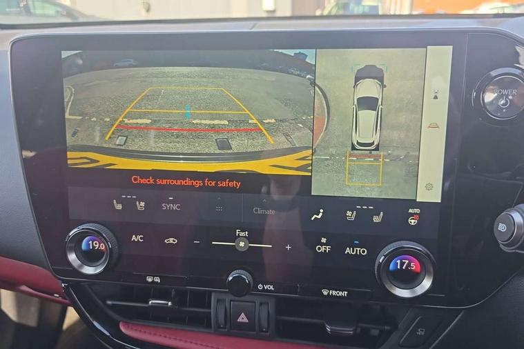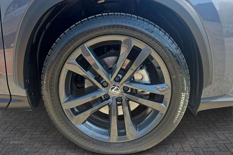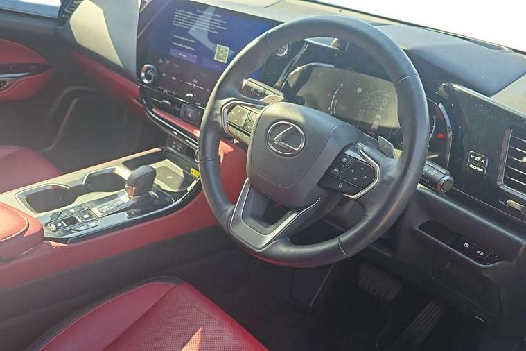 4 driving modes EV/Eco/Normal/Sport, 7" display in instrument binnacle, Bluetooth telephone connectivity, eCall emergency system, Electric speed sensitive power steering, Intelligent parking sensors - 4 front and 4 rear, Lane change flasher function, Lexus link connect - Cloud based navigation, cloud based voice assistant, always online and 9.8" VGA touchscreen, Push button starter, Reversing camera with back guidelines, Service interval indicator, Tailgate, Wireless Apple CarPlay and wired Android Auto, All Wheel Drive (AWD), Hybrid automatic transmission, Vehicle Dynamics Integrated Management (VDIM), Vehicle Stability Control (VSC), 10 speakers, 4 USB ports - 2 front, one USB C, 2 rear USB C, DAB Digital radio, Auto dimming interior rear view mirror, Automatic headlights, Bi LED headlights, Double hidden exhaust pipes, Front and rear one touch power windows, with anti-jam protection, Heated, auto-folding, auto-dimming outside mirrors with reverse tilt function and turn indicators, LED brake lights and rear lights with emergency brake signal, LED daytime running lights, LED Indicators, Light green UV acoustic rear doors & rear glass, Power back door system, Rain sensor windscreen wipers, Rear side wing doors, Rear wiper, Roof rails, 12V accessory port centre console and luggage compartment, 2 cupholders in front centre console, 2 x fixed shopping bag hooks in boot, 2 x sun visors with vanity mirror and lamp, 3 seat bench in 2nd row, 4 x tie down hooks in the boot, 6 tie down hooks in boot, 6 way manually adjustable front seats, 60/40 split folding rear seat, Adjustable rear seat backrest, Card holder installed in driver and passengers sun visors, Centre armrest with storage box, Dual climate control air conditioning system, Front and rear head restraints, Front and rear textile carpet mats, Front passenger seat, Heated front seats, Leather gear lever, LED interior illumination, Power adjustable leather steering wheel with paddle shifts, Rear centre armrest with 2 cupholders, Tahara leather upholstery, Whiplash Injury Lessening (WIL) feature (active headrest) for seats, 2 x Isofix child rear seat restraints, 3 point ELR front seatbelts with pretensioners, 3x3 point rear seat belts, ABS, Adjustable seat belt anchor points, Driver and front passenger 2 stage airbag, Driver/front passenger side airbags, Drivers knee airbag, E-Latch electric door release, EBD + Brake Assist, ECB (Electronically Controlled Brake System), Electronic parking brake, Front and rear curtain shield airbags, Front center airbag, Front passenger seat cushion airbag, Hill assist control, Lexus safety system - dynamic radar cruise control, pre collision system day and night, lane tracing assist, road sign, automatic high beam, OTA, Manual rear child locks, Passenger airbag cut-off device, Traction control, Tyre pressure warning, Anti-theft system with alarm, intrusion sensor, glass breakage sensor, tilt sensor and engine immobiliser, Locking wheel nuts, Speed sensitive auto door locking, Ultra Wide Band (UWB) Anti-theft system, VIN Window etching, Black microdot inlay, Tyre repair kit,