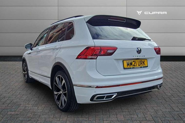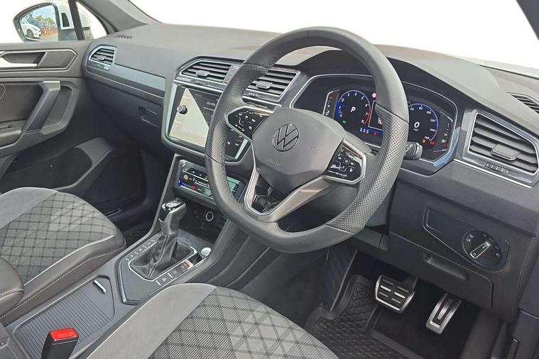 Adaptive cruise control ACC stop and go including speed limiter, App-Connect incl. App-Connect Wireless for Apple CarPlay and Android Auto, Bluetooth phone integration system, Digital Cockpit Pro - Active info display, Distance control assist, Driver alert system, Driver profile selection, Dynamic road sign display, eCall emergency call system, Electromechanical speed sensitive power steering, Engine start/stop button, Lane keeping system Lane Assist, Lights on warning, Multifunction front facing camera, Outside temperature display, Premium multifunction display with multi colour display, Remote control boot opening, Rev counter, Revision / skills operating concept travel assistant, Service interval indicator, Speed limit display, Start/stop system with regenerative braking, Trip computer, Warning sound and light for doors and tailgate open, Battery regeneration during braking, XDS electronic differential lock for improved traction and handling, 2 USB-C ports in the front, 1 USB-C charging socket on the center console in the rear, Diversity antenna for FM reception, Radio, SD card slot, Simultaneous pairing of 2 compatible mobile devices, SMS functionality - read, compose and send SMS messages using touch-screen display, Title and cover art display, Auto dimming interior rear view mirror, Automatic headlight control system, Black roof rails, Body colour door handles, Body coloured bumpers in R Line style, Body coloured door mirrors with integrated indicators, Chrome moldings on the side windows, Coming/leaving home lighting function, Dynamic headlight range control, Front and rear electric windows, Heated rear window, High level 3rd brake light, Laminated safety glass windshield, heat and sound insulating, LED rear number plate lights, License plate carrier in front and rear, Poor weather light and cornering light, Privacy glass for rear side windows and rear window, R Line body kit, R Line side sills, Rain sensor windscreen wipers, Rear exhaust tailpipe, Rear fog lamp, Rear spoiler in R style, Rear windscreen washer and wiper with interval delay, Side and rear windows in heat insulating glass, Third brake light, Trailer Stability Programme, Unique R Line badging, Windscreen wipers/ intermittent wipe + 4 position delay, 12V outlet in center console rear and in luggage compartment, 2 cup holders in front, 2 LED front reading lights, 2 LED rear reading lights, 3 rear headrests, 4 load lashing points, 40:20:40 split folding rear seats, Air Care Climatronic 3 zone automatic climate control with enhanced air filter and controls in the rear, Backrest release for left front seat, Black headlining, Brushed stainless steel pedals and footrest, Carpet mats in front and rear with decorative stitching in Gray, Climate control unit rear with touch function, Door and side trim panel in foam film, insert in leatherette, Front centre armrest, Front footwell illumination, Front seats head restraints (x-adjustment), Height adjustable front seats, Height/reach adjust steering wheel, Instrument lighting white adjustable panel illumination, Interior light with delay, Isofix Preparation 2 Rear child seats, Leather gear knob, Lockable cooled glovebox, Luggage compartment lighting, Luggage net, Rear bench seat asymetrically split folding, longitudinally movable and folding with load-through hatch and center armrest, Remote unlocking for rear seat backrest, Removable luggage cover, Safety optimised front head restraints, Sliding/reclining rear seats, Standard rear seat release, Storage compartment in driver's door, Storage compartment in passenger's door, Storage compartment in rear doors, Storage compartments in luggage area left and right, Storage tray on dashboard, Sun visors with illuminated vanity mirrors, Tool kit, Top front comfort seats, Variable boot floor, height adjustable and removable, Ambience pack - Tiguan R Line, Driver assistance pack plus - Tiguan DSG, 3 point seat belt for centre rear seats, 3 point seat belts with seat belt pretensioners for the outer rear seats, Active bonnet, Curtain airbags for front and rear passengers, Driver/Front Passenger airbags, Drivers knee airbag, Electronic parking brake with auto hold, Electronic Stability Control with driver steering recommendation, ABS, ASR, EDL, EDTC and trailer stabilization, Front assist with autonomous emergency braking (for Adaptive Cruise Control ACC up to 130 mph), Front disc brakes, Front passenger airbag deactivation, Front side airbags, Height adjustable front 3 point seatbelts + pretensioners, Hill hold control, Pedestrian monitoring system, Power assisted brakes, Proactive passenger protection system in combination with front assist, Rear disc brakes, Rigid safety cell with front and rear crumple zones, Two tone horn, Warning sound and light for front seat belts if unfastened, Anti theft alarm system with interior monitoring, backup horn and towing protection, Anti theft wheel bolts, Electronic engine immobiliser, 20" Misano black with diamond turned surface alloy wheels with Airstop tyres,