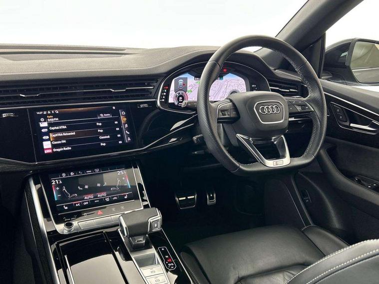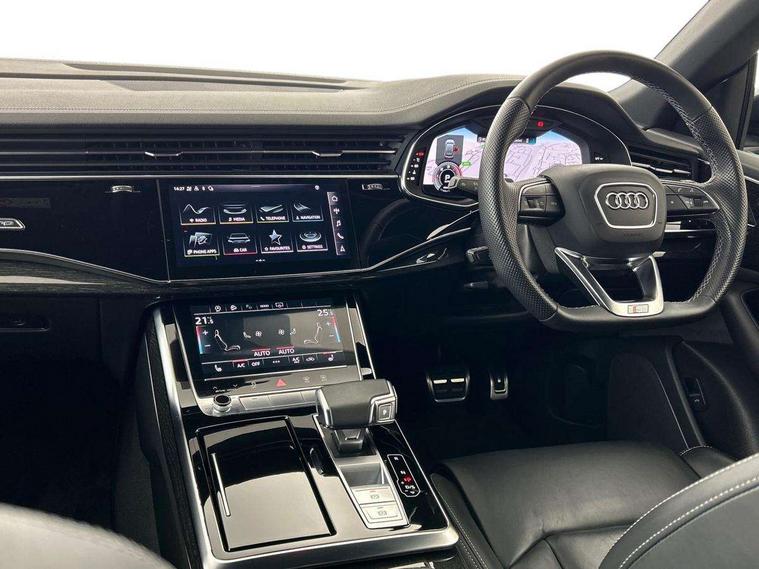 10.1" and 8.6" Dual colour touchscreens, Audi connect safety and service (e-call), Audi connect with Amazon Alexa Integration, Audi drive select, Audi parking system plus includes 360 degree display with front and rear sensors, Audi phone box light with wireless charging, Audi virtual cockpit - 12.3" high resolution LCD display with fully customisable instrument cluster, Automatic start/stop system, Electro-mechanical PAS, Low washer fluid indicator, MMI - Multi Media Interface control system, MMI navigation plus with MMI touch, Natural voice recognition, On board computer, Operating buttons in black, glass look with haptic feedback, Power operated tailgate, Rear view camera, Service interval indicator, Smartphone interface includes wireless Apple carplay/Android Auto, 48V Mild hybrid technology, Adaptive sport air suspension, Diesel particulate filter, Quattro all wheel drive with self locking centre differential, Audi music interface with 2 USB ports with charge and data functions, Audi sound system with 6 channel amplifier, 180 watt amplifying capacity and 10 loudspeakers including subwoofer, Aux-in socket, DAB Digital radio, 3rd brake light, Acoustic windscreen, Aluminium window trim, Audi beam, Audi HD Matrix LED headlights with dynamic front and rear indicators, Auto dimming frameless rear view mirror, Black Audi rings and black badging, Coming/leaving home lighting function, Electric front+rear windows, Electrically folding auto dimming/adjustable/heated door mirrors with memory function, LED side indicators and kerb view function for passenger side, Headlight washers, Heat insulating glass in windshield, LED signature daytime running lights, Platinum grey front spoiler lip and diffuser insert with honeycomb grille in black, Privacy glass - dark tinted rear and rear side windows from B-pillar backwards, Rain and light sensors, Rear side wing doors, Rear wiper, 2 zone automatic climate control, 3 bench rear seats in 2nd row, 4-way lumbar support for front seats, 40:20:40 split folding rear bench seat, Audi phone box light, Black cloth headlining, Comfort front centre armrest, Driver seat memory function, Electrically adjustable front seats, Front head restraints, Front/rear floor mats, Heated front seats, ISOFIX child seat mounting for front passenger seat and 2 outer rear seats with top tether child seat mounting for all 3 rear seats, LED interior ambient lighting, Luggage compartment sill protection in stainless steel, Rear centre armrest with 2 cupholders, Rear headrests, Seat cushion displaceable by 100mm in the ratio 60:40, Single front passenger seat, Stainless steel pedals, Sunvisors with illuminated vanity mirrors, 3 point seatbelts on all seats, Audi pre sense front, Child locks on rear doors, Driver and front passenger, front side and curtain airbags, Electromechanical parking brake, Electronic Stability Control (ESC) including ABS, ASR and EDL, Front passenger airbag deactivation, Hill descent control, Hill hold assist, Predictive pedestrian protection, Seatbelt monitoring, Traction control, Tyre pressure loss indicator, Warning triangle and first aid kit, Anti theft alarm with tow away protection, Anti-theft wheel bolts and wheel loosening detection, Immobiliser, Keyless go with remote central locking, Polished oak trim with grey finish inlay, Tool kit, Tyre repair kit,