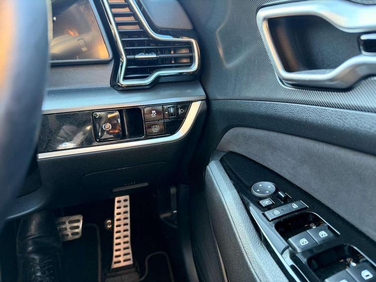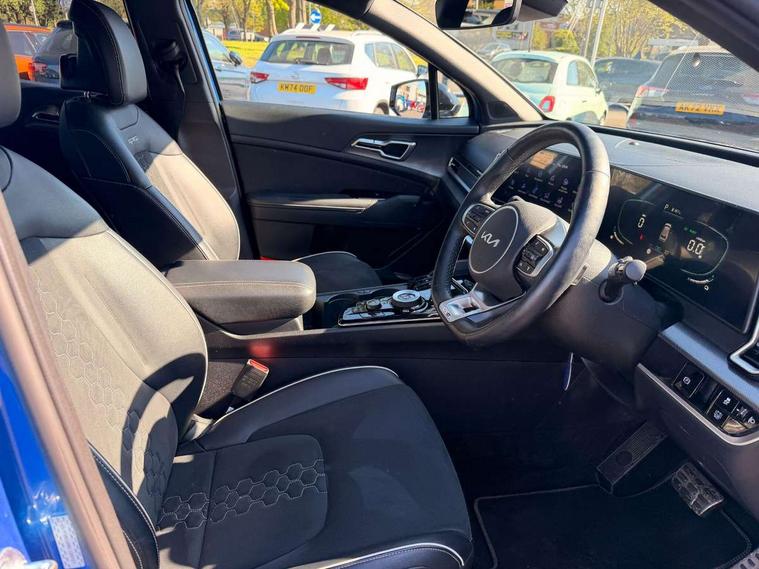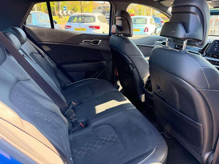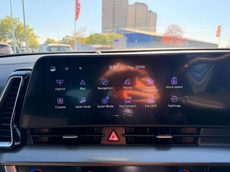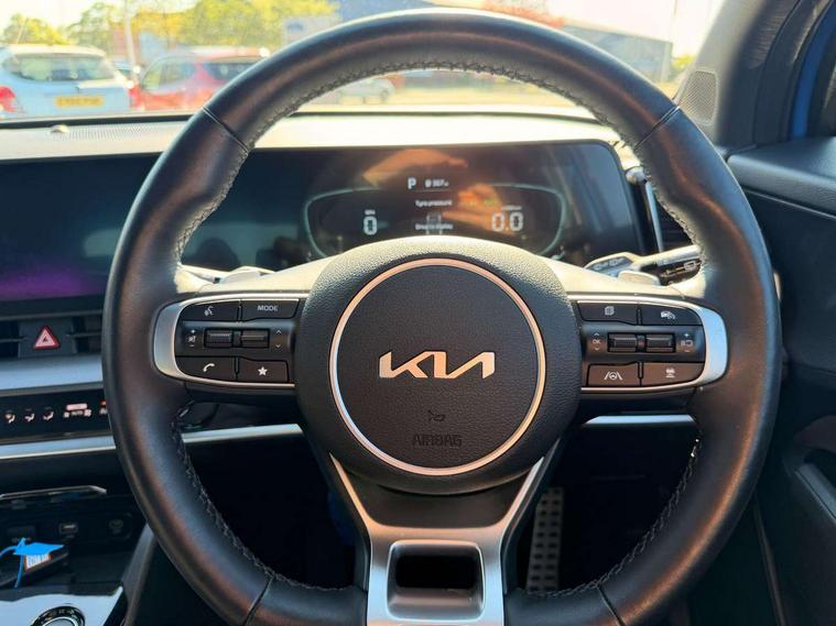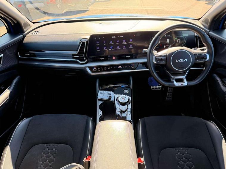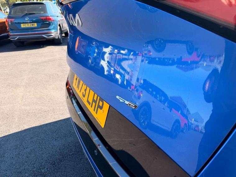 12.3" Display with navigation, 4.2" supervision colour cluster display, Apple car play/Android Auto with voice control, Drive mode selector, E-call, Forward collision avoidance assist (FCA) - city/pedestrian/cyclist/junction covering, Front and rear parking sensors, Highway Driving Assist (HDA), Intelligent speed limit assist, Kia Connect (UVO), Lane Following Assist (LFA), Lane keep assist, Low washer fluid warning, Rear view monitor, Reversing camera system integrated into centre fascia screen, Smart cruise control with stop and go functionality, Speed sensitive power steering, Trip computer, Windscreen washer level indicator, Intelligent Stop and Go, 6 speaker audio system, Bluetooth audio streaming, DAB Radio with MP3, Rear USB port, Steering wheel mounted audio controls, USB C type charging ports on centre console, USB C type charging ports on side of front seats, USB port for connection of a media device, All round electric windows with drivers and front passenger auto up/down function, Automatic headlight control system, Automatic window defogger, Backlite glass heated with timer, Body colour and black bumper with silver accents, Body colour exterior door handles, Body colour radiator upper garnish and door garnish, Electrically adjustable/heated/folding door mirrors with LED indicators, Front and rear chrome skid plates, Gloss black door mirrors, Gloss black radiator grille, Gloss black side sill and wheel arch body mouldings, Glossy black roof rack, High beam assist, Interior electrochromic mirror, LED daytime running lights, LED front fog lamps, LED headlamps (low and high beam - MFR type), LED High mounted stop light, LED rear combination lamp, Rain sensing wipers with aero blades, Rear fog lamp, Rear privacy glass, Rear side wing doors, Rear spoiler, Rear wiper, Satin finished beltline, Silver coloured inserts to bumpers, Tinted rear glass, Trailer stability assist, 12V power socket in front centre fascia and luggage compartment, 2nd row personal lamps, 3 seat bench in 2nd row, 3 x passenger assist grips, 40/20/40 split folding rear seat, All-round height adjustable headrests, Black headlining, Centre console storage box, Cupholders in rear armrest, D-Shaped sports leather steering wheel and perforated inserts with GT-Line logo, Door courtesy lamps, Drink holder at centre armrest, Driver and front passenger side sunvisors with illuminated vanity mirrors, Driver's seat manual height adjust, Drivers seat power lumbar support, Front and rear door storage, Front seat and rear pockets, Front/rear centre armrests, Gear shift indicator, Glovebox illumination, Heated front seats, Heated steering wheel, Interior door lock/unlock function, ISOFIX Child seat top tethers and anchor fixings outer rear seats, Luggage area light, Luggage area load cover, Luggage net with hooks, Metal paint interior door handles, Overhead console lamp, Paddle shift controls, Rear cabin light, Rear coat hooks, Single front passenger seat, Sports pedals, Suede leather upholstery, Three zone climate control, Tilt/telescopic adjustable steering wheel, Ventilation ducts to rear compartment, Active front headrests, All round 3-point seatbelts, Anti-lock braking system (ABS), Dual front side airbags, Dual horn, Electronic parking brake, Electronic stability control with downhill brake control, Front passenger airbag cut-off switch, Front seatbelt pretensioners + load limiters, Height adjustable front seatbelts, Hill start assist control (HAC), Impact sensing auto door unlocking, Multi collision brake assist, Rear door child safety locks, Rear seat alert system, Traction control, Twin curtain airbags, Twin front airbags, Tyre pressure monitoring system, Advanced anti-theft system including immobiliser and alarm, Door deadlocks, Engine Start/Stop Button with Smart Entry System, Locking wheel nuts, Speed sensitive auto door locking, Visible vehicle identification number, Aluminium pattern finish centre fascia and door garnish, 18" GT-Line alloy wheels, Tyre mobility kit,