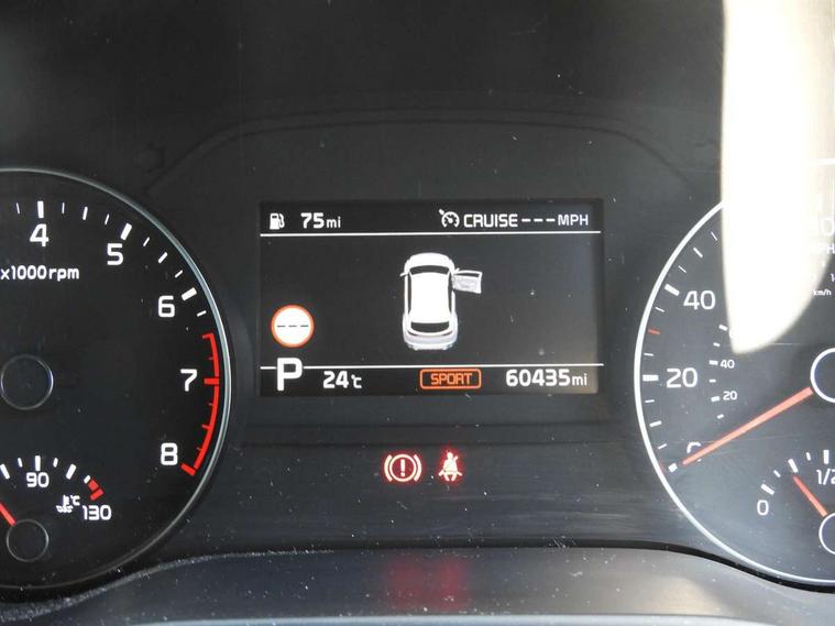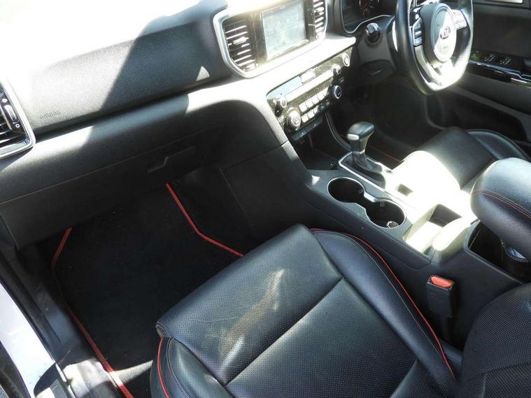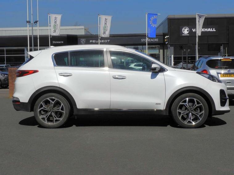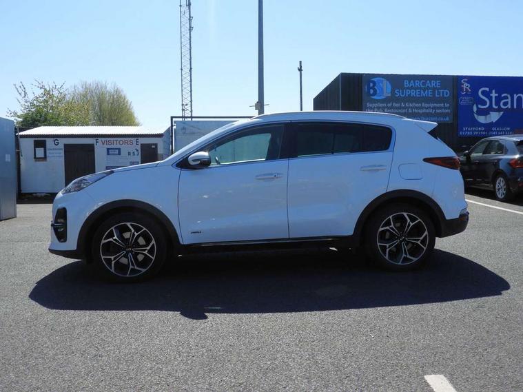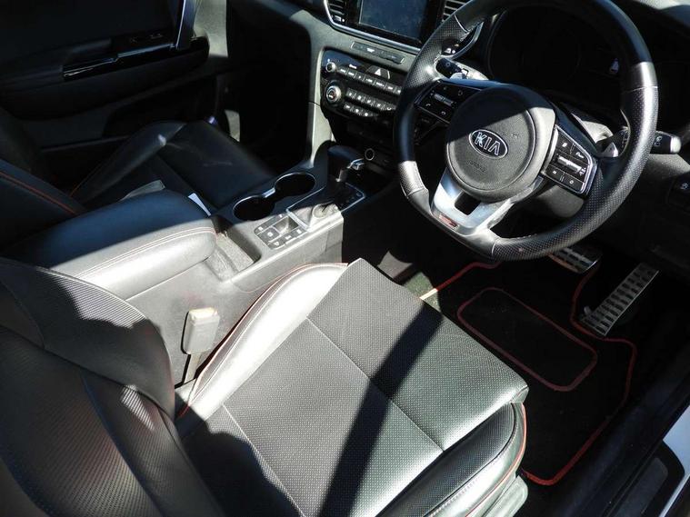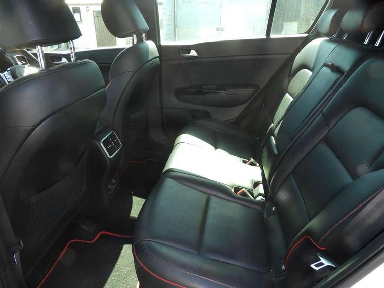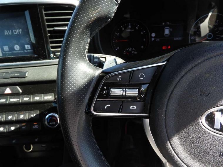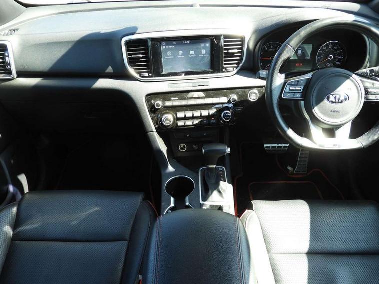 4.2" supervision colour cluster display, 7" touchscreen satellite navigation with European mapping and traffic messaging channel, Android auto with voice control, Apple car play with voice control, Bluetooth connectivity with voice control, Cruise control + speed limiter, Drive mode selector, Driver attention warning, Emergency stop signalling system, Front parking sensor, Kia connected services featuring TomTom live, Lane keep assist, Rear parking sensor, Reversing camera, Speed limit information, Speed sensitive power steering, Trip computer, Windscreen washer level indicator, Intelligent Stop and Go, 6 speaker audio system, Bluetooth audio streaming, DAB Radio with MP3, Rear USB port, Steering wheel mounted audio controls, USB/iPod/auxiliary input connections, All round electric windows with drivers auto up/down function, Auto dimming rear view mirror, Automatic defog system, Automatic headlights, Automatic lighting control, Black wheel arch body mouldings and side sills with dark chrome insert, Body colour door handles with chrome inserts, Body colour door mirrors, Chrome window surround, Dark chrome front bumper insert, Dark chrome grille surround, Electrically adjustable/heated/folding door mirrors with LED indicators, Front wiper de-icer, High beam assist, High gloss black blade mesh radiator grille, LED Bi-Function headlights, LED daytime running lights, LED ice cube front fog lights, LED rear lights, Privacy glass (rear side windows and rear screen), Rain sensing front wipers, Rear spoiler, Rear wiper, Roof rails, Shark fin antenna, Silver painted front and rear skid plates, Speed sensitive front wipers, Tinted glass, Trailer stability assist, Welcome and follow-me home light functionality, Wide view drivers door mirror, Windscreen wiper de-icer, 12V power in front and rear centre console, 3 x passenger assist grips, 60/40 split folding rear seat, Air filter, All-round height adjustable headrests, Aluminium door scuff plates, Aluminium pedals, Black headlining, Centre cabin light, Centre console storage box, Chrome boot sill guard, D-Shaped sports leather steering wheel and perforated inserts with GT-Line logo, Door armrest in leather, Driver and front passenger side sunvisors with illuminated vanity mirrors, Driver's seat manual height adjust, Drivers seat power lumbar support, Dual zone automatic air conditioning, Front and rear door storage, Front cabin LED map light with sunglasses case, Front door courtesy reflectors, Front seat and rear pockets, Front/rear centre armrests, Gear shift indicator, Glovebox illumination, Heated front and outer rear seats, Interior door lock/unlock function, ISOFIX Child seat top tethers and anchor fixings, Leather trimmed gearshift, Leather upholstery, Luggage area light, Luggage area load cover, Luggage net with hooks, Paddle shift controls, Rear centre armrest with cupholder, Rear coat hooks, Satin chrome interior door handles, Tilt/telescopic adjustable steering wheel, Ventilation ducts to rear compartment, Active front headrests, All round 3-point seatbelts, Anti-lock braking system with electronic brakeforce distribution, Dual front side airbags, Electronic parking brake, Electronic stability control with downhill brake control, ESP + traction control, Front passenger airbag cut-off switch, Front seatbelt pretensioners + load limiters, Height adjustable front seatbelts, Hill start assist control (HAC), Impact sensing auto door unlocking, Rear door child safety locks, Twin curtain airbags with roll over sensor, Twin front airbags, Tyre pressure monitoring system, Advanced anti-theft system including immobiliser and alarm, Door deadlocks, Engine Start/Stop Button with Smart Entry System, Locking wheel nuts, Speed sensitive auto door locking, Visible vehicle identification number, High gloss black centre fascia, 19" alloy Wheels B-type, Tyre mobility kit,